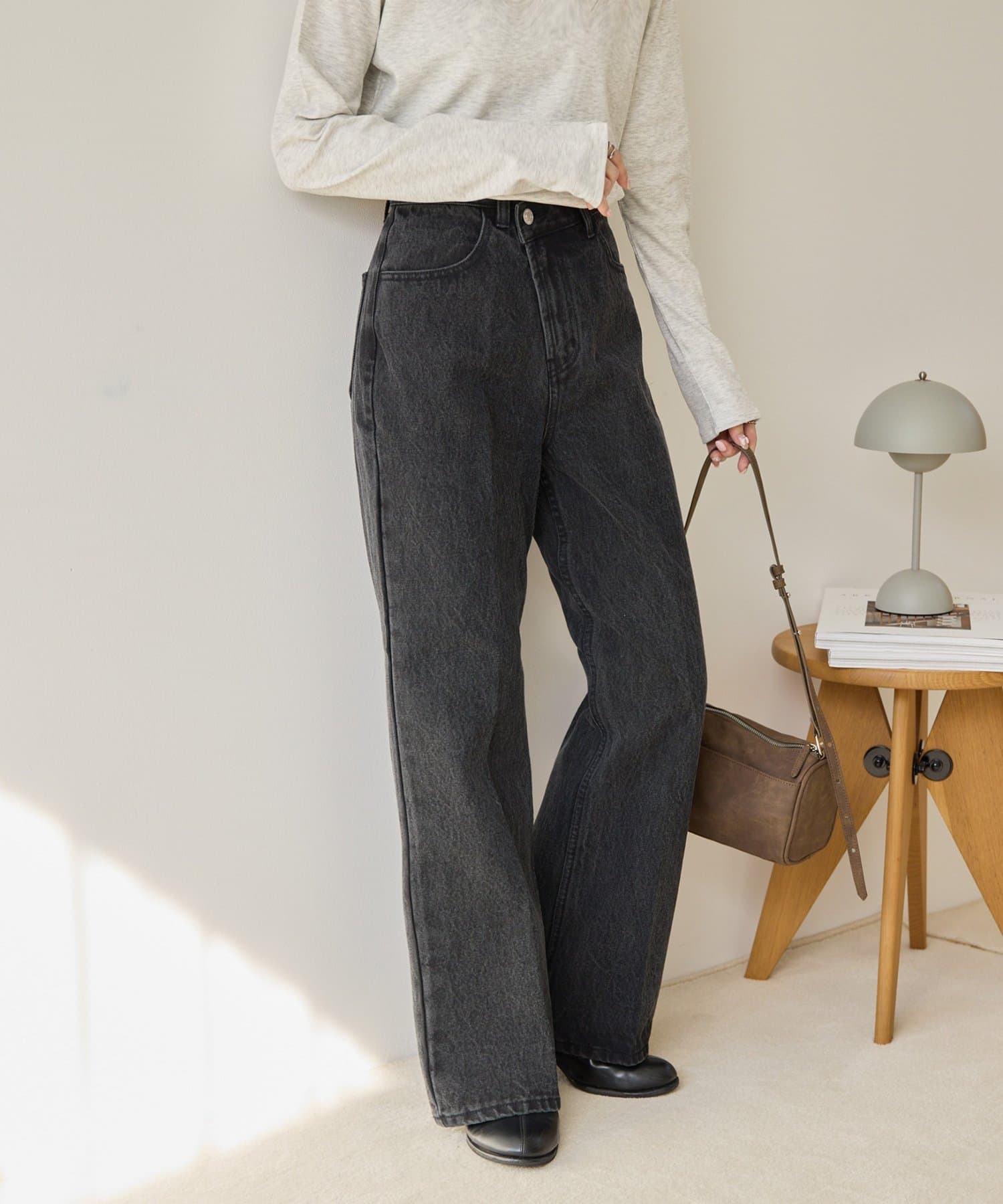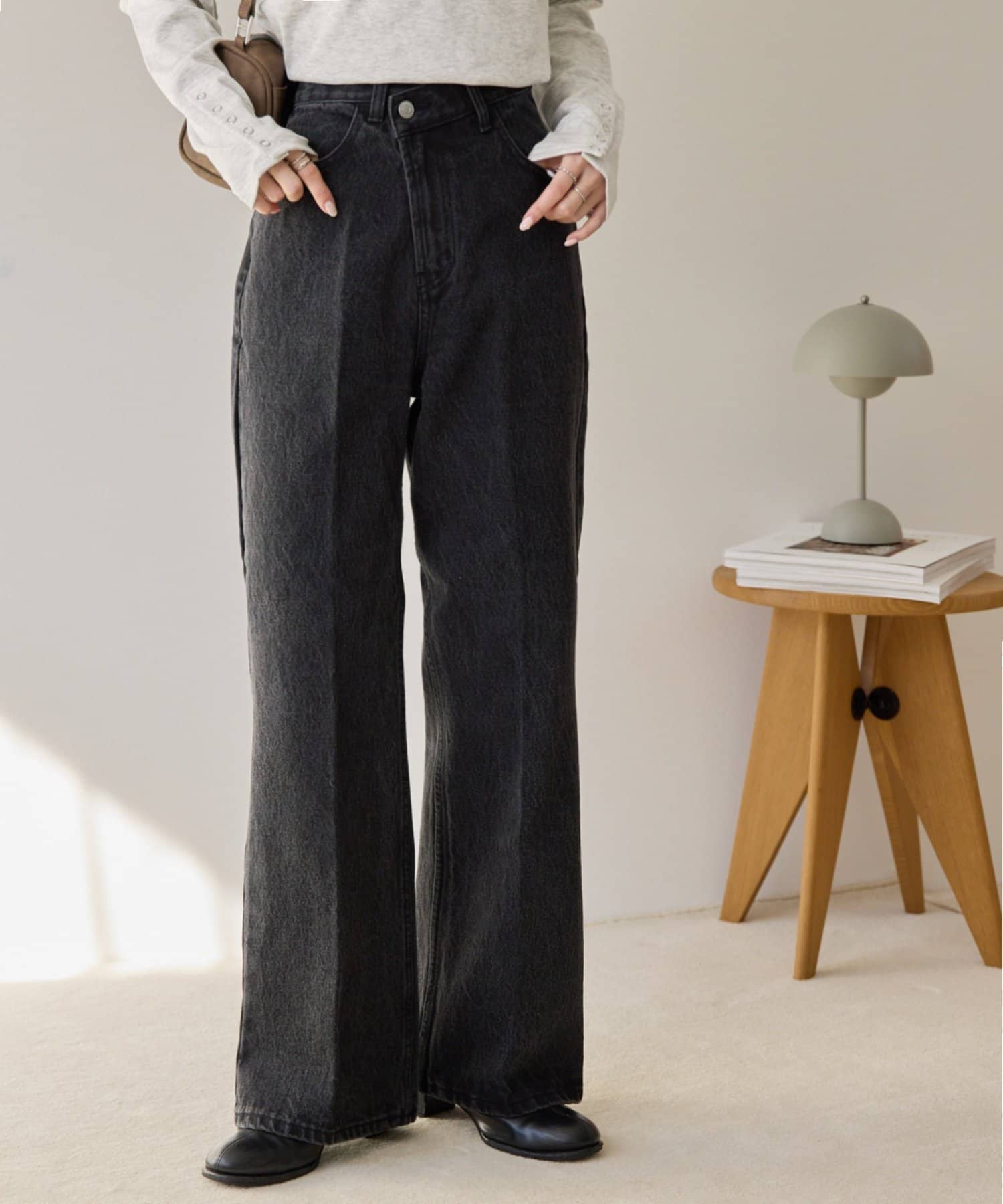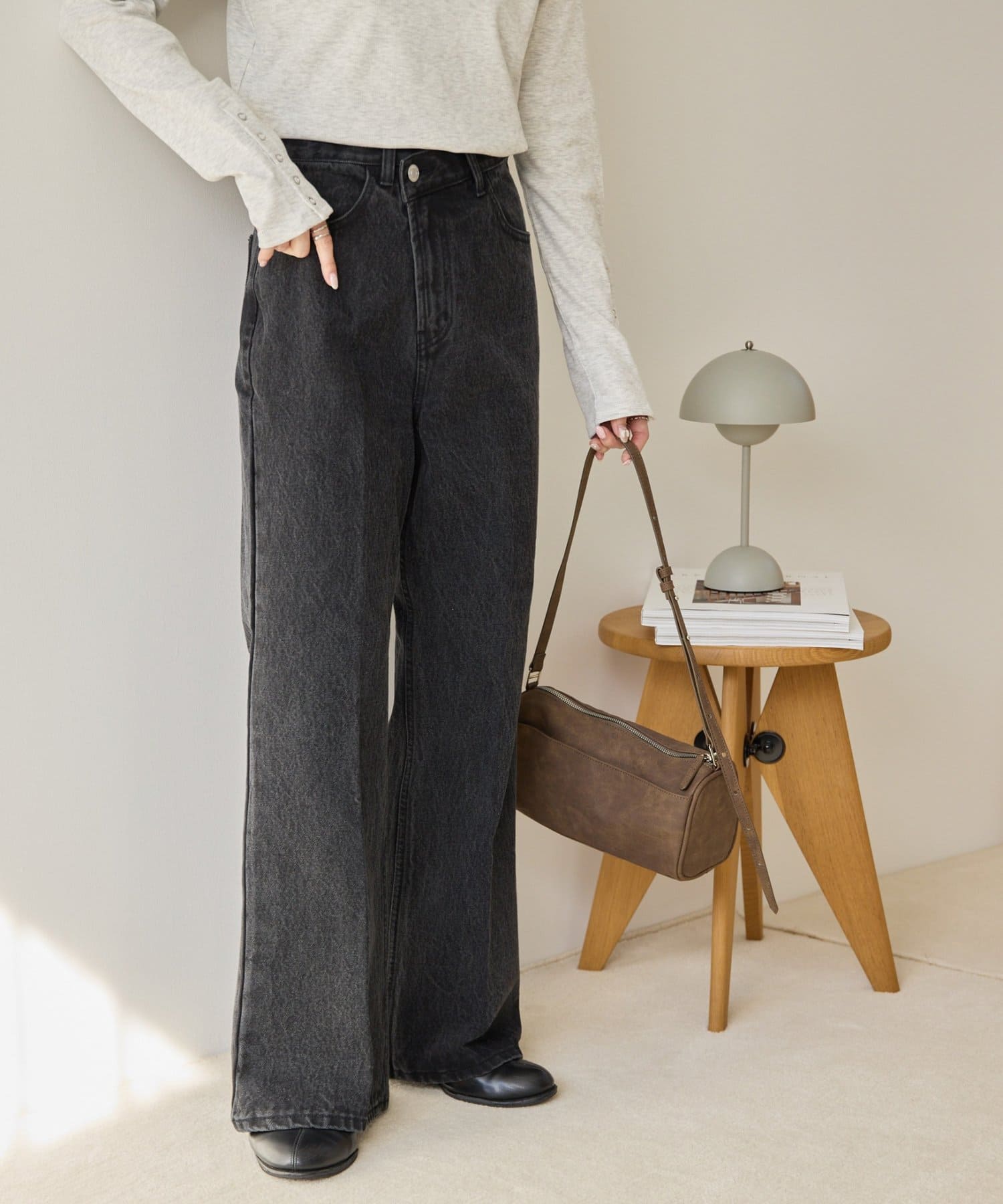 太すぎず細すぎない絶妙なラインで、カジュアルになりがちなデニムも女性らしい印象に。