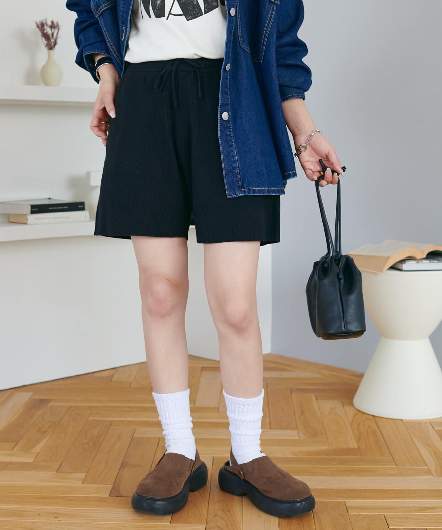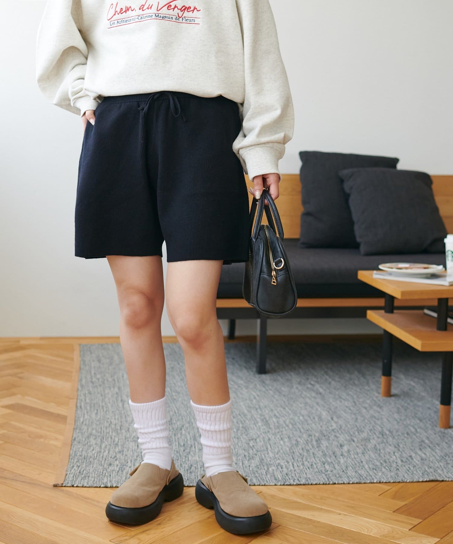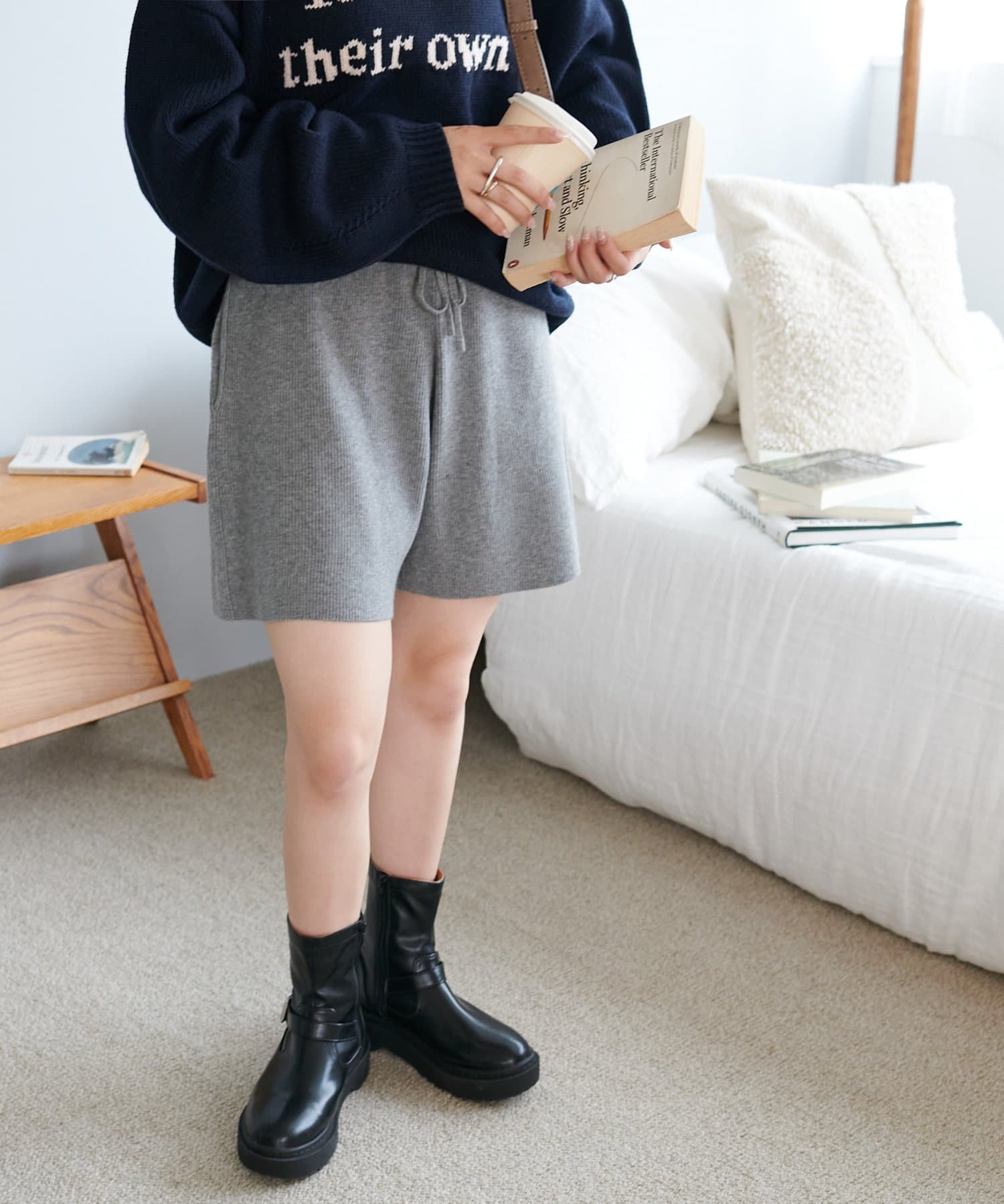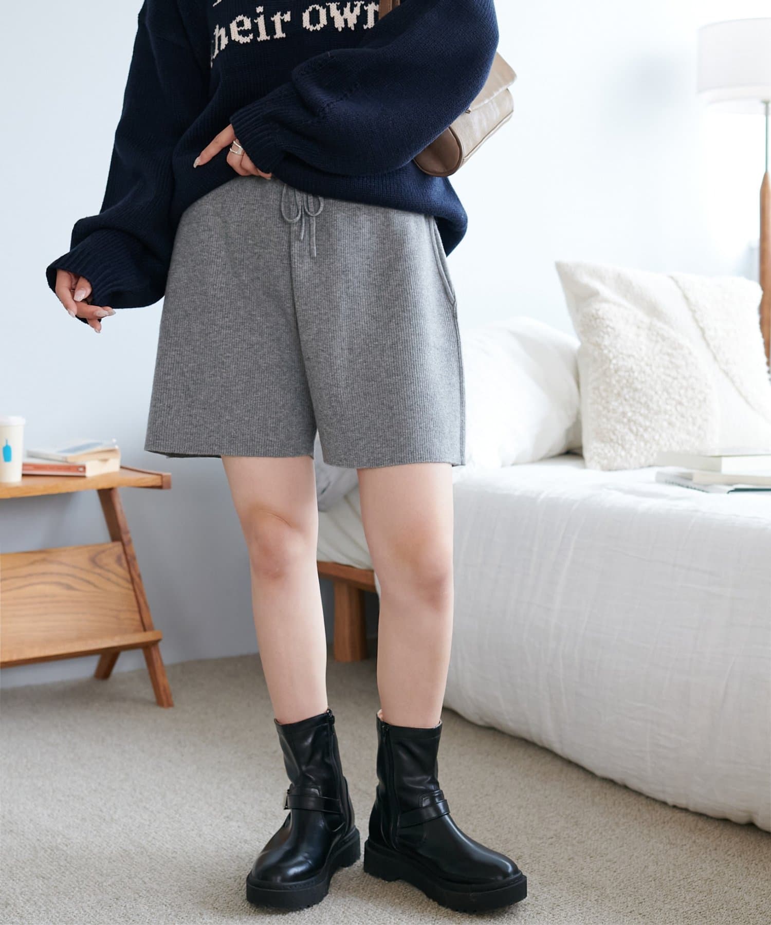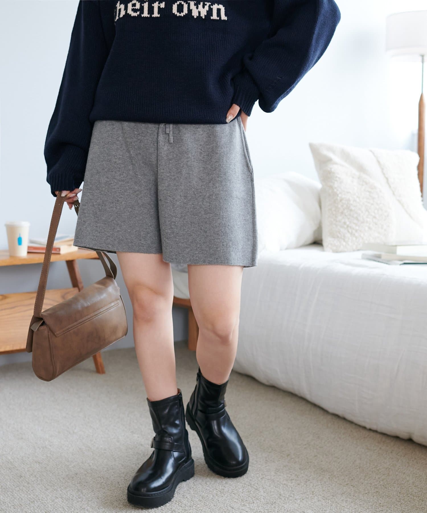 ゆとりのあるサイズ感で足をスラッと細く見せてくれるニットショートパンツ