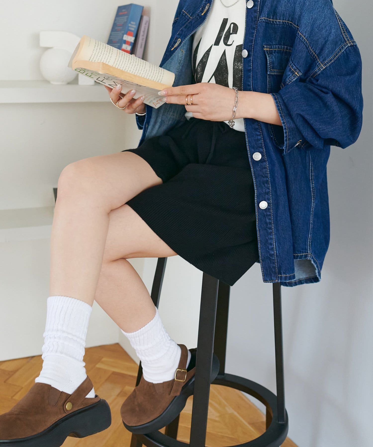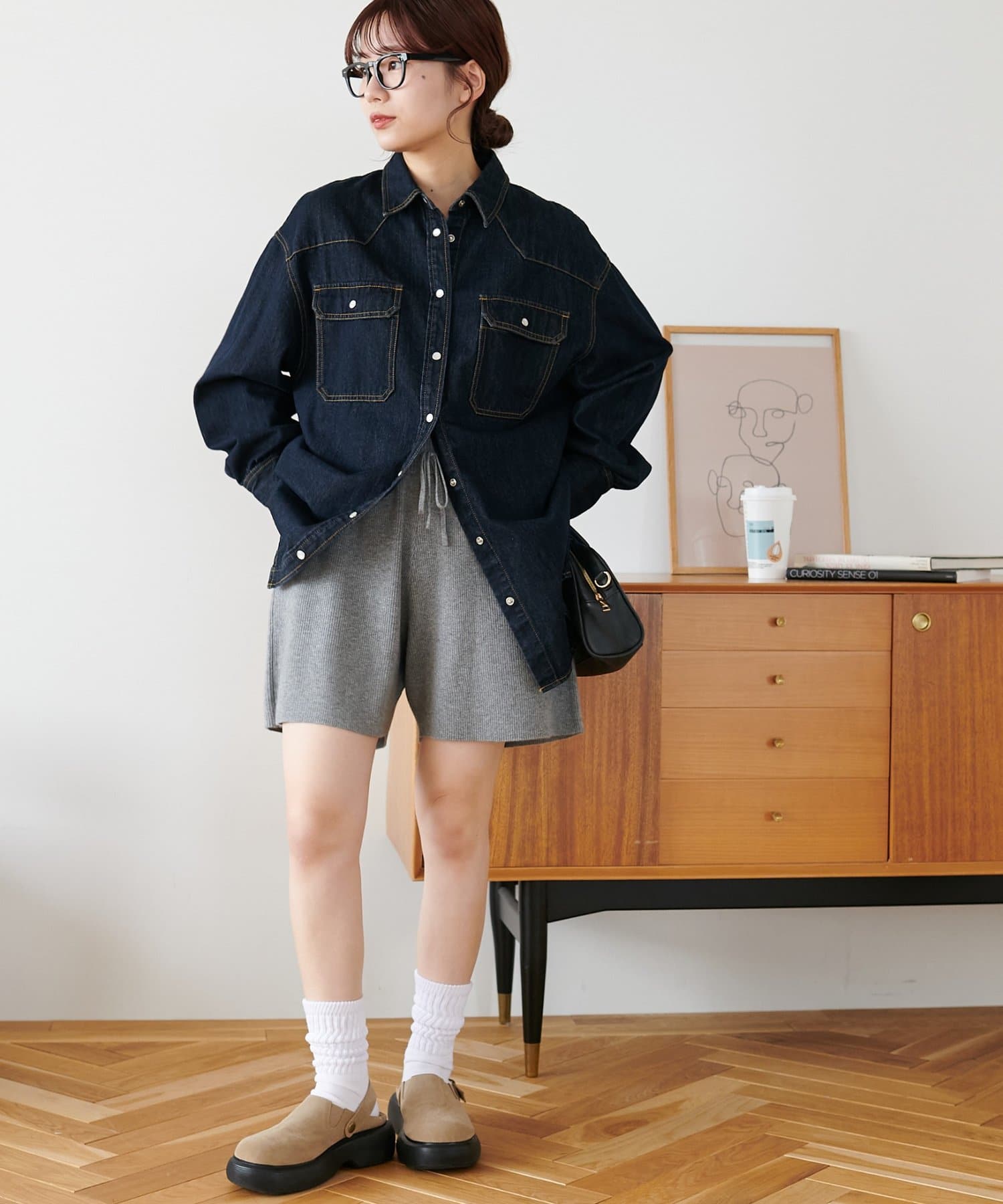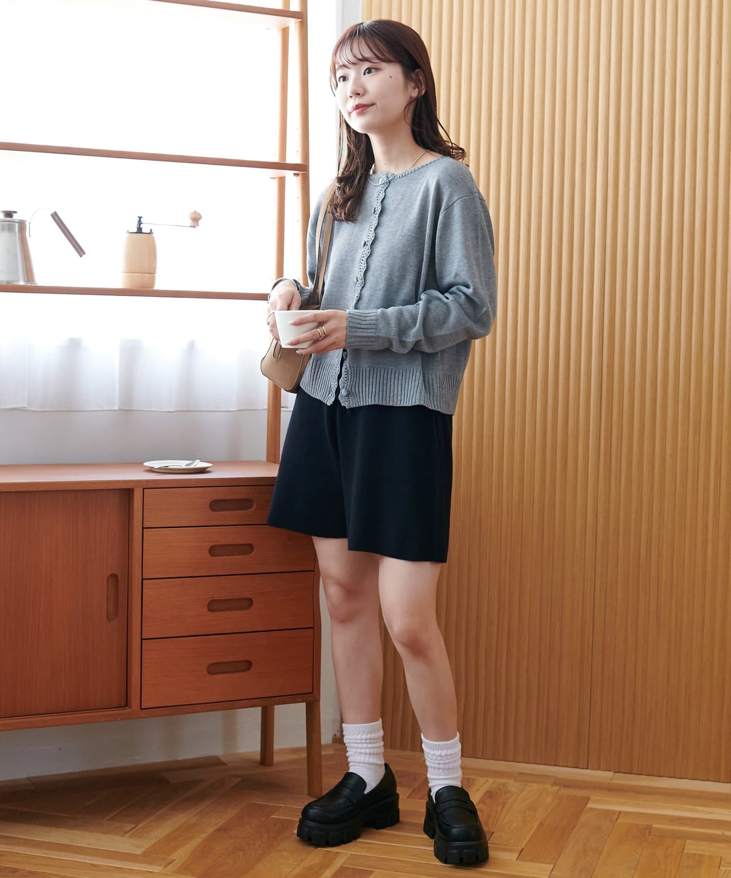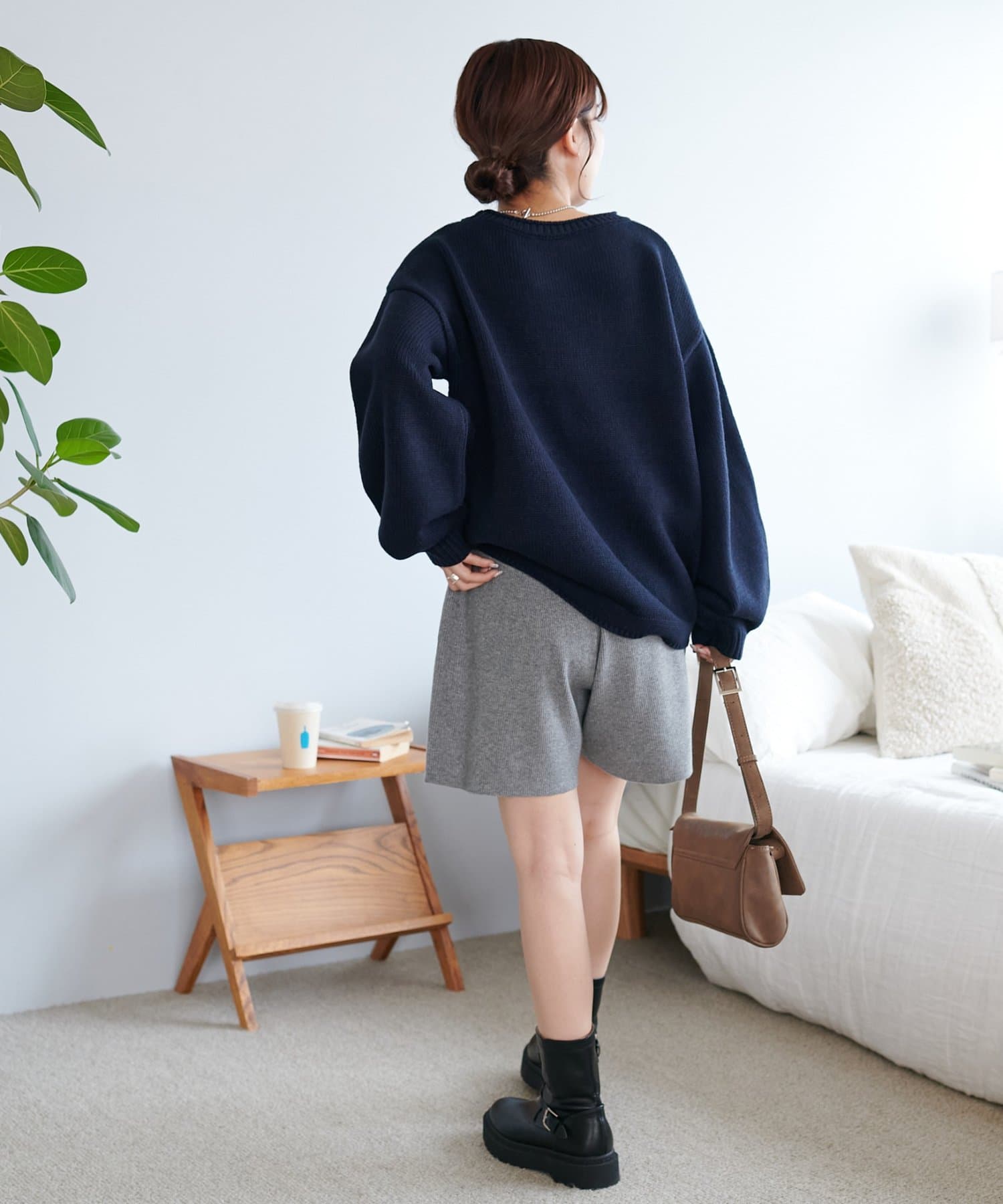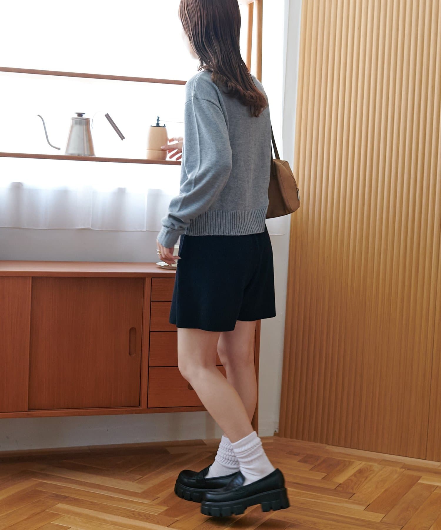 ゆとりのあるサイズ感で足をスラッと細く見せてくれるニットショートパンツ