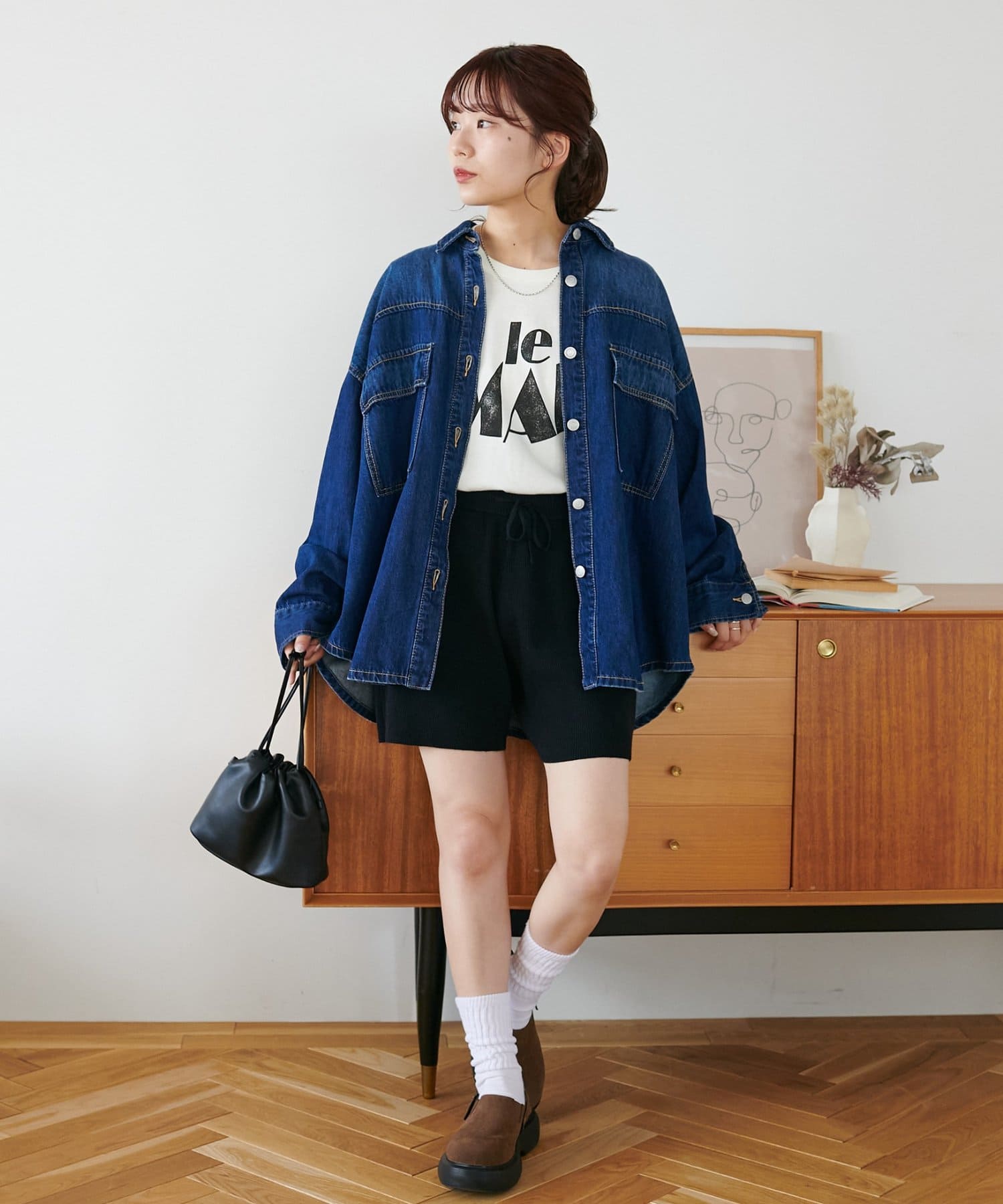 ゆったりとしたトップスと合わせるとラフなコーデが完成。