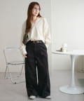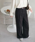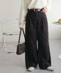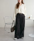 全体的にリラックス感のあるワイドシルエットながら、フロントに施されたタックが腰まわりに自然な立体感を生み、程よいきちんと感をプラスします。