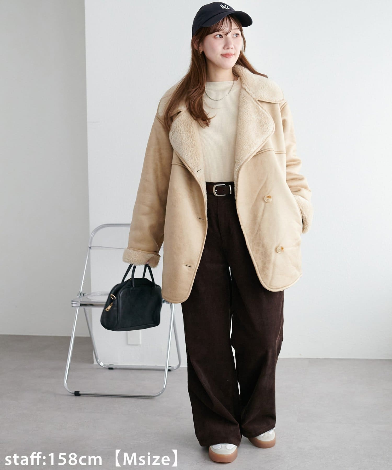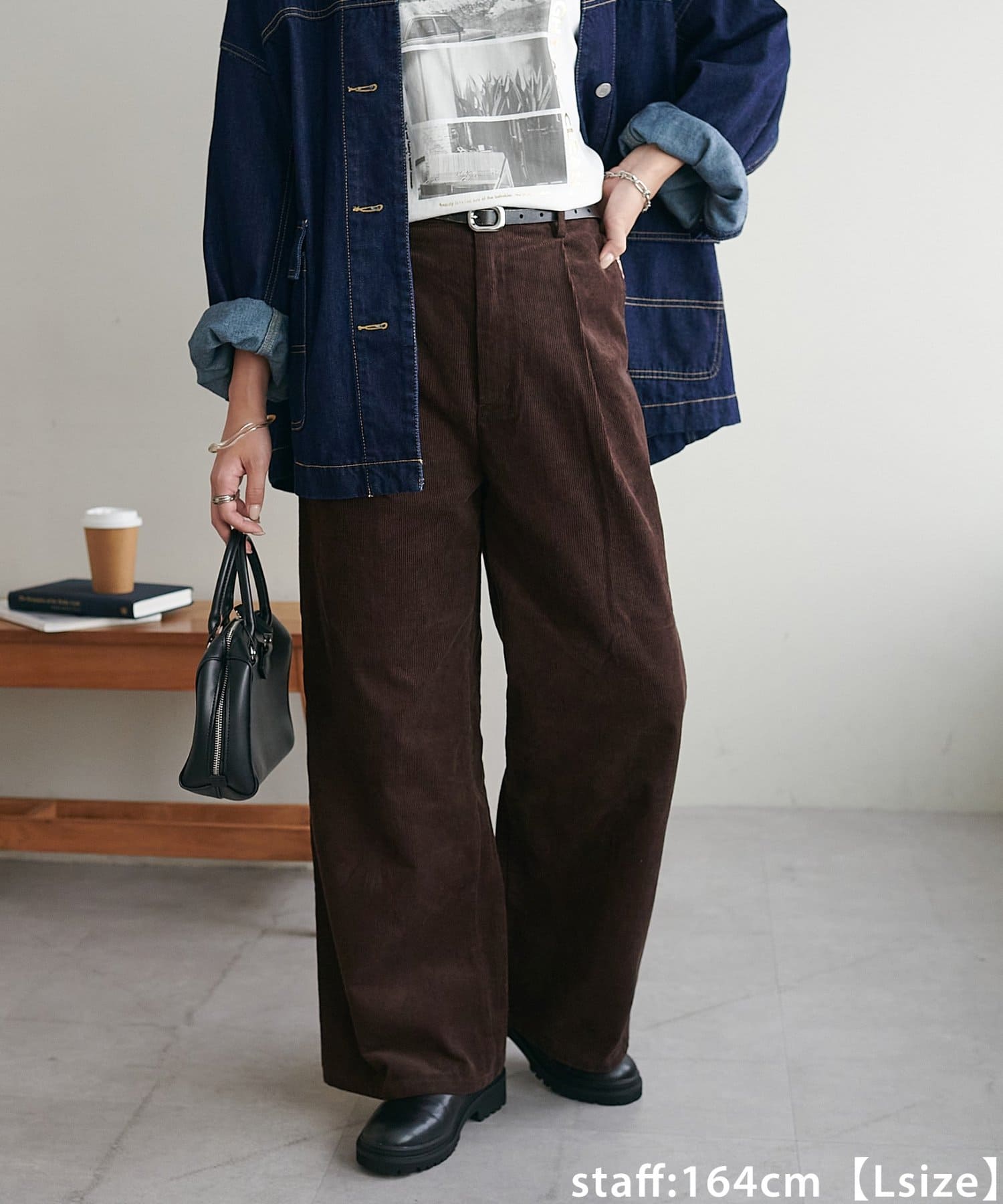 165cmスタッフ(Lサイズ着用):秋冬らしい温もりを感じさせる一本です。足元はスニーカーで抜け感を出したり、ブーツで大人っぽく引き締めるのもおすすめ♪