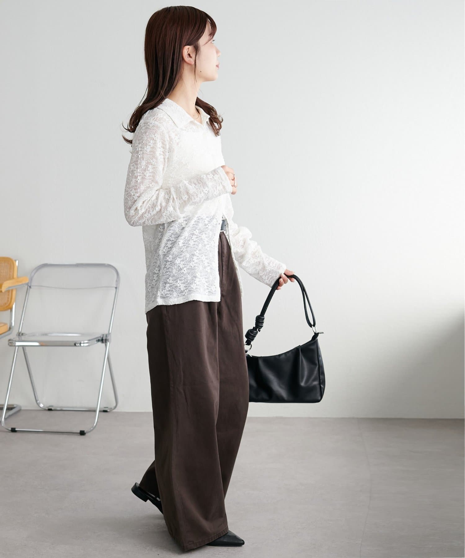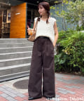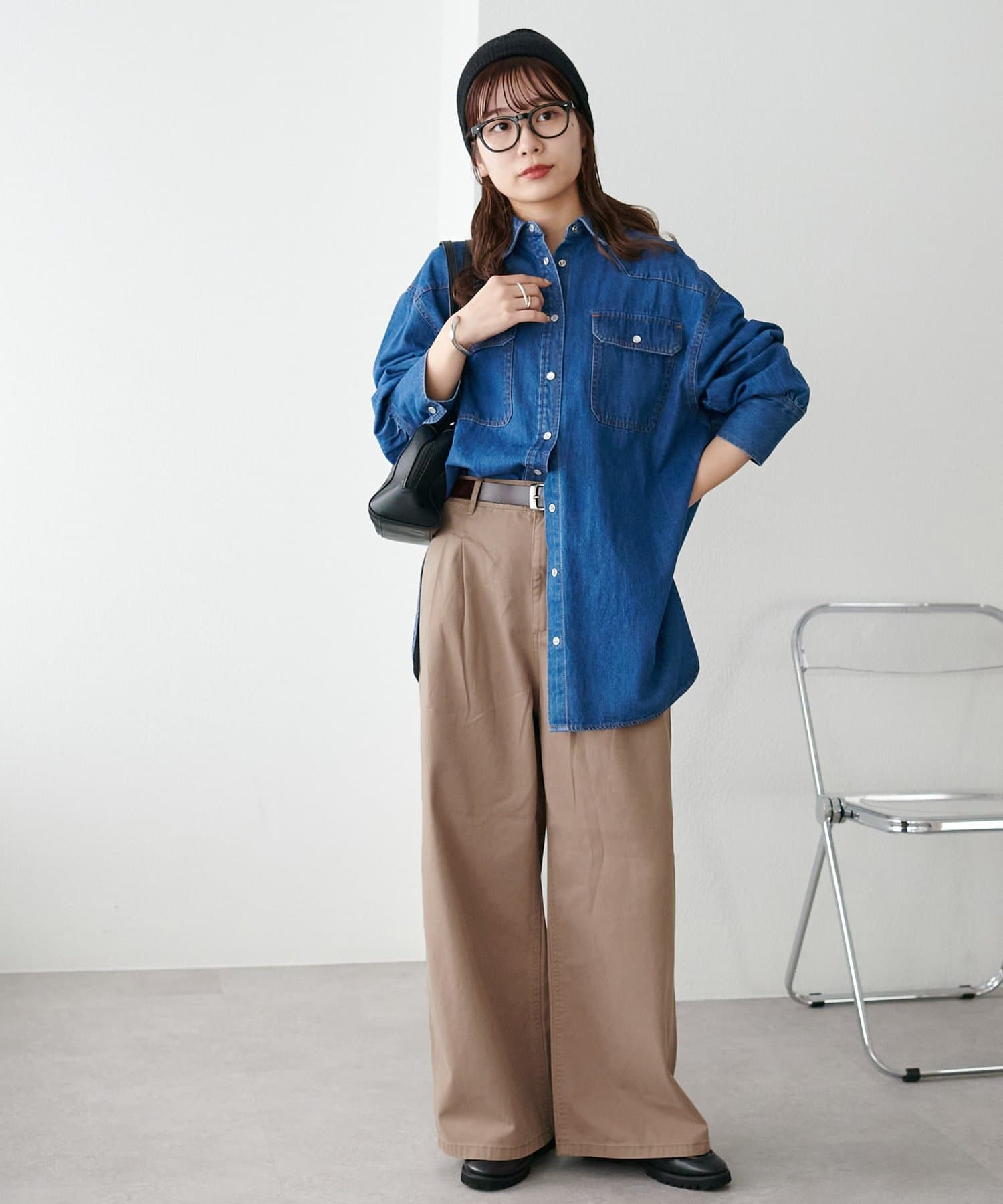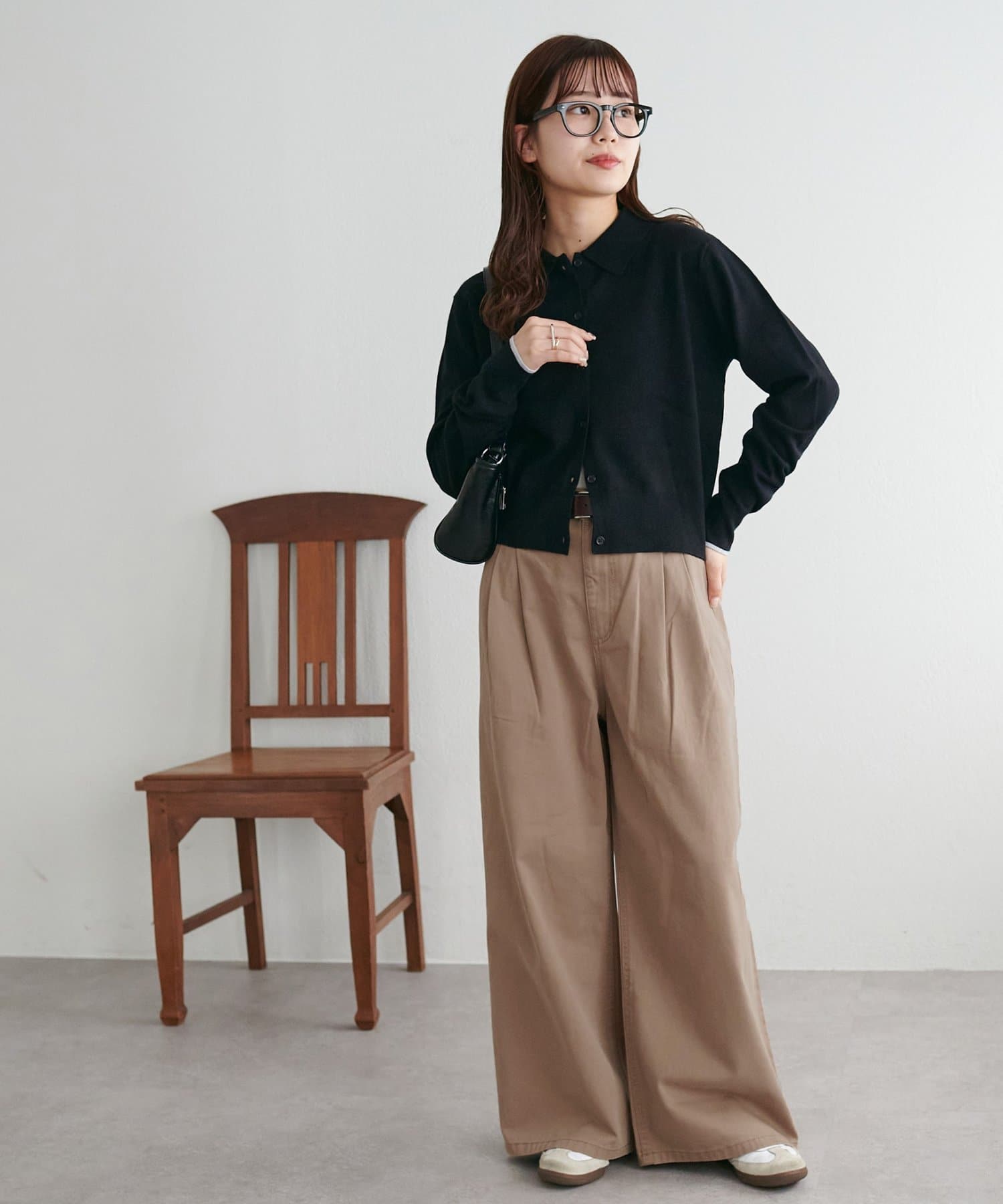 157cmスタッフ(Mサイズ着用):ゆったりとしたワイドパンツでカジュアルにもキレイメにも着回しができます。