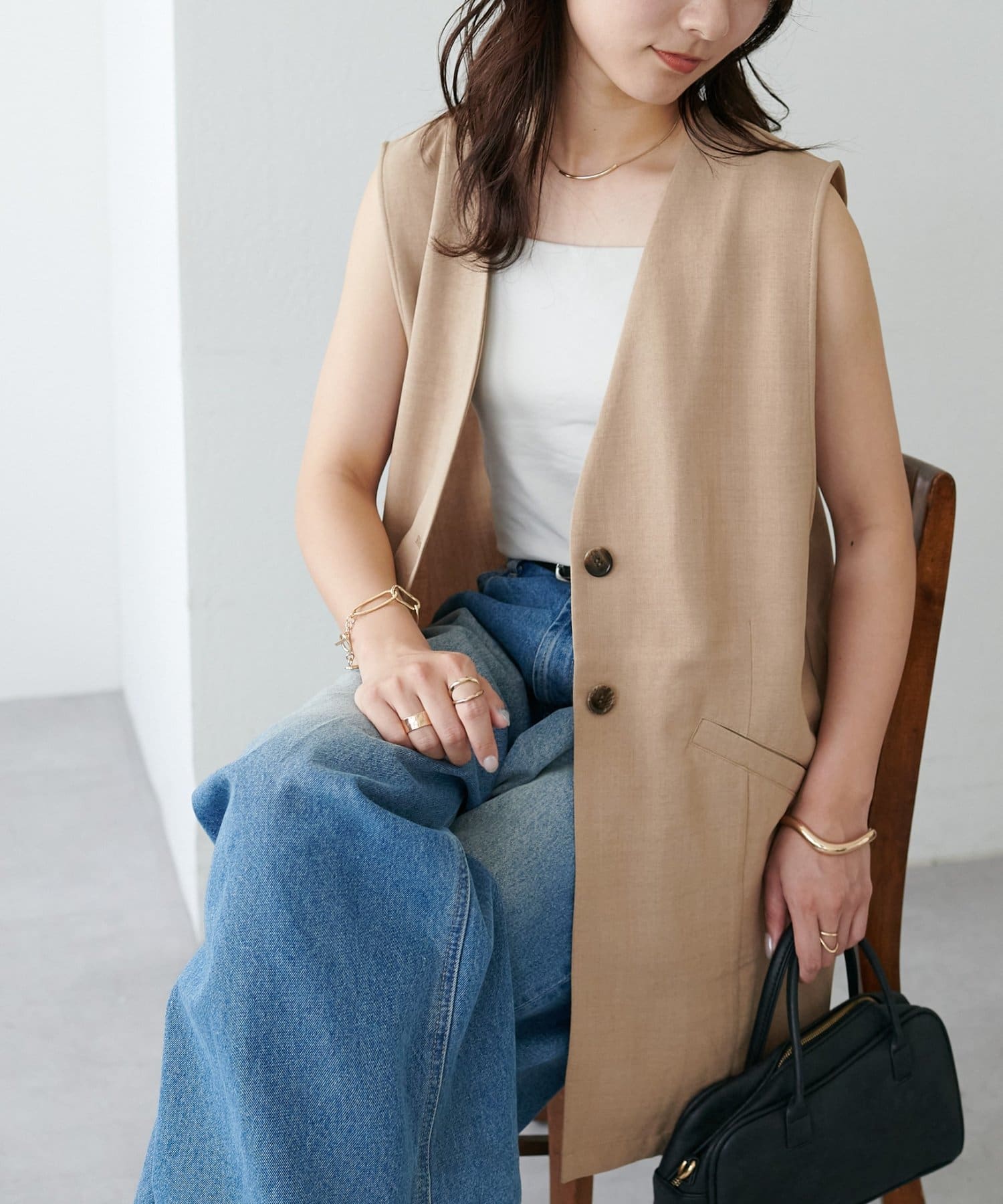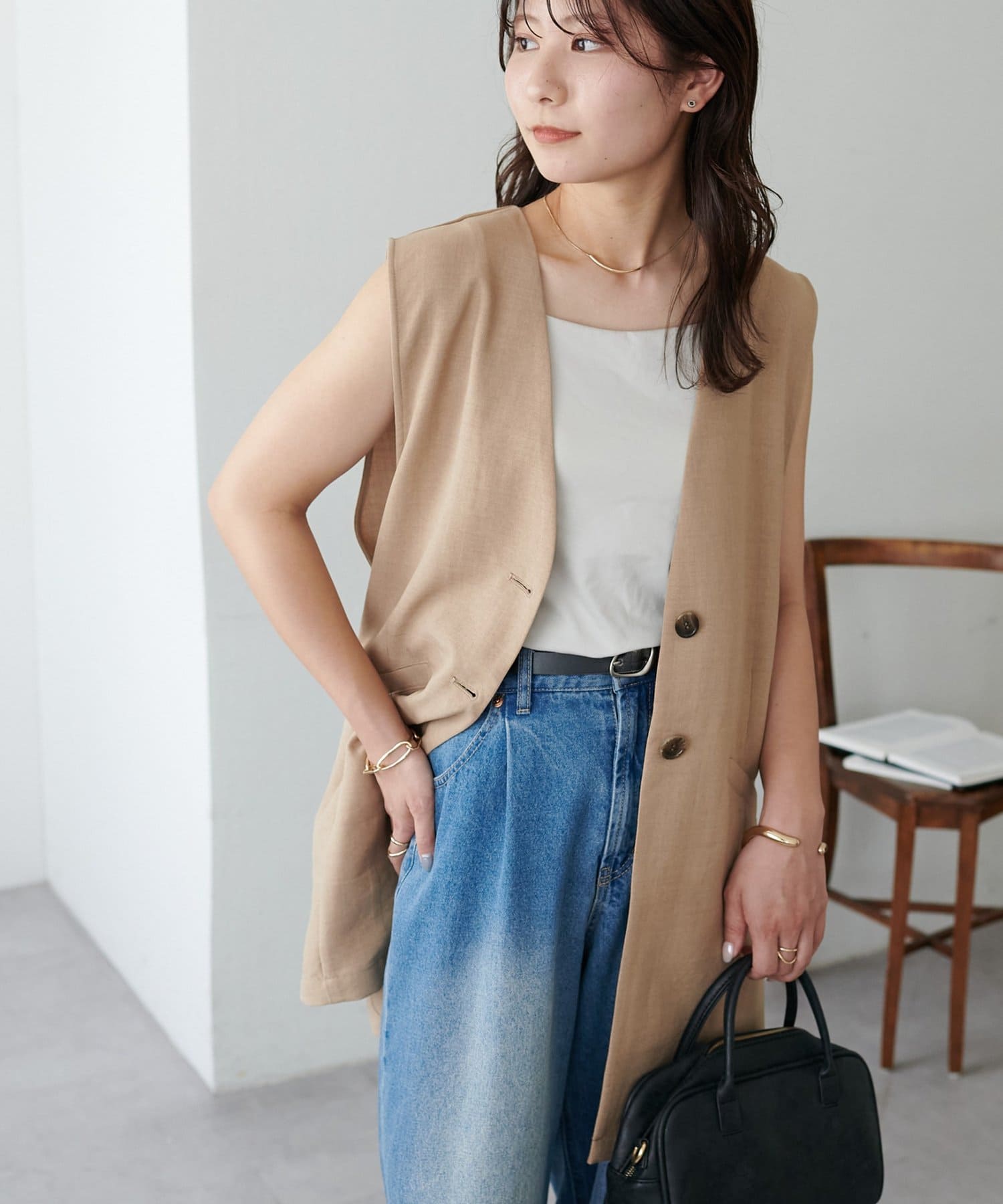 肌離れの良い質感で、夏シーズンにぴったりなノーカラージレ♪