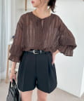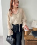 袖口はシャーリング仕様で、袖をたくし上げても自然なふんわり感が残ります◎