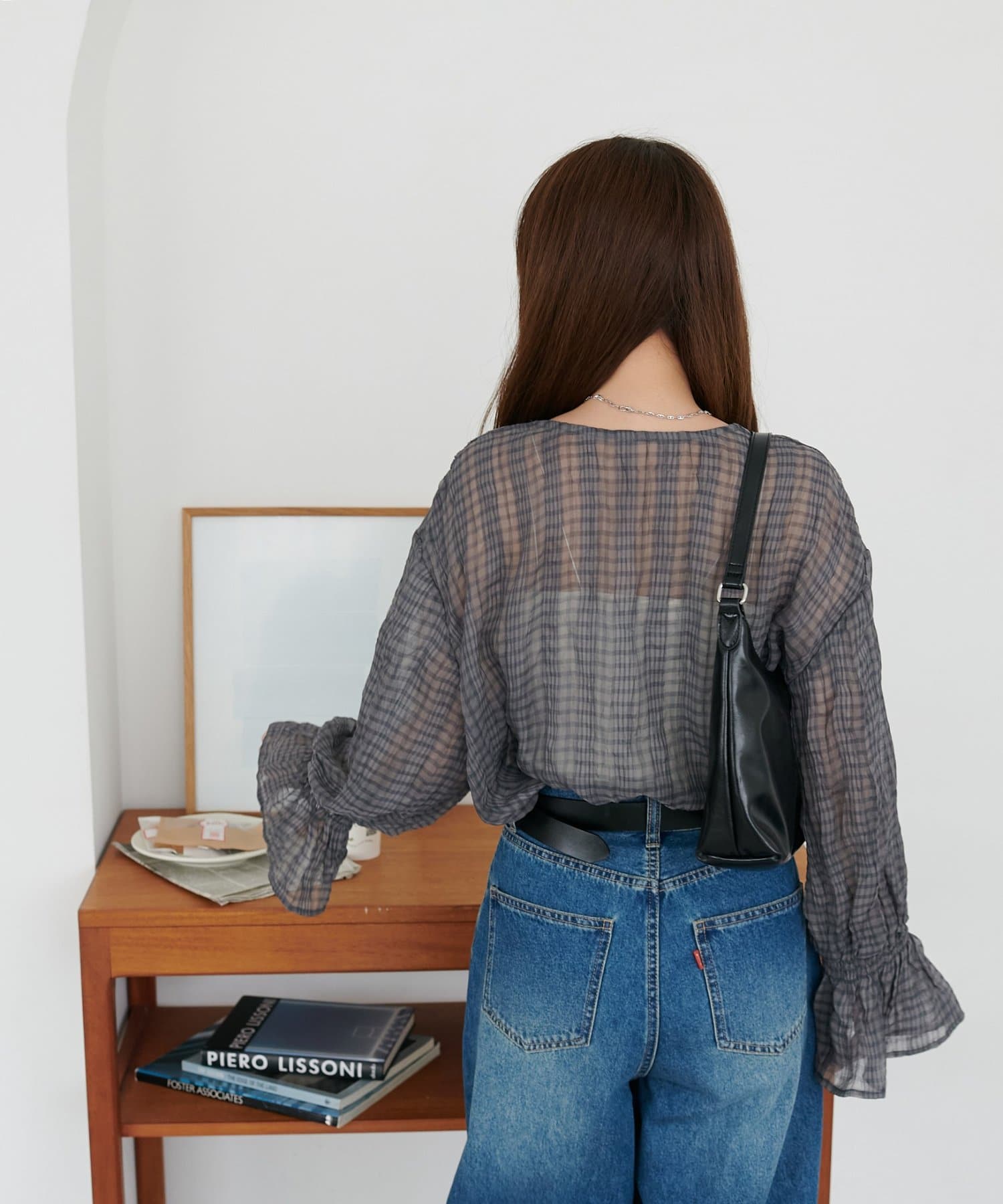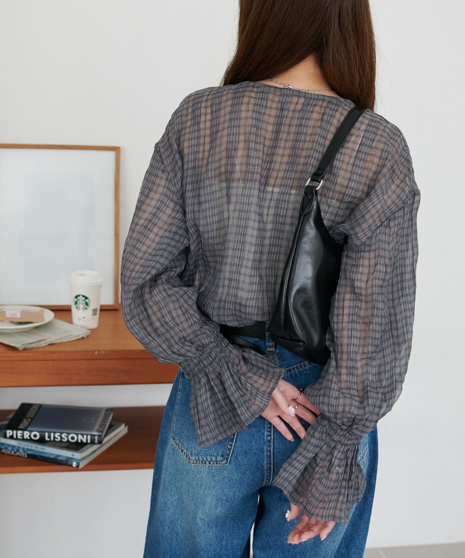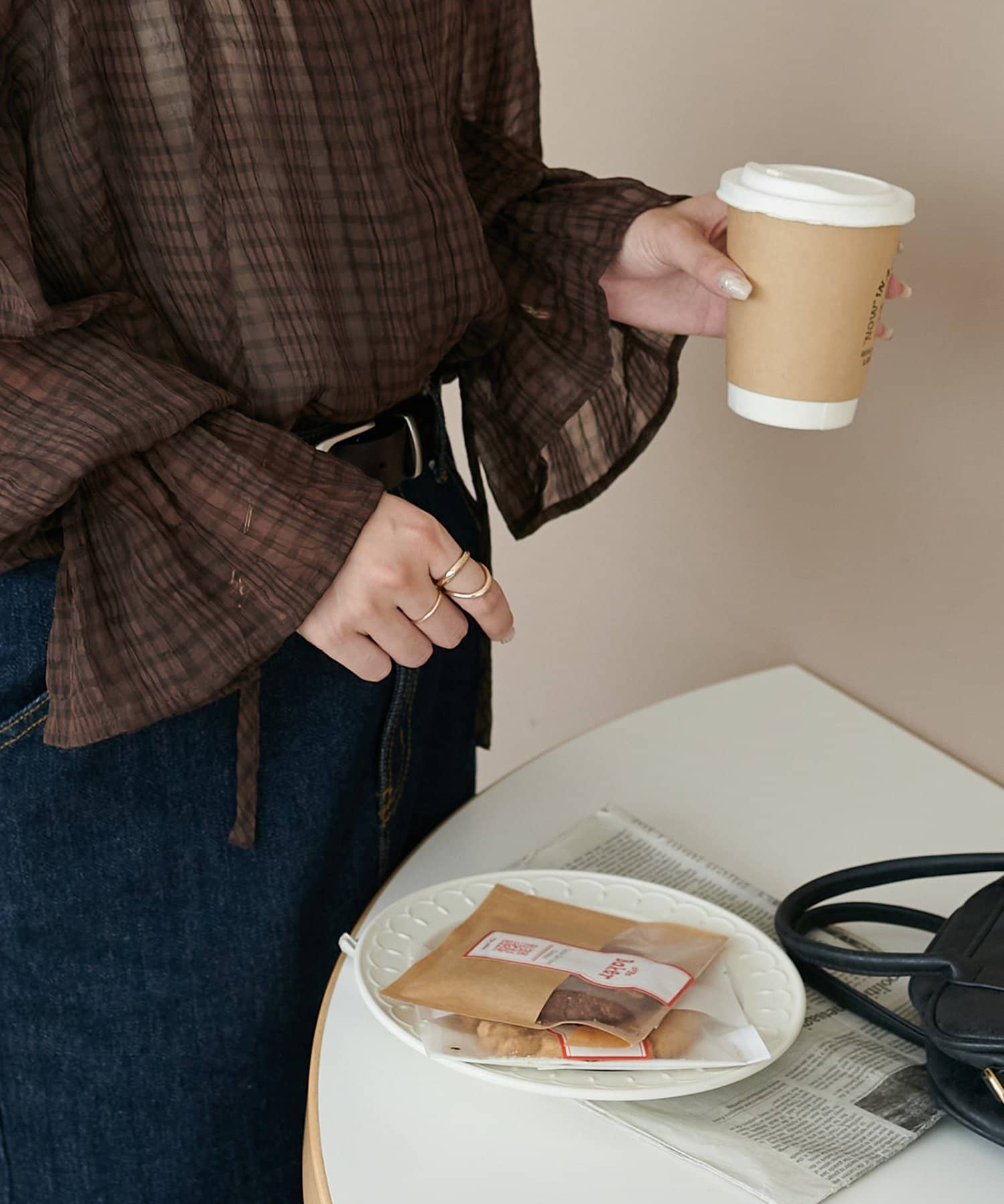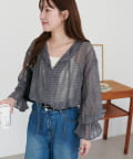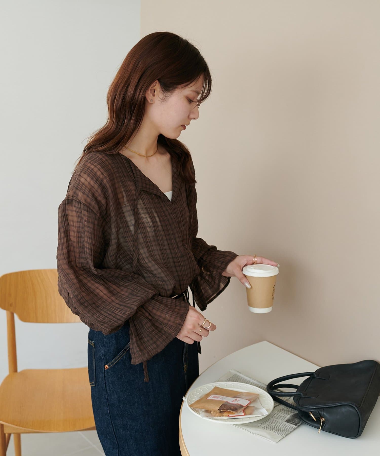 軽やかなシアー素材に細かなチェックのデザインが、カジュアルすぎず上品さも兼ね備えた一枚に仕上がりました。