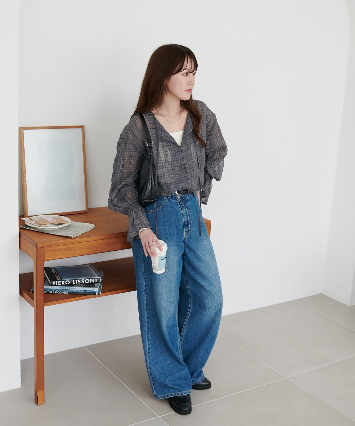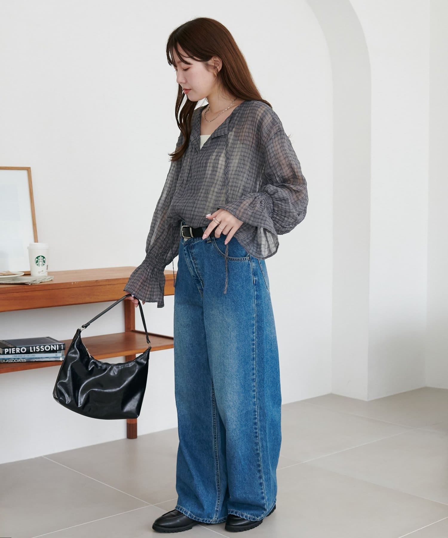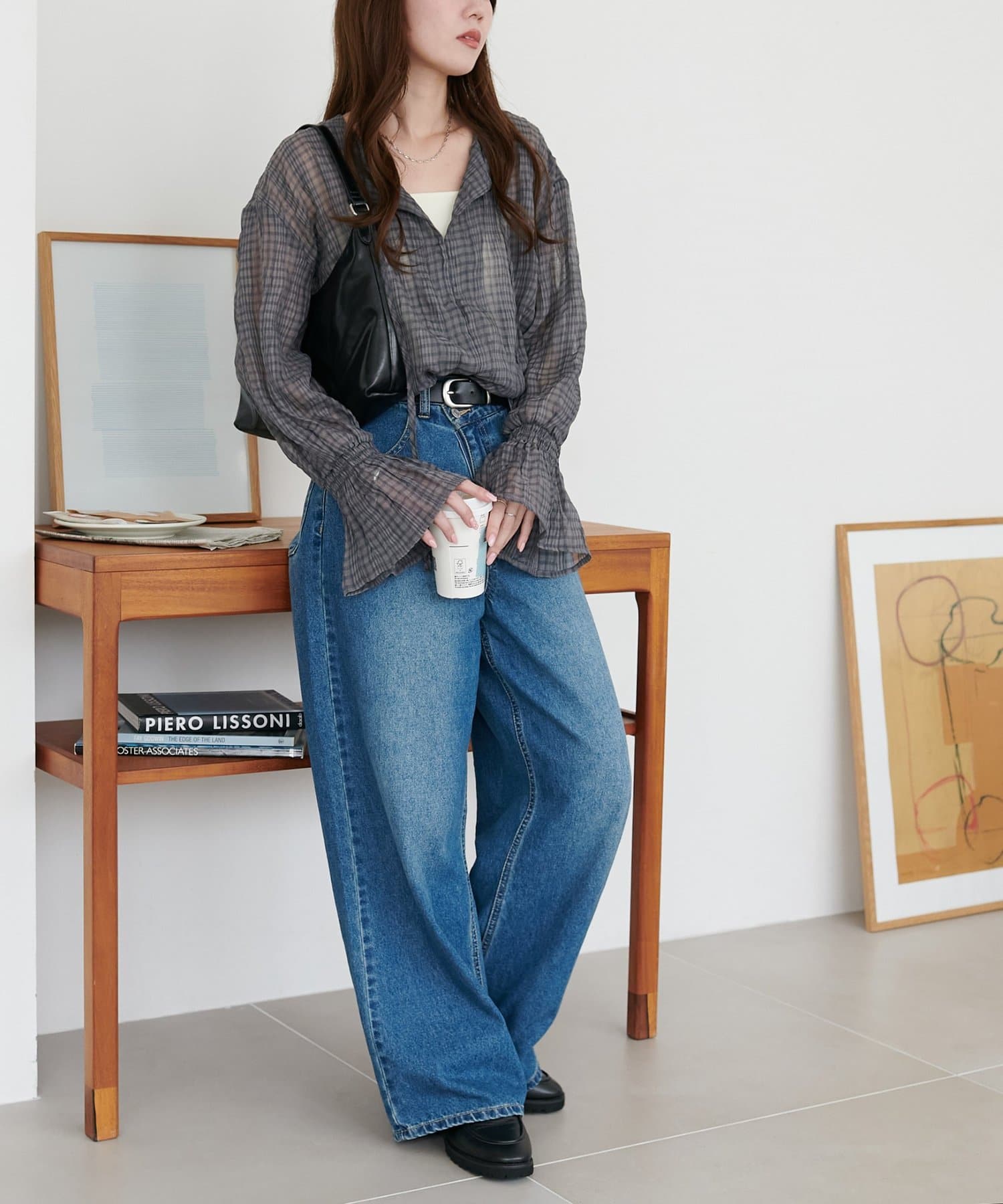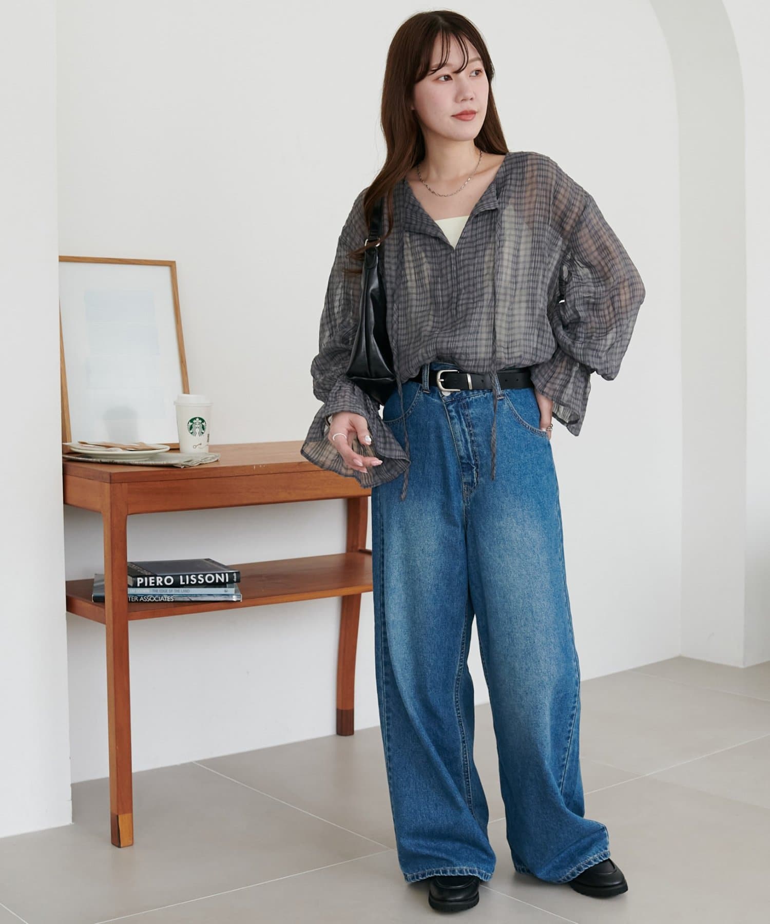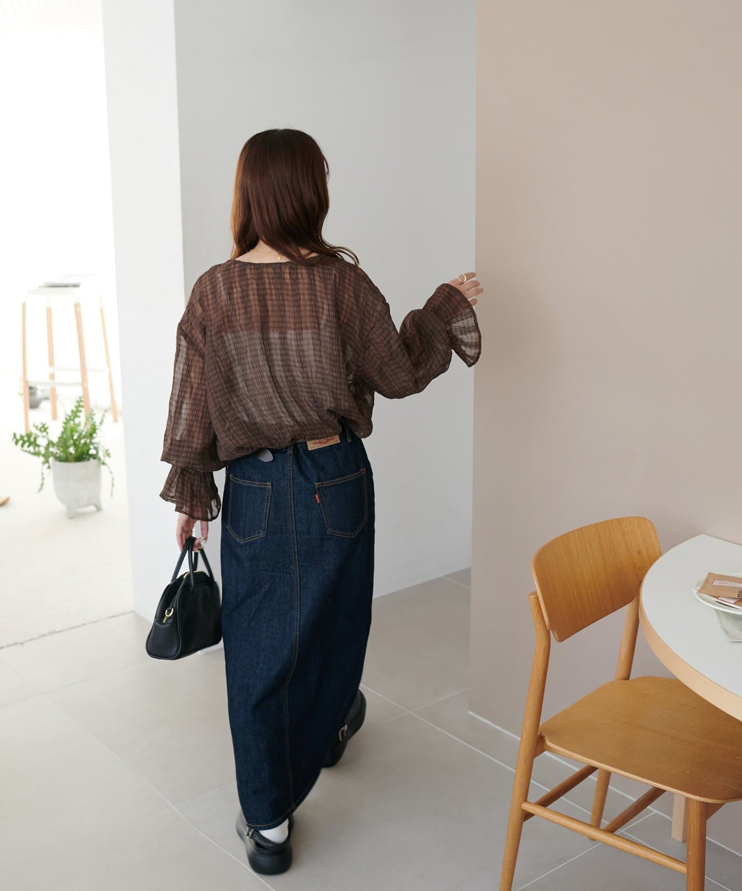 軽やかなシアー素材に細かなチェックのデザインが、カジュアルすぎず上品さも兼ね備えた一枚に仕上がりました。