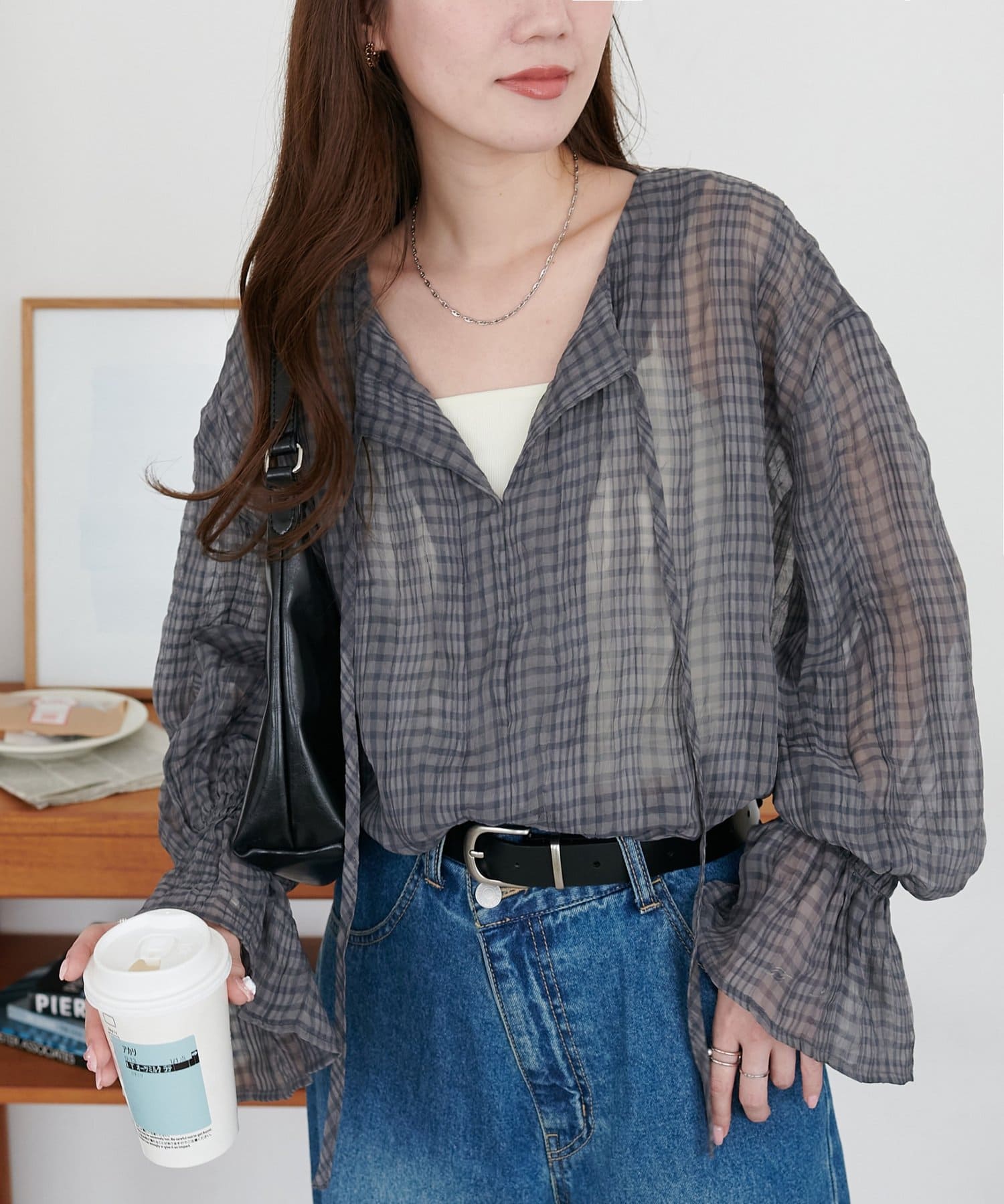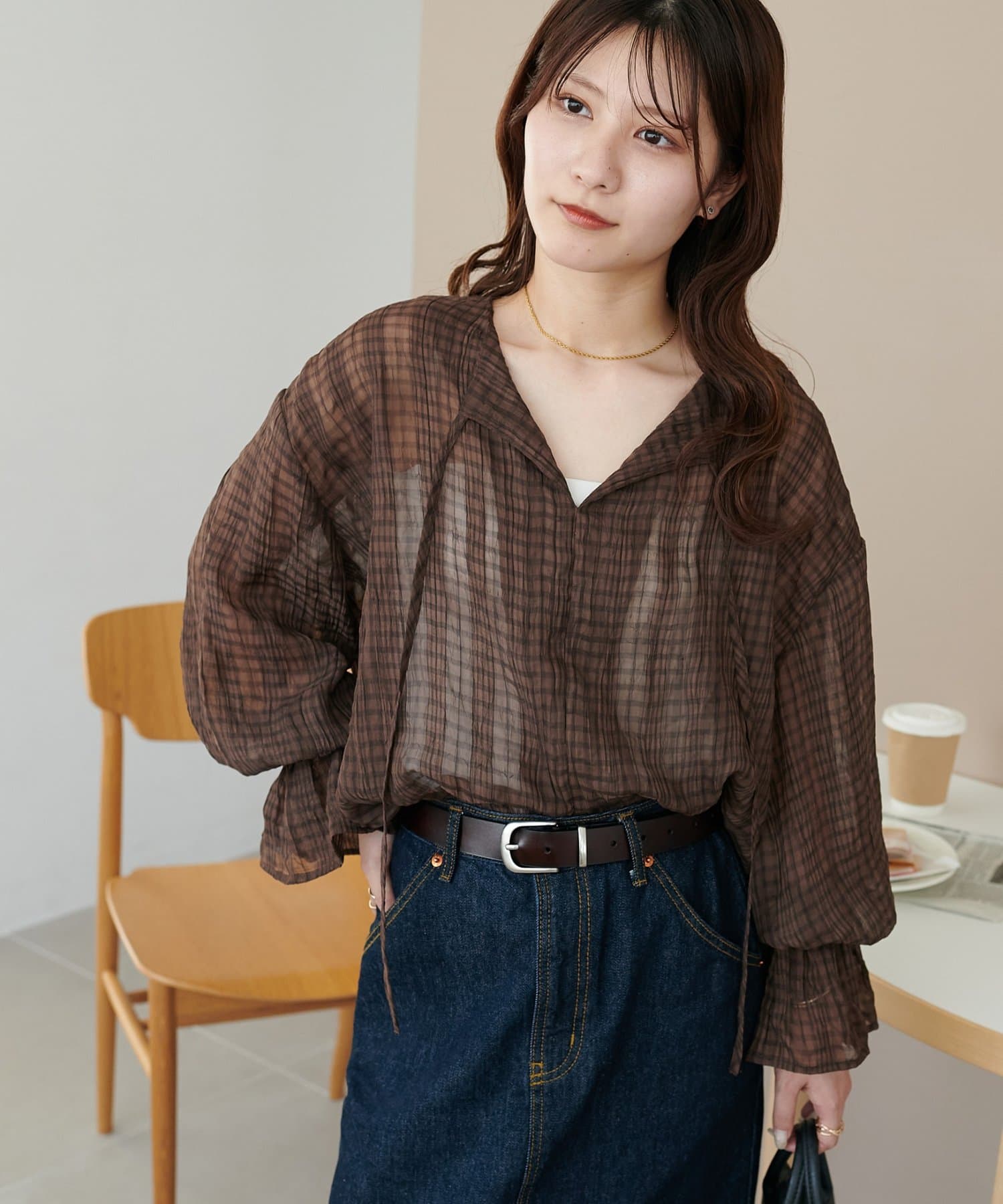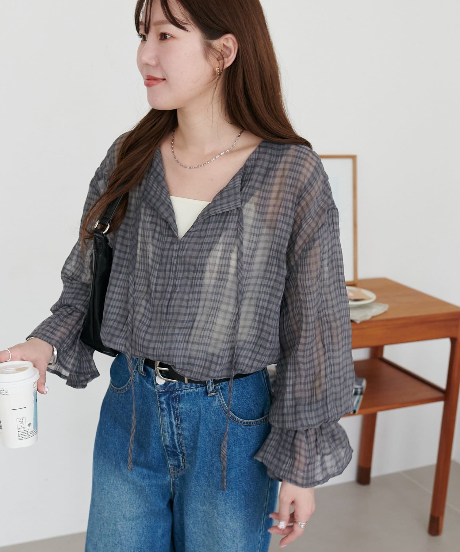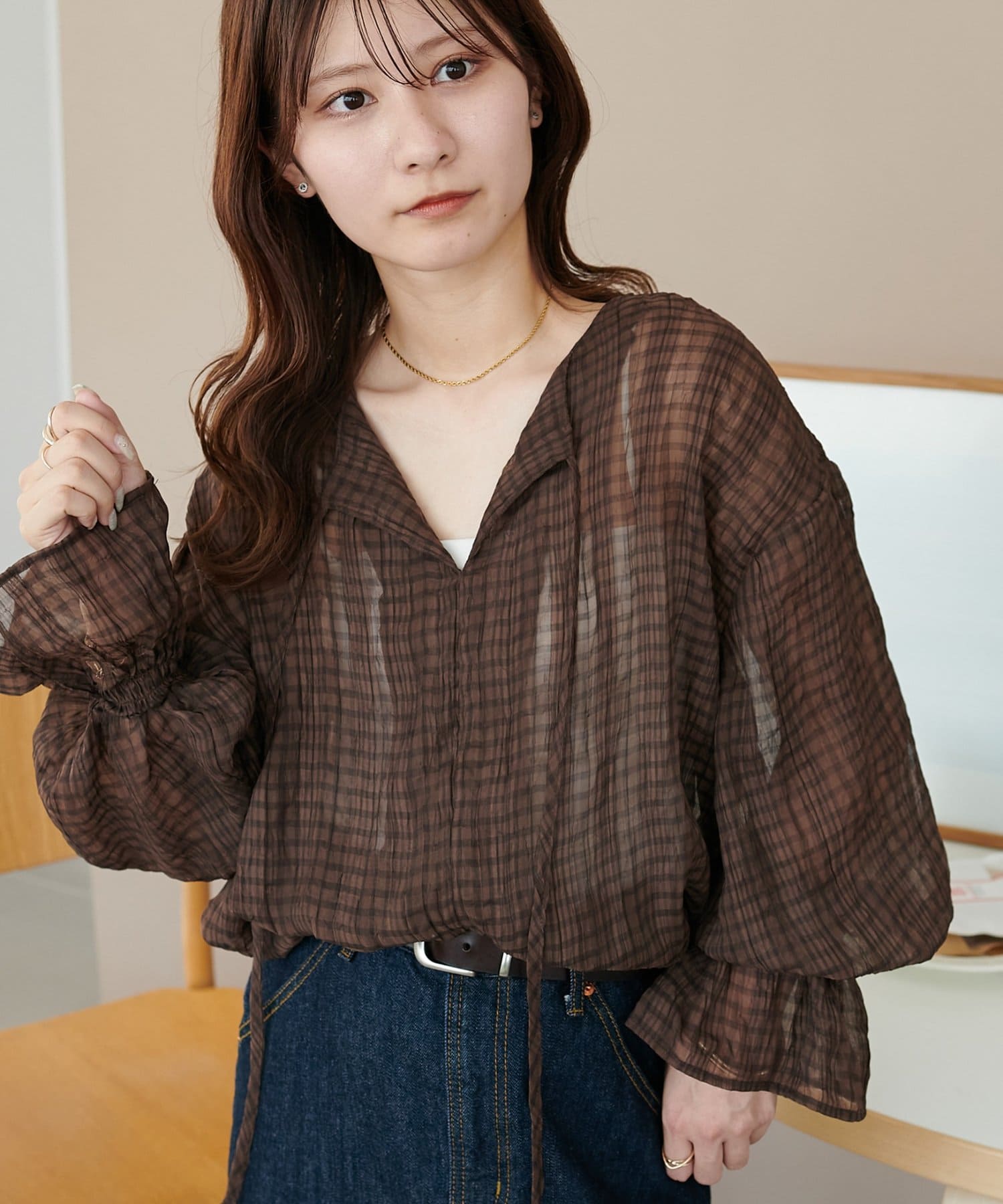 シアーチェックスキッパーブラウス《WEB限定カラーあり》