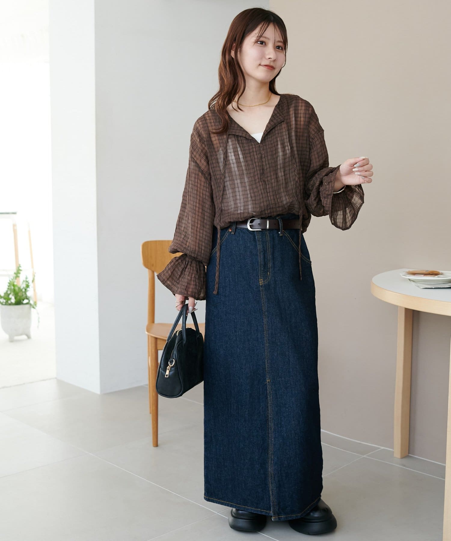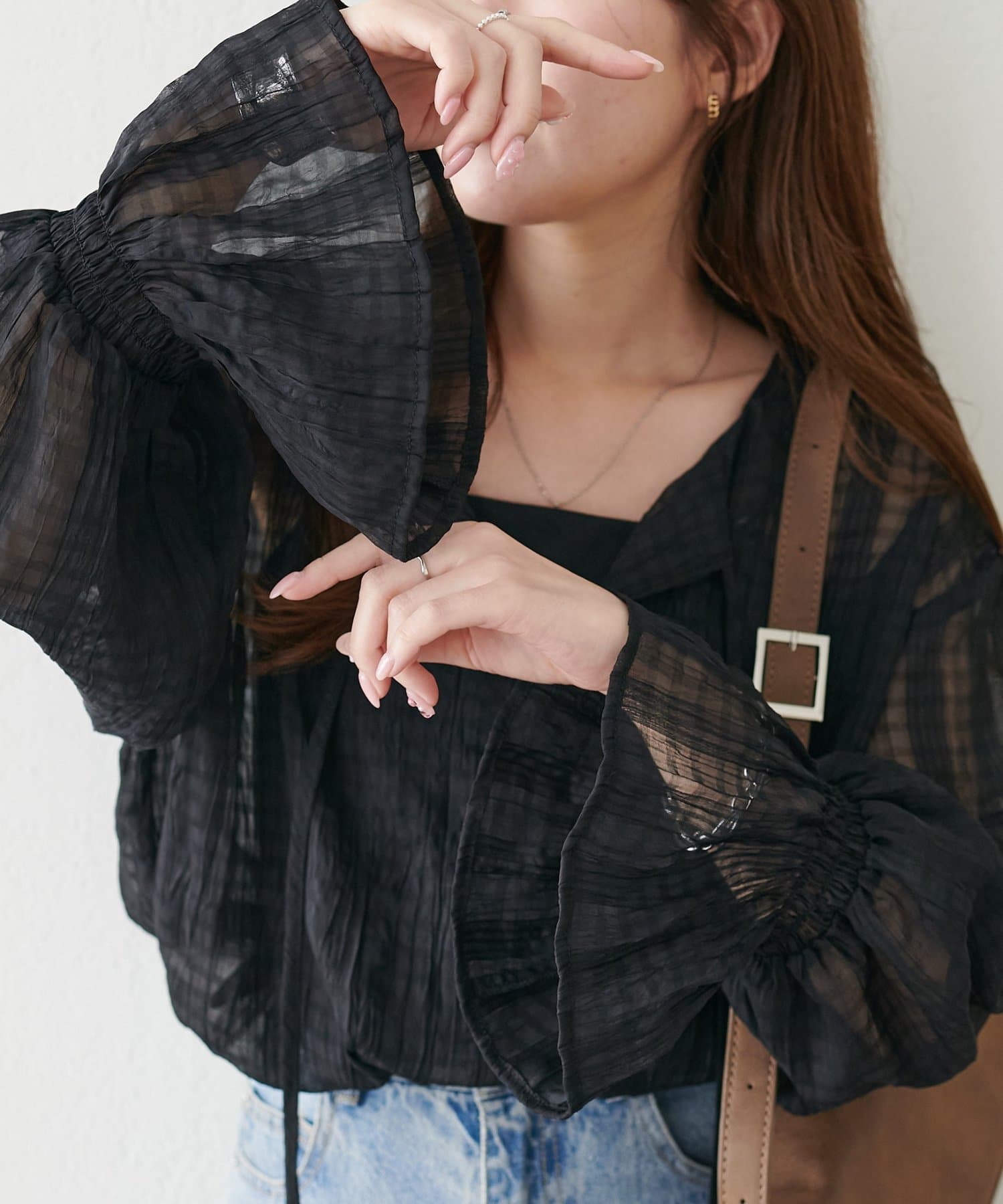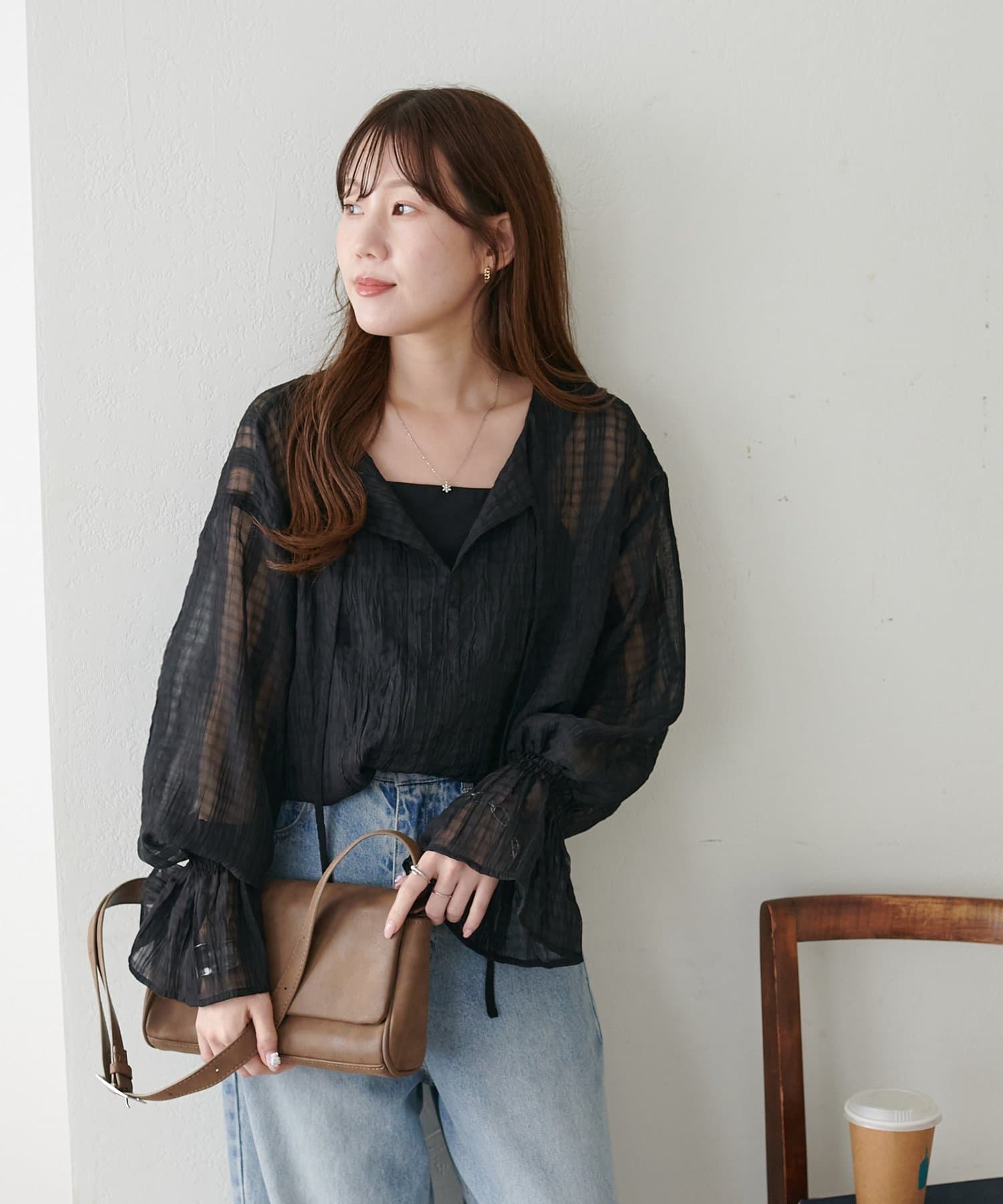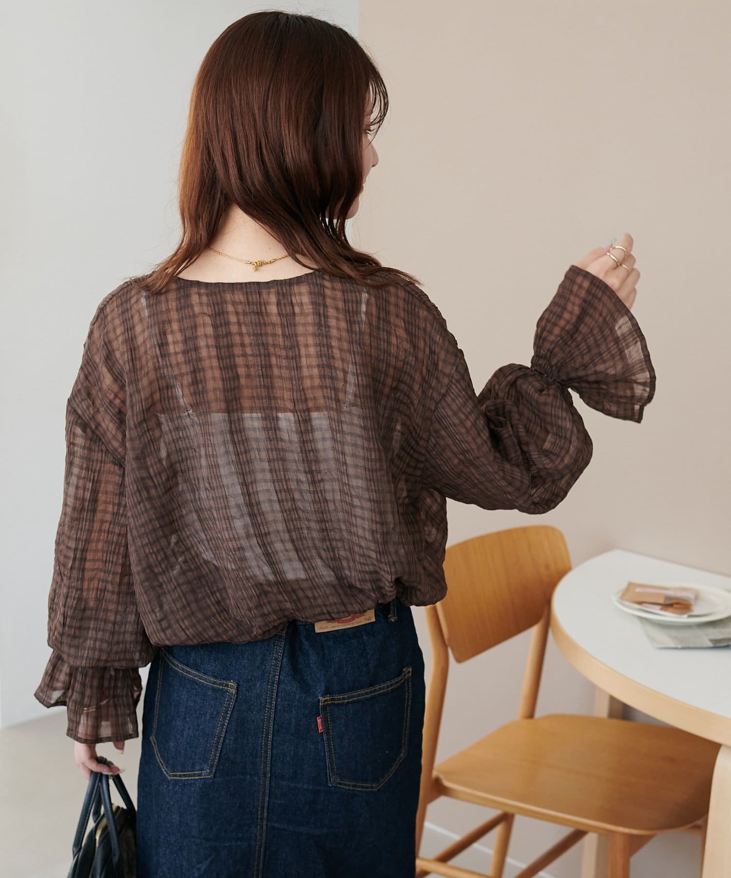 シアーチェックスキッパーブラウス《WEB限定カラーあり》