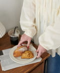 ほんのりAラインに広がる裾と、ボリュームスリーブのバランスが軽やかで華やかな雰囲気に仕上がっています。