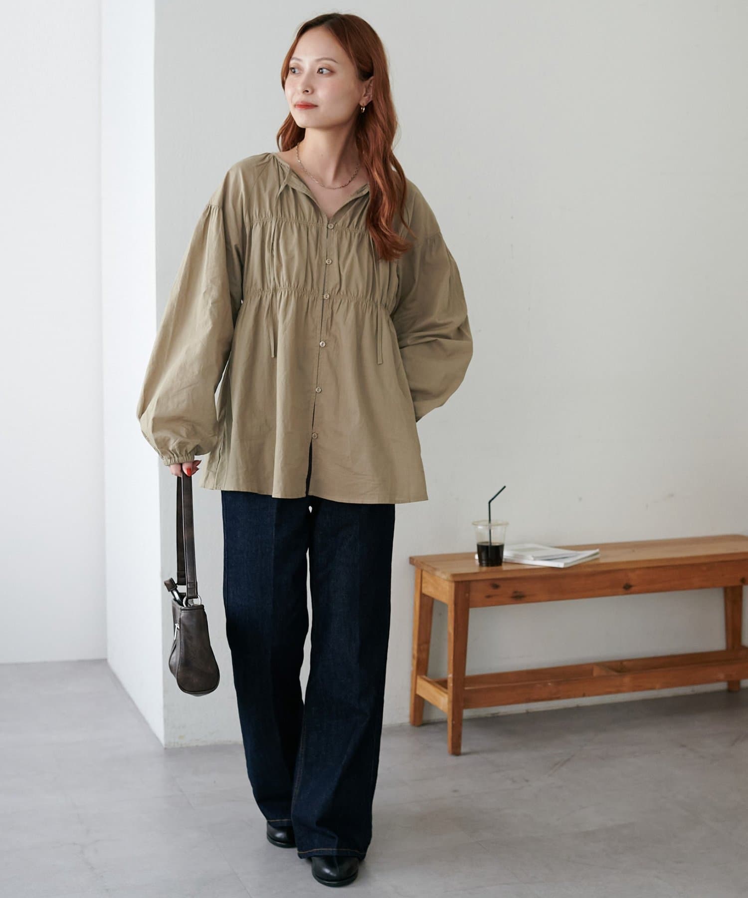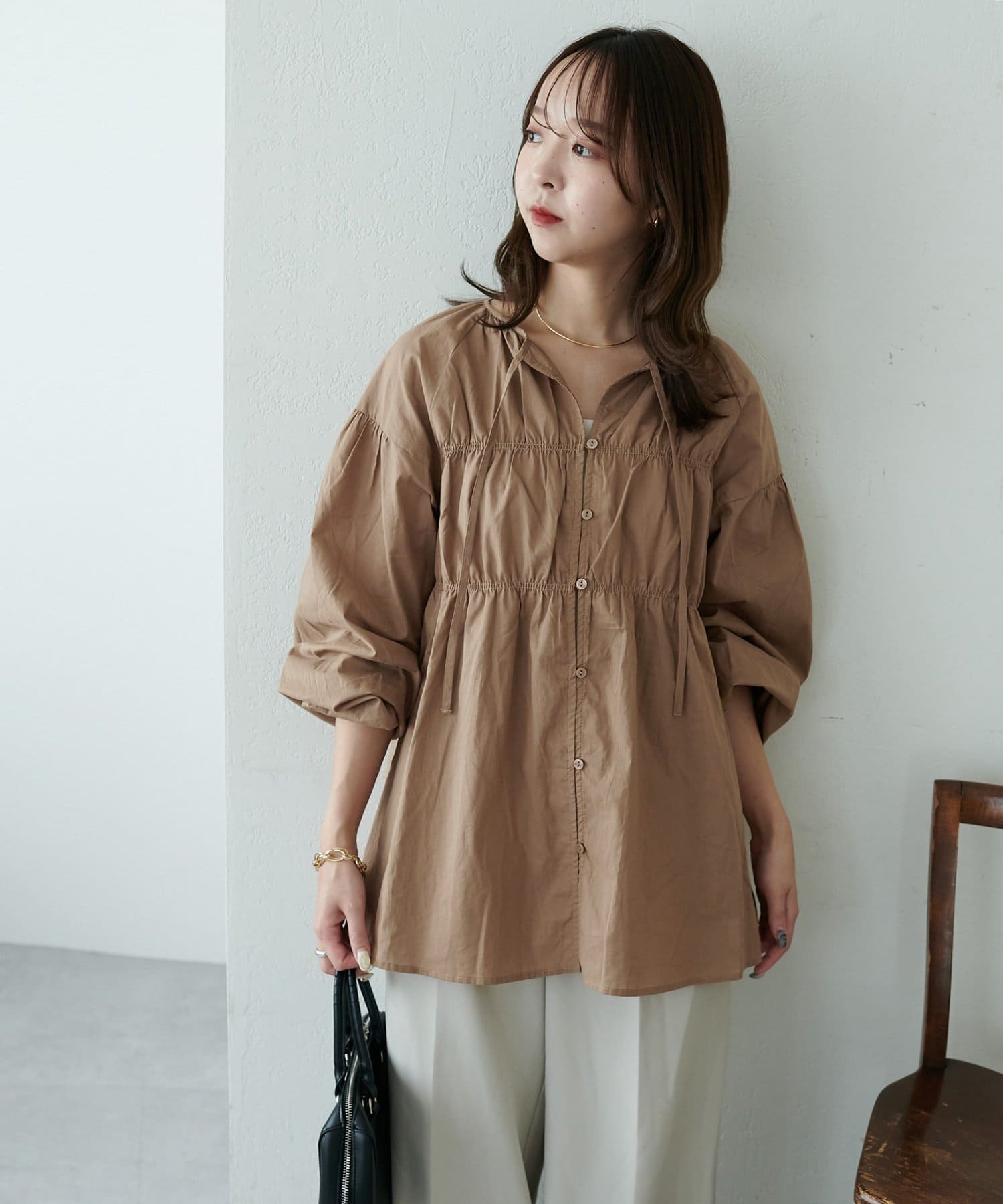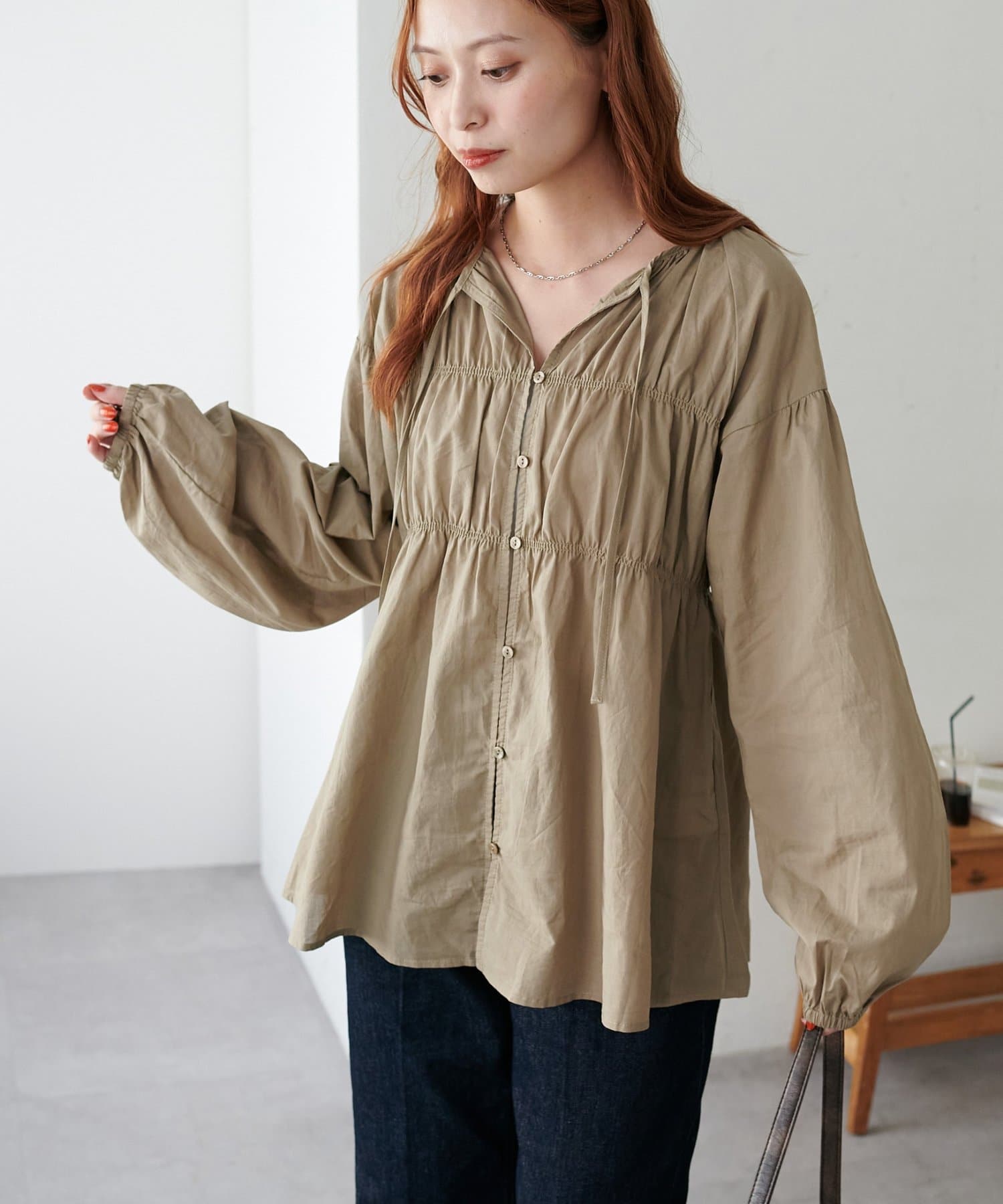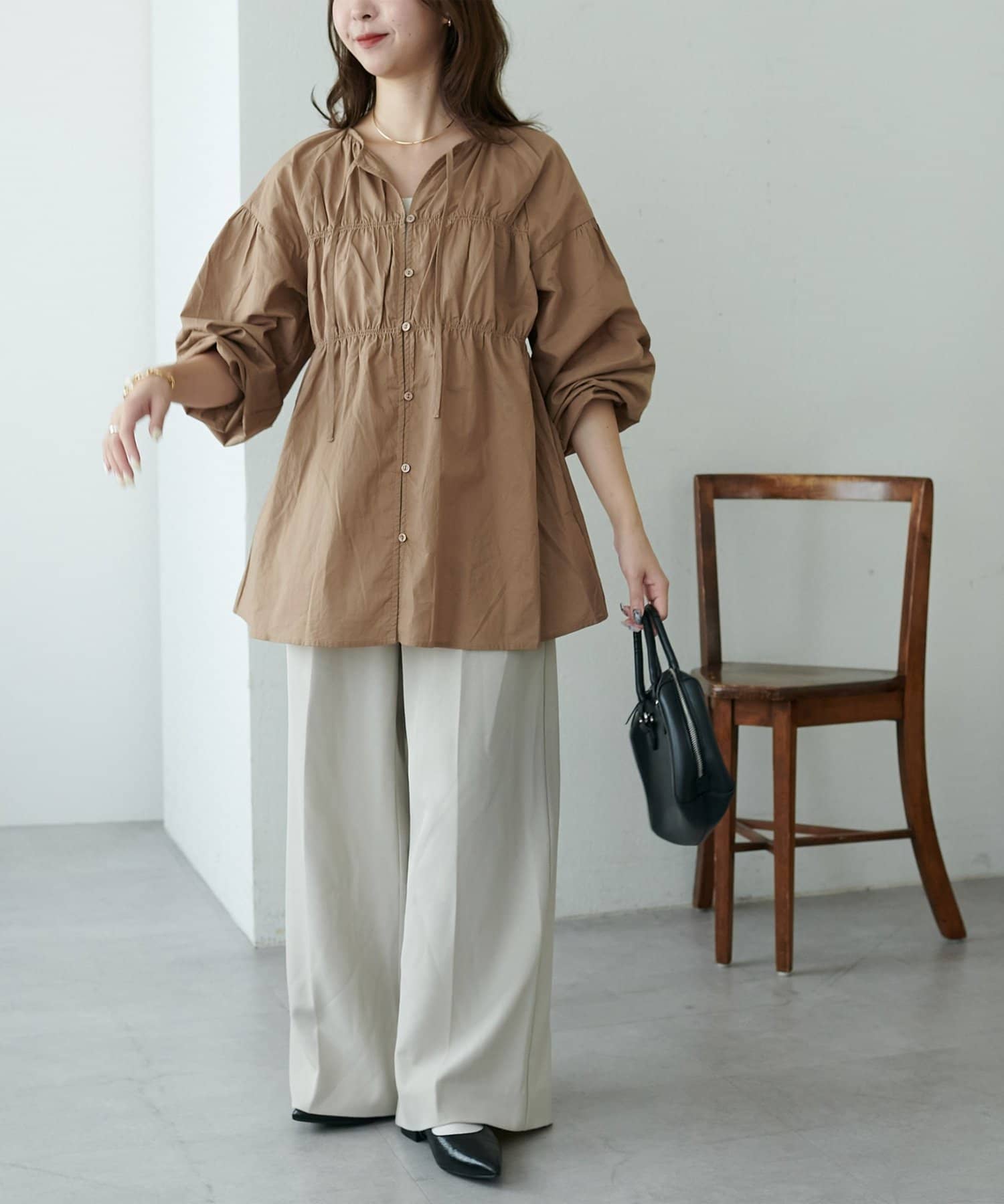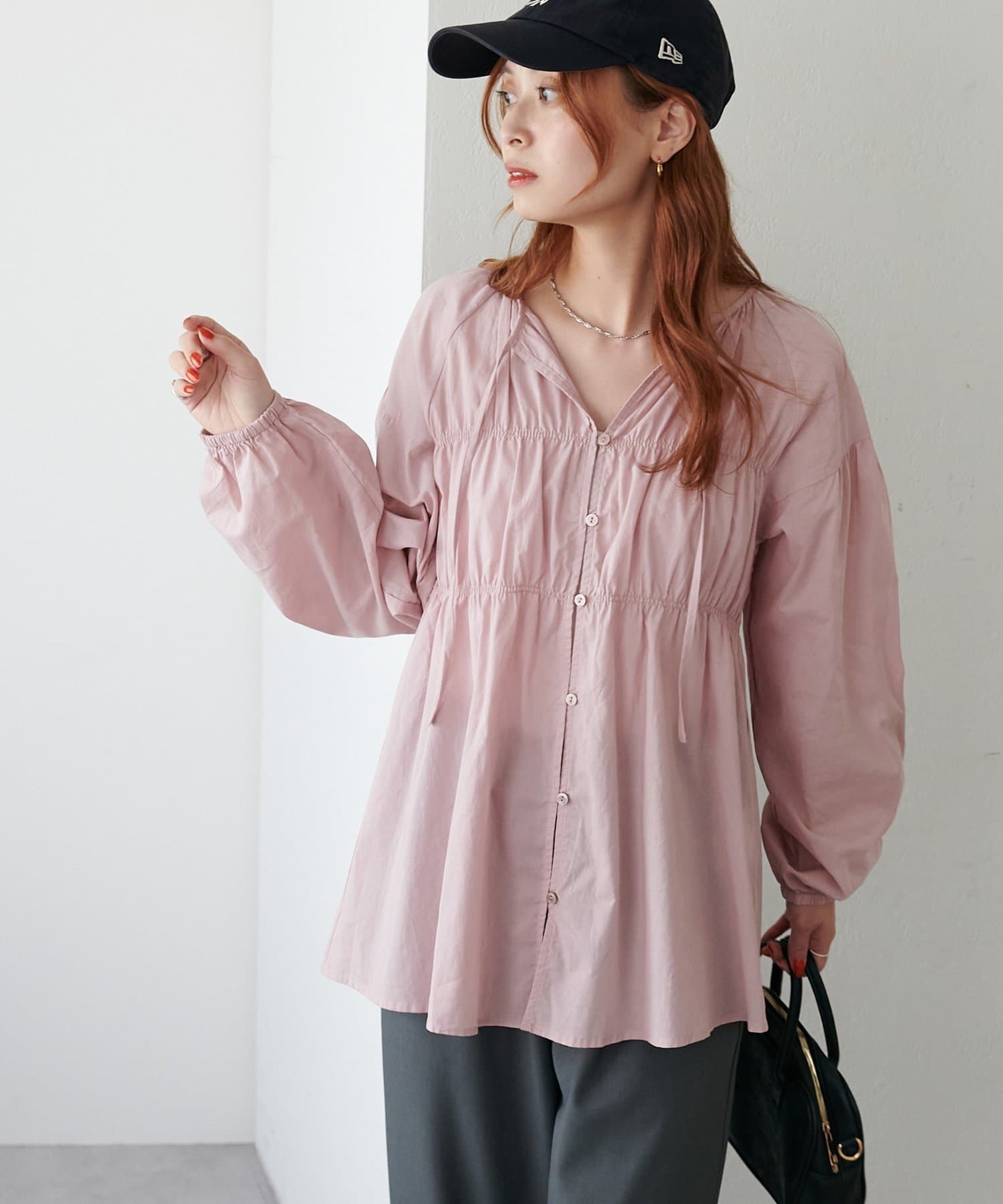 ギャザー前開きブラウス《WEB限定カラーあり》