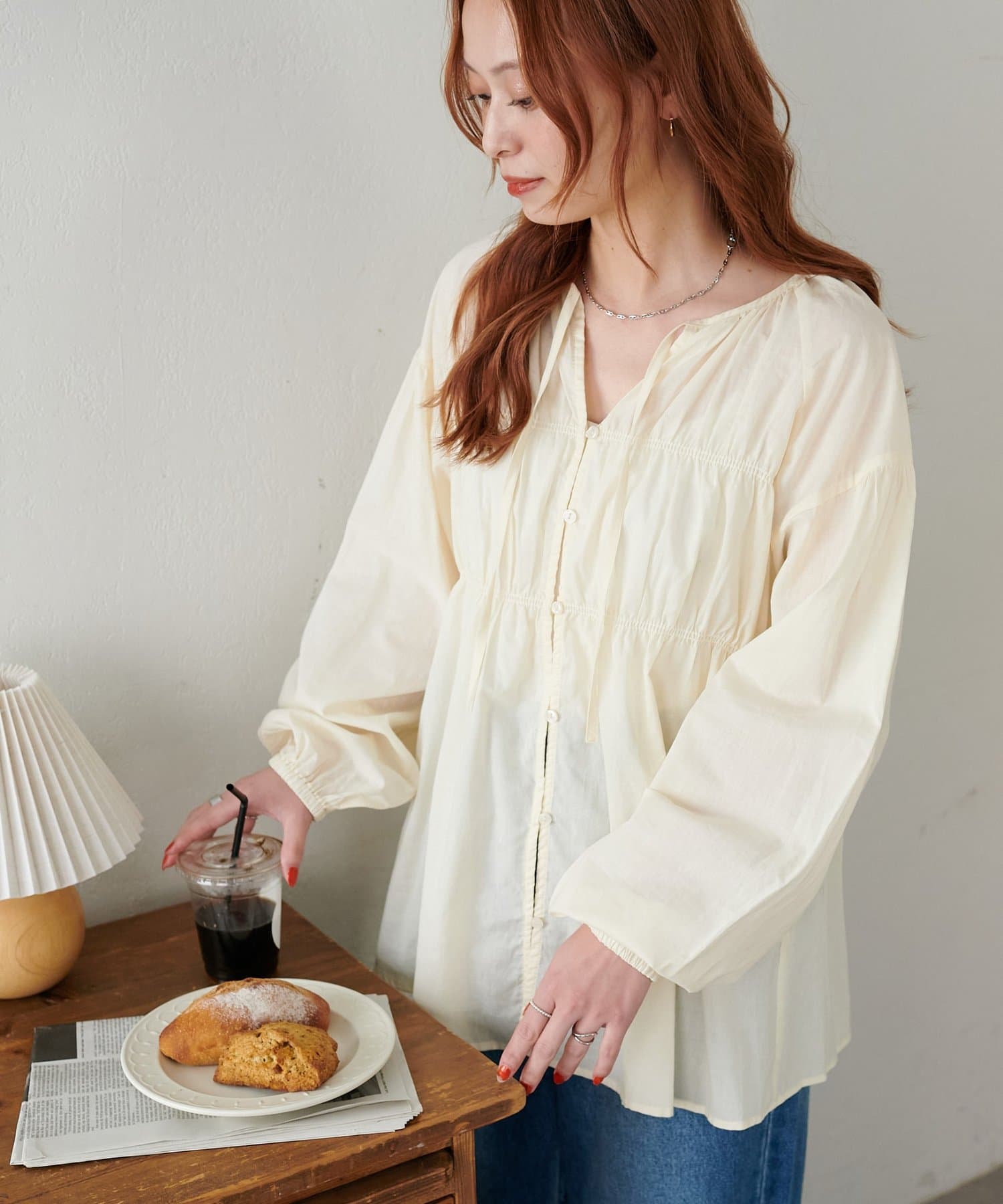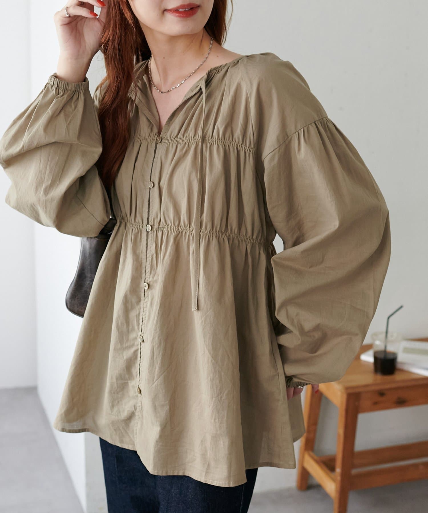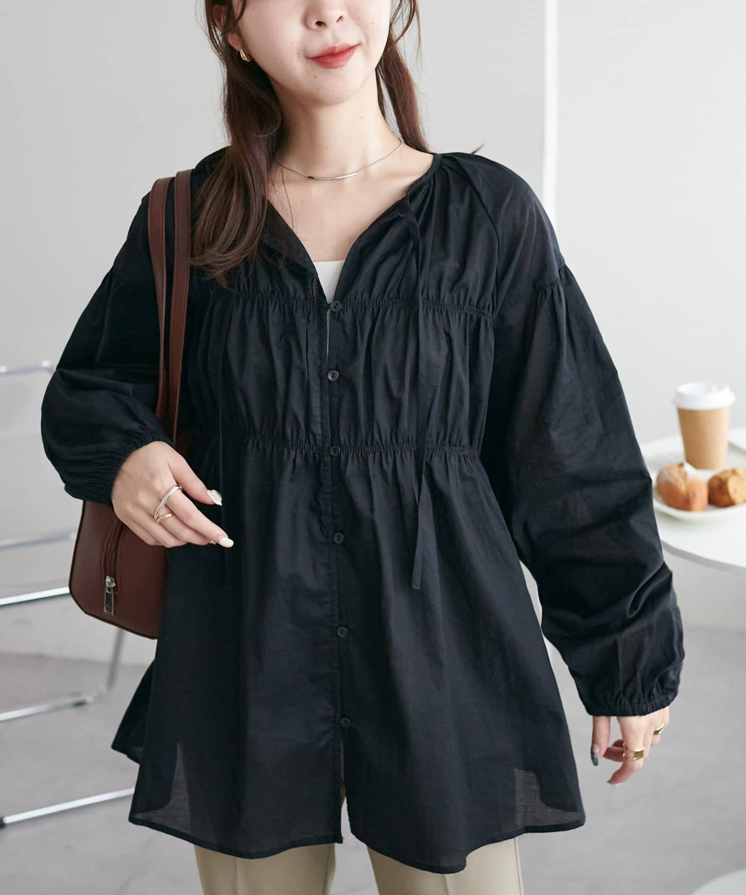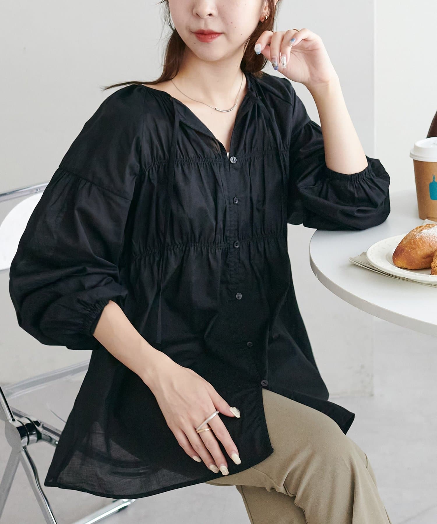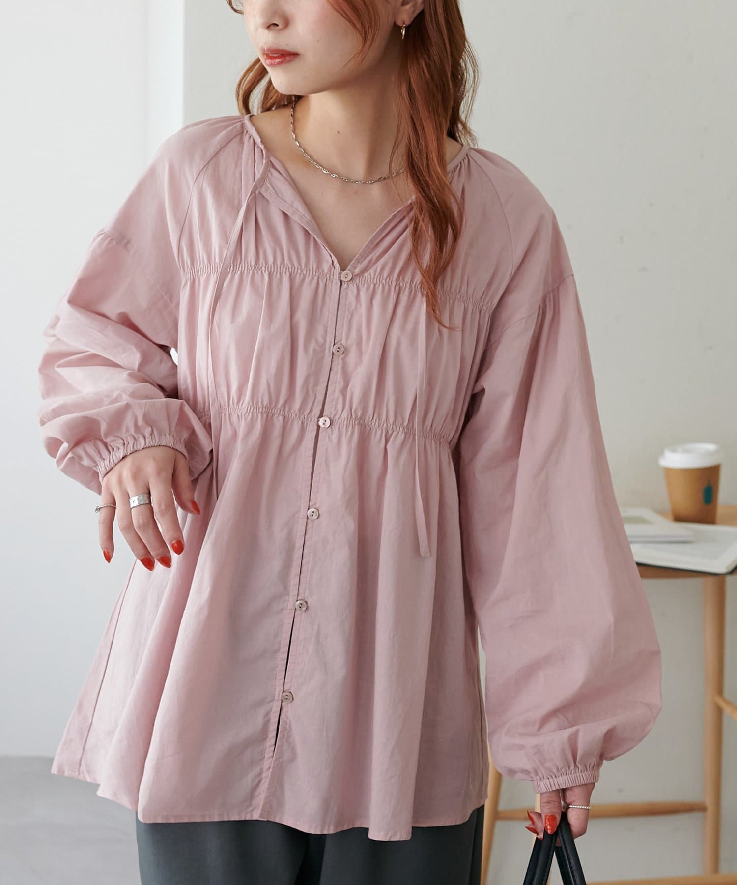 ギャザー前開きブラウス《WEB限定カラーあり》