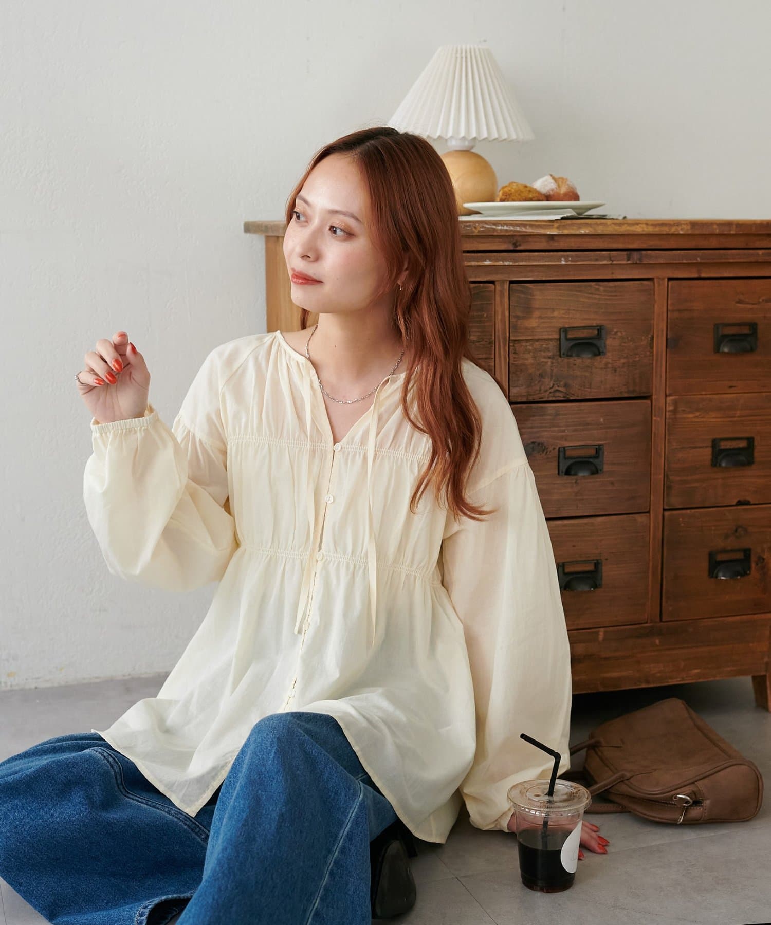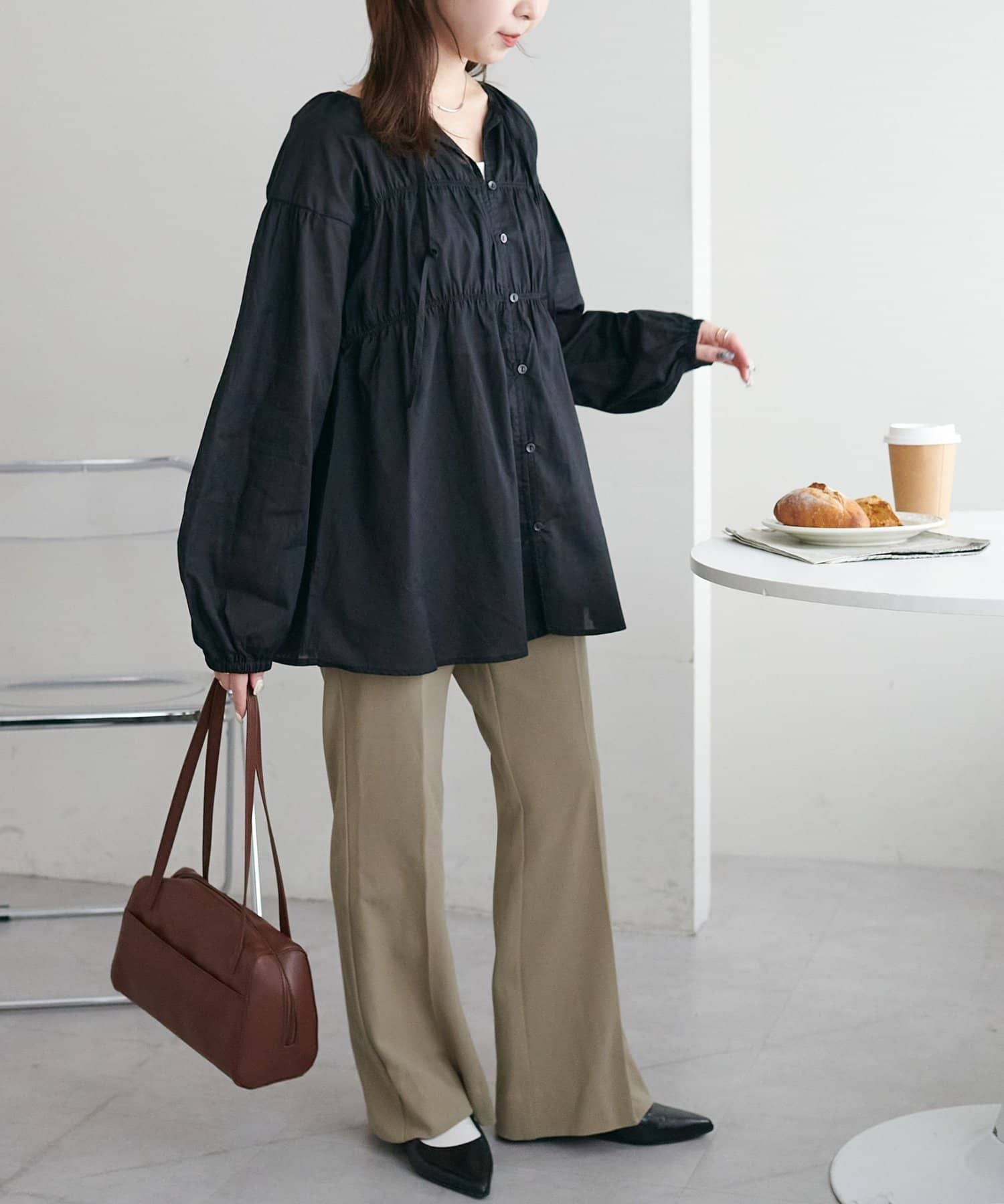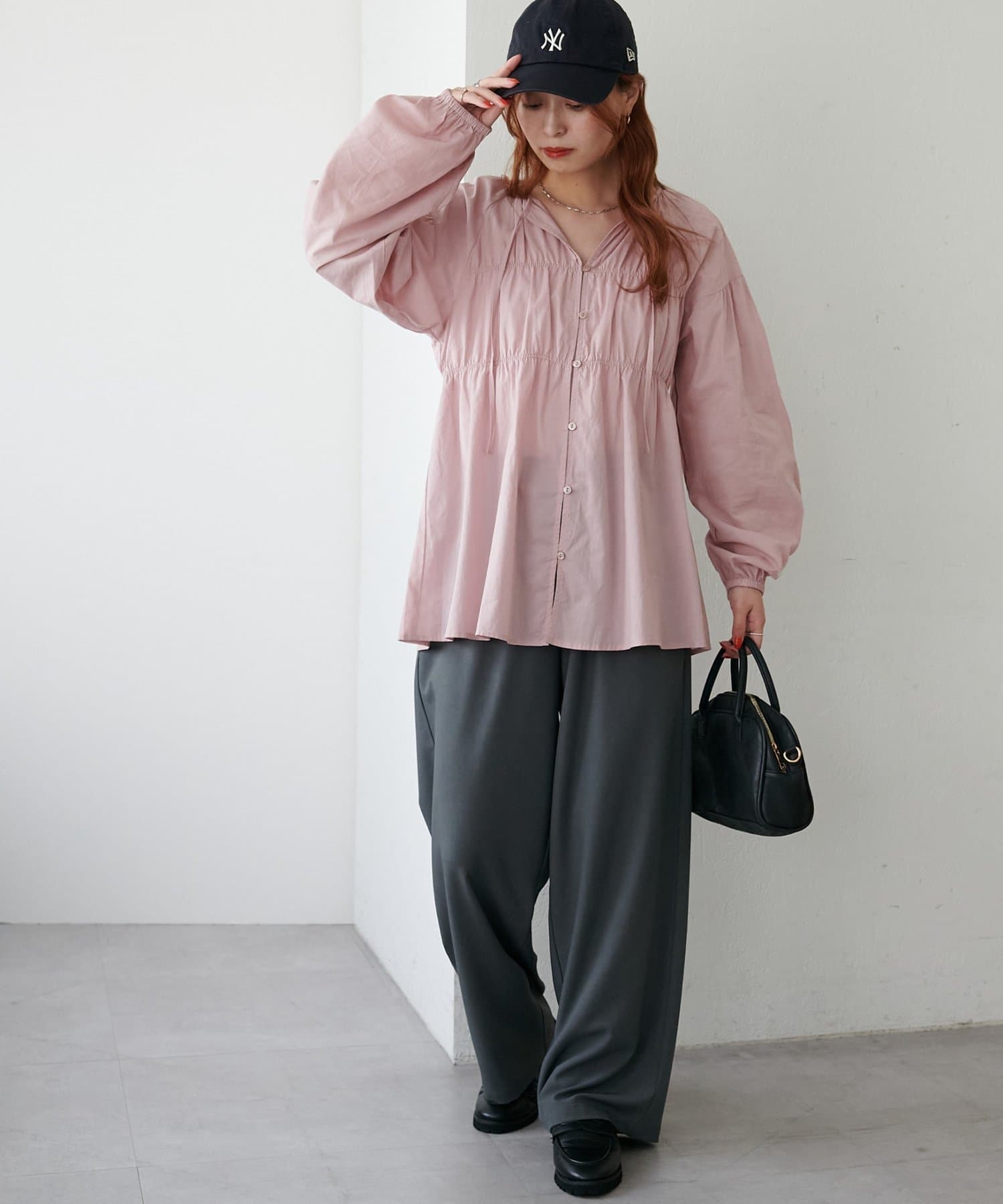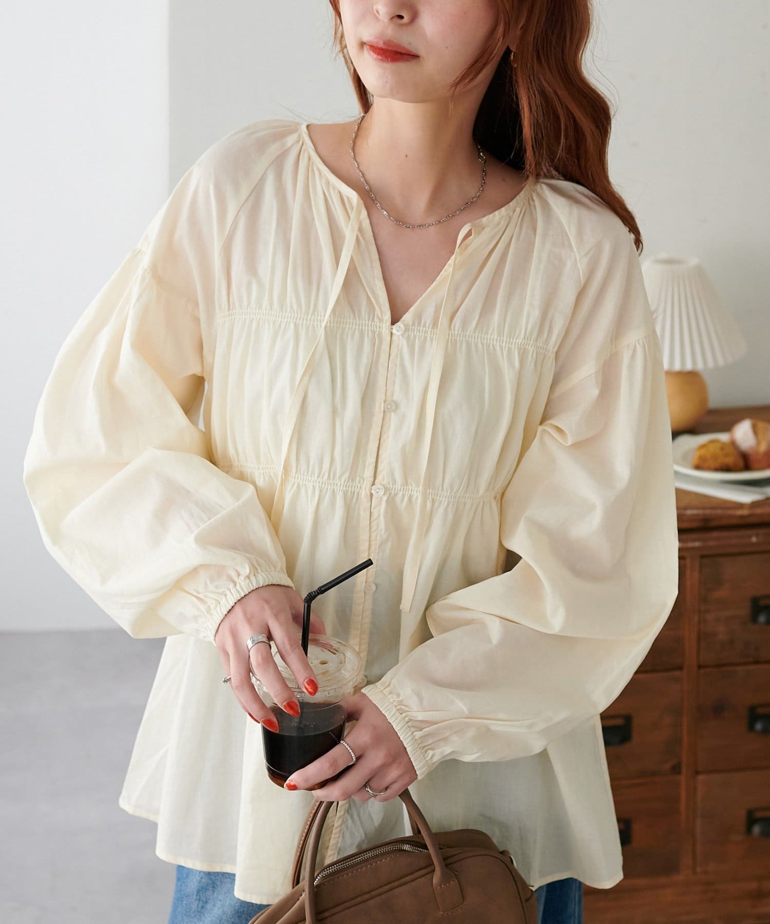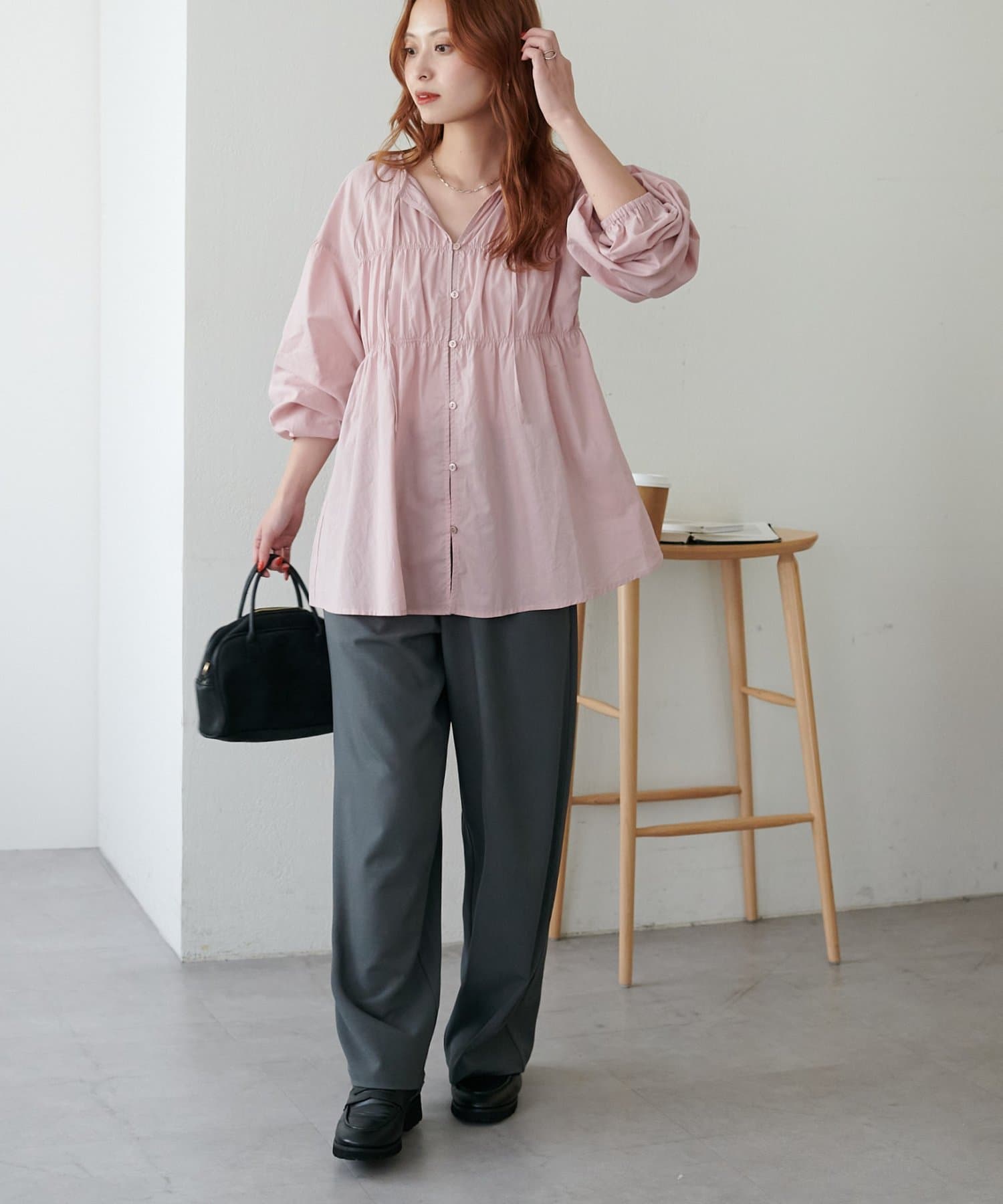 ギャザー前開きブラウス《WEB限定カラーあり》