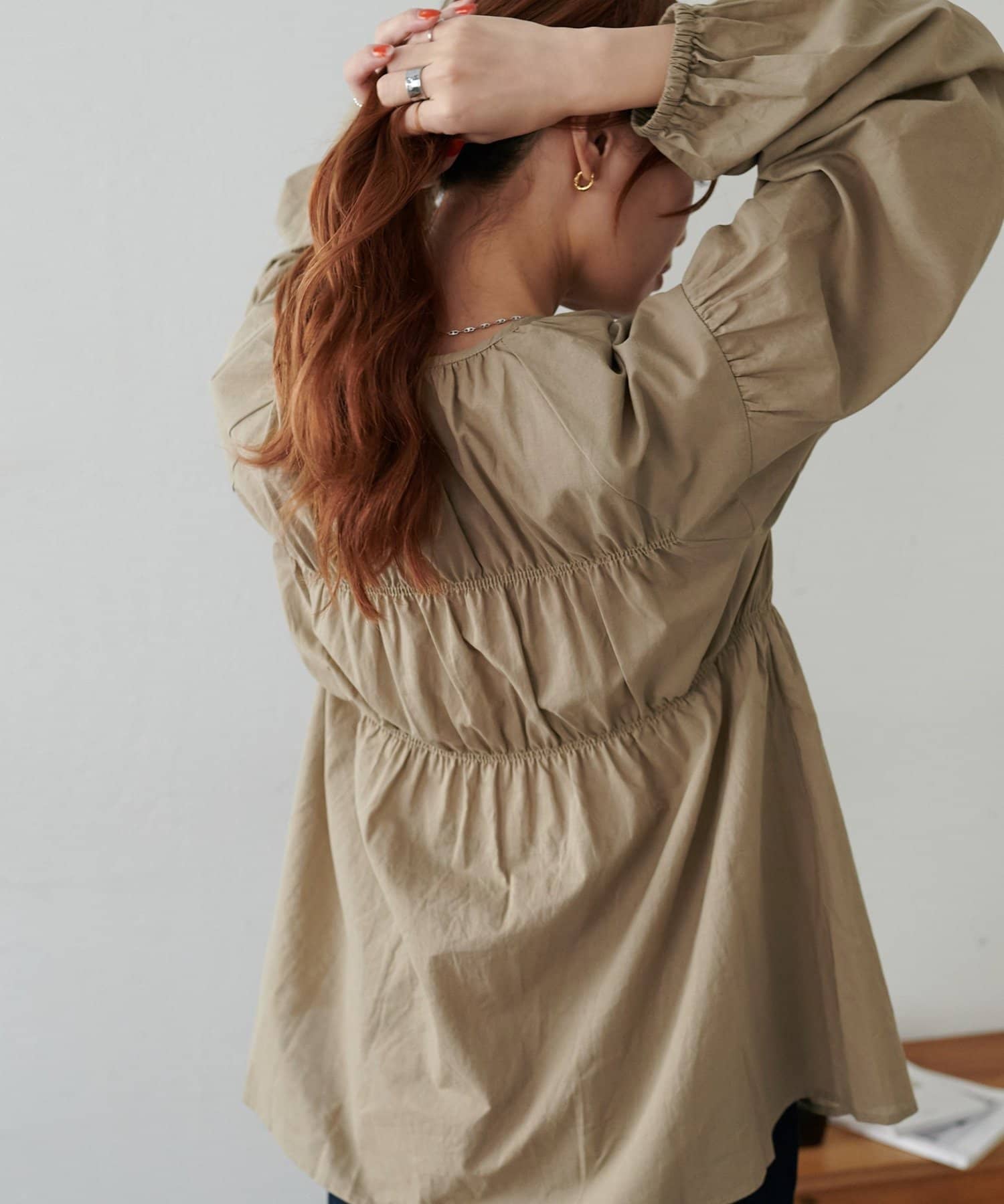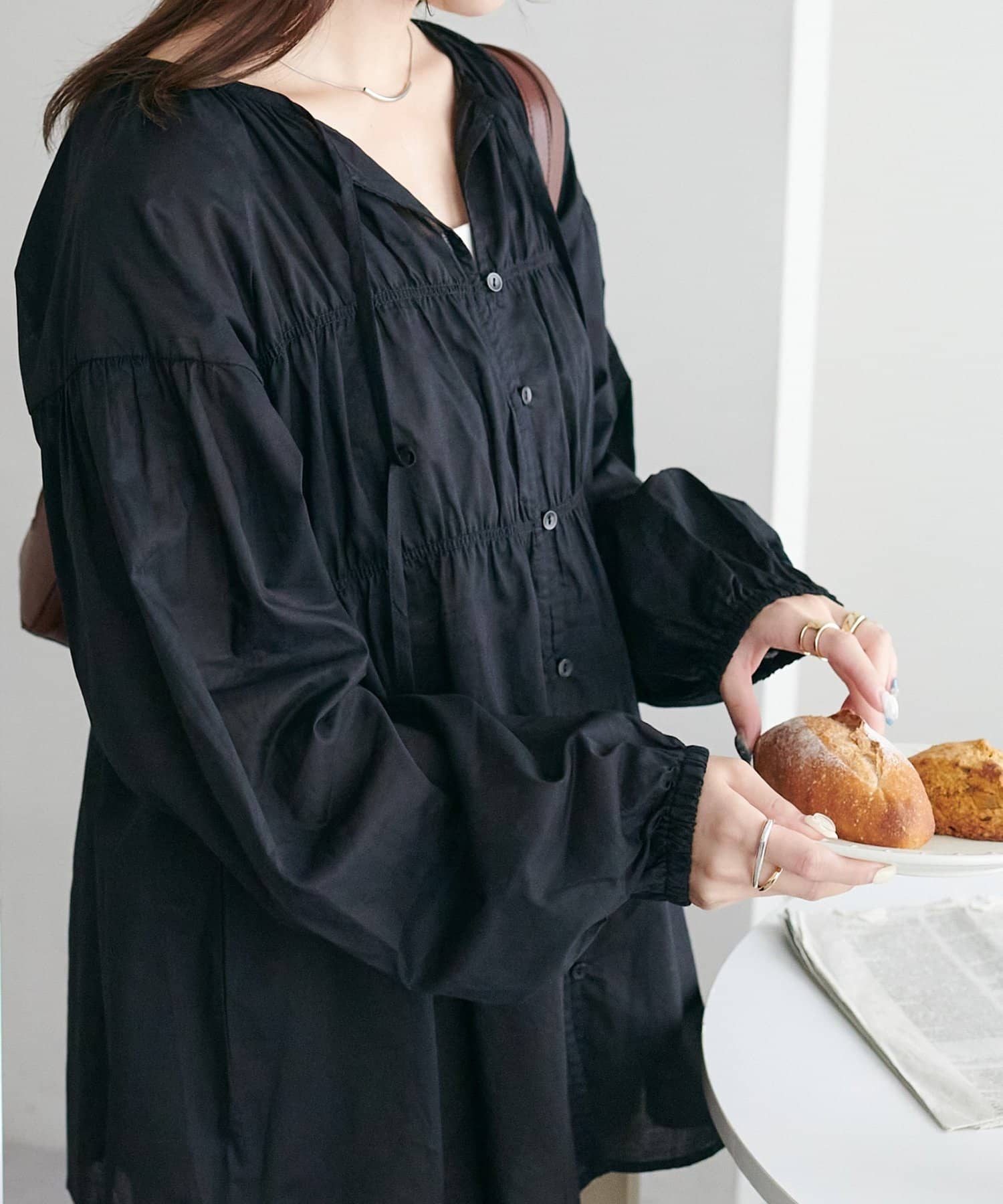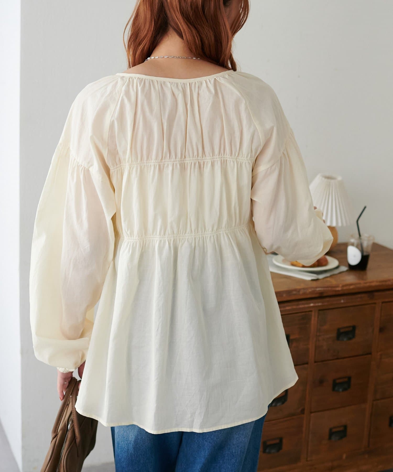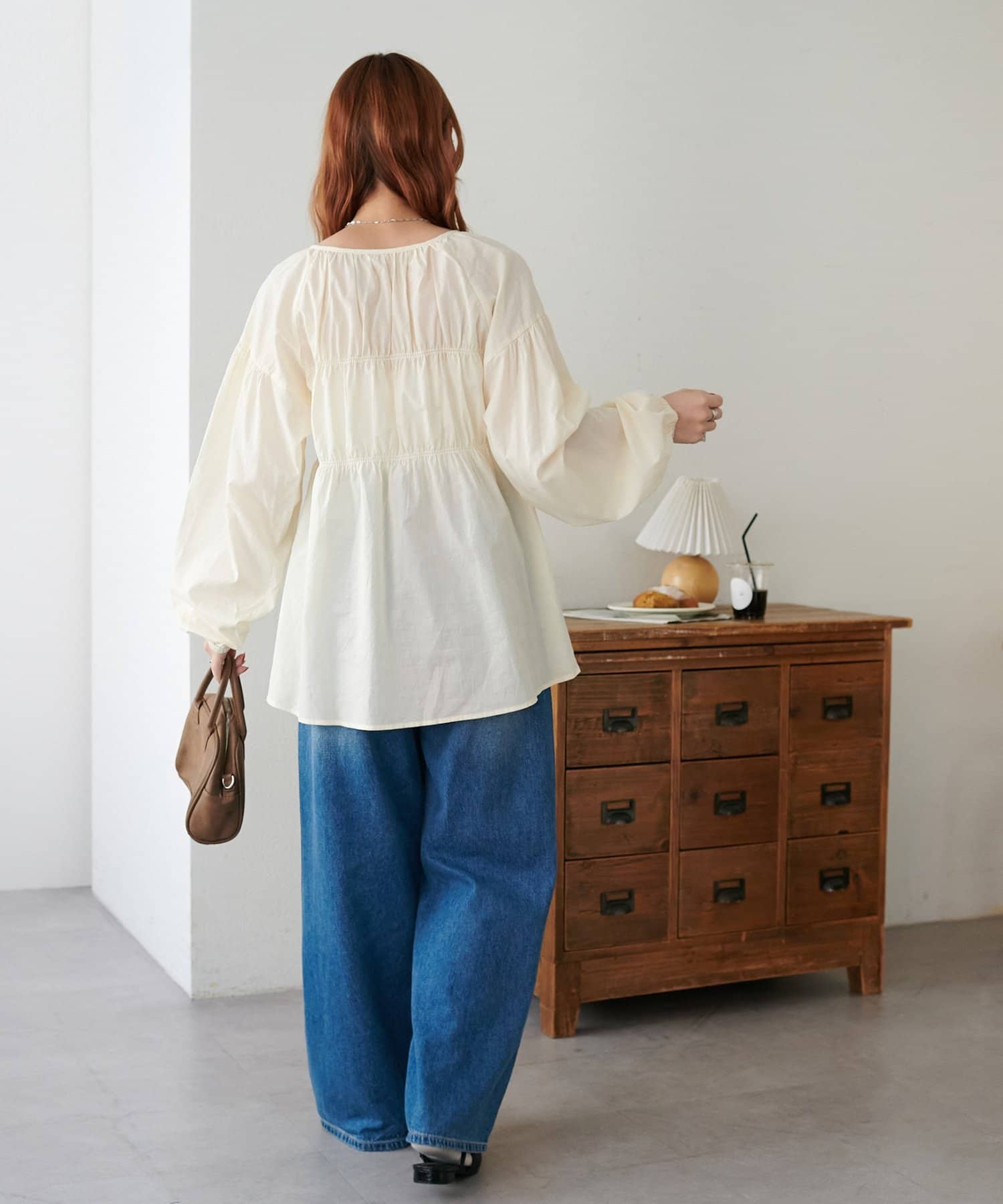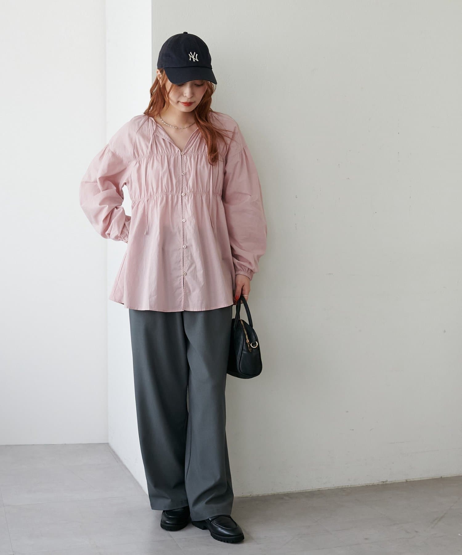 ギャザー前開きブラウス《WEB限定カラーあり》