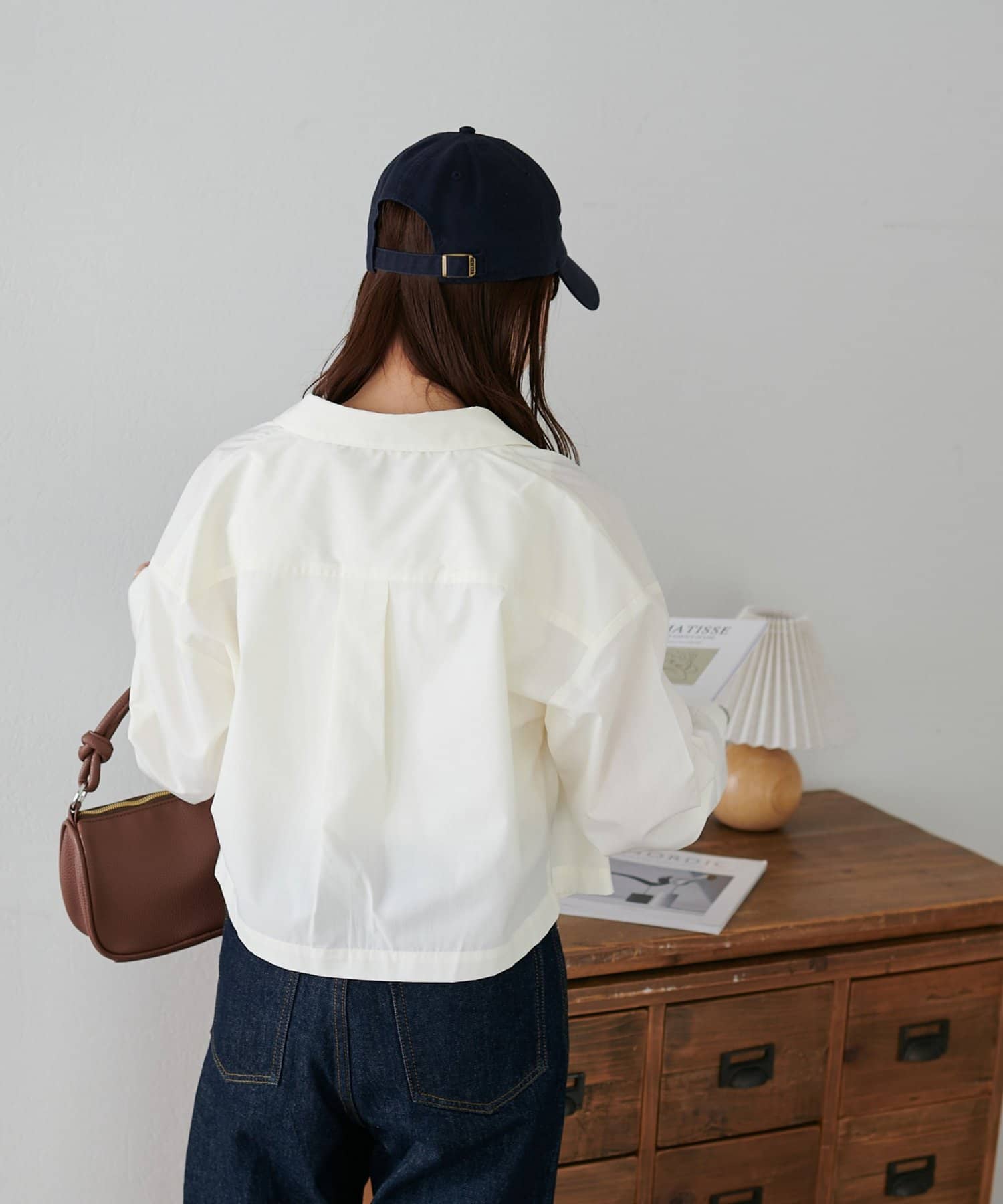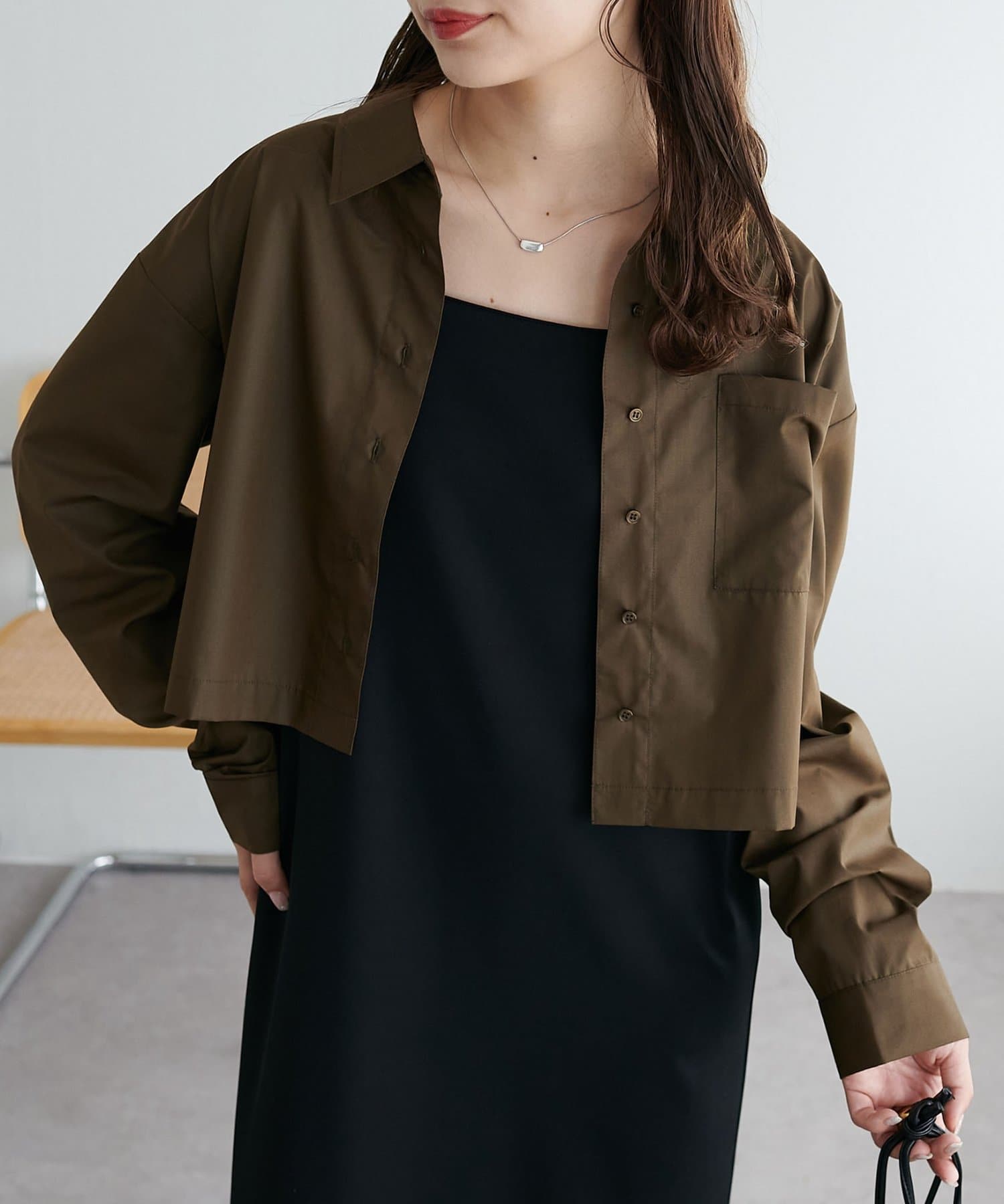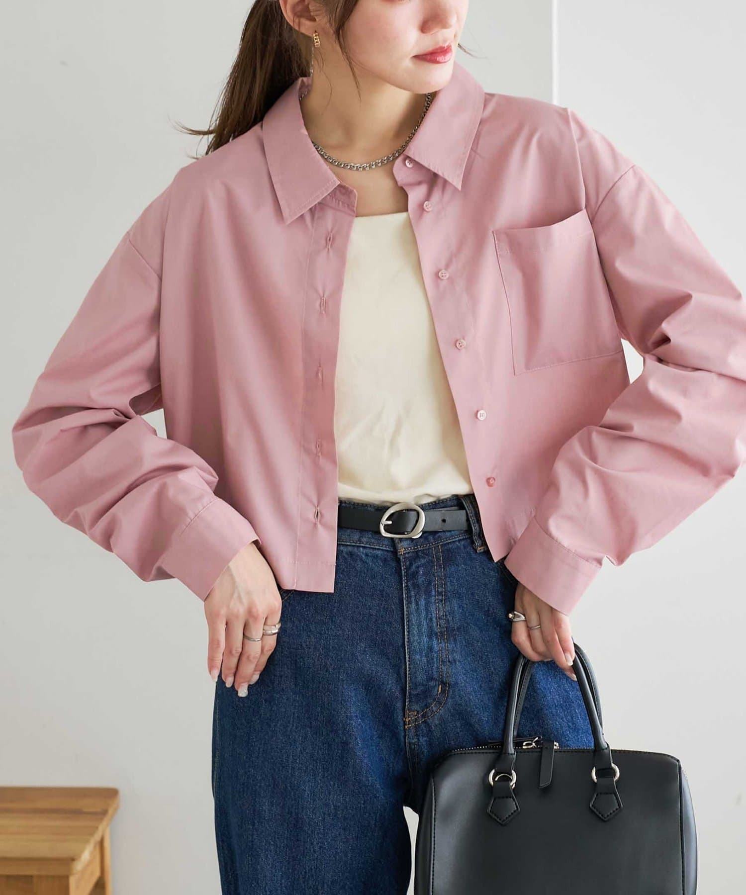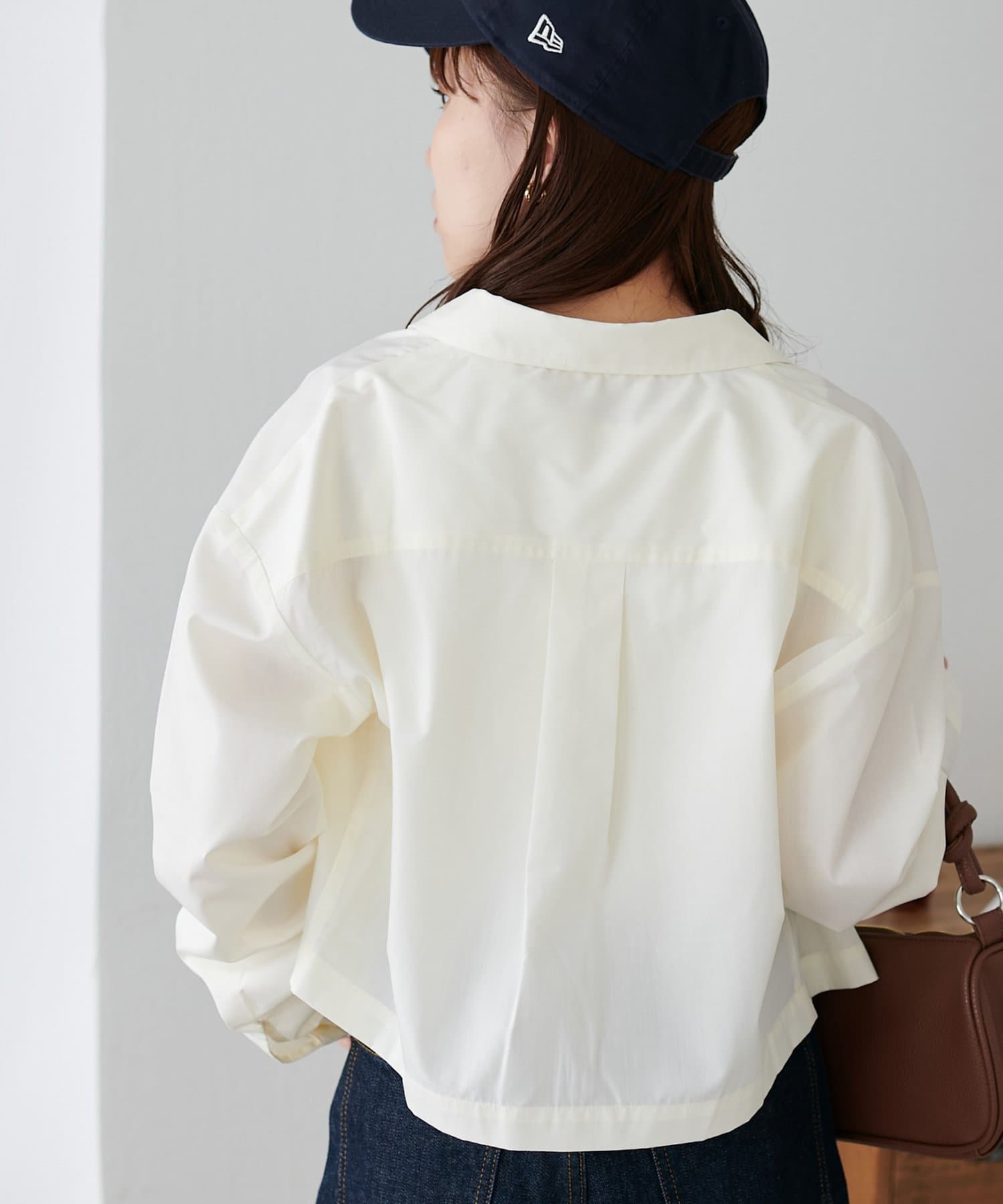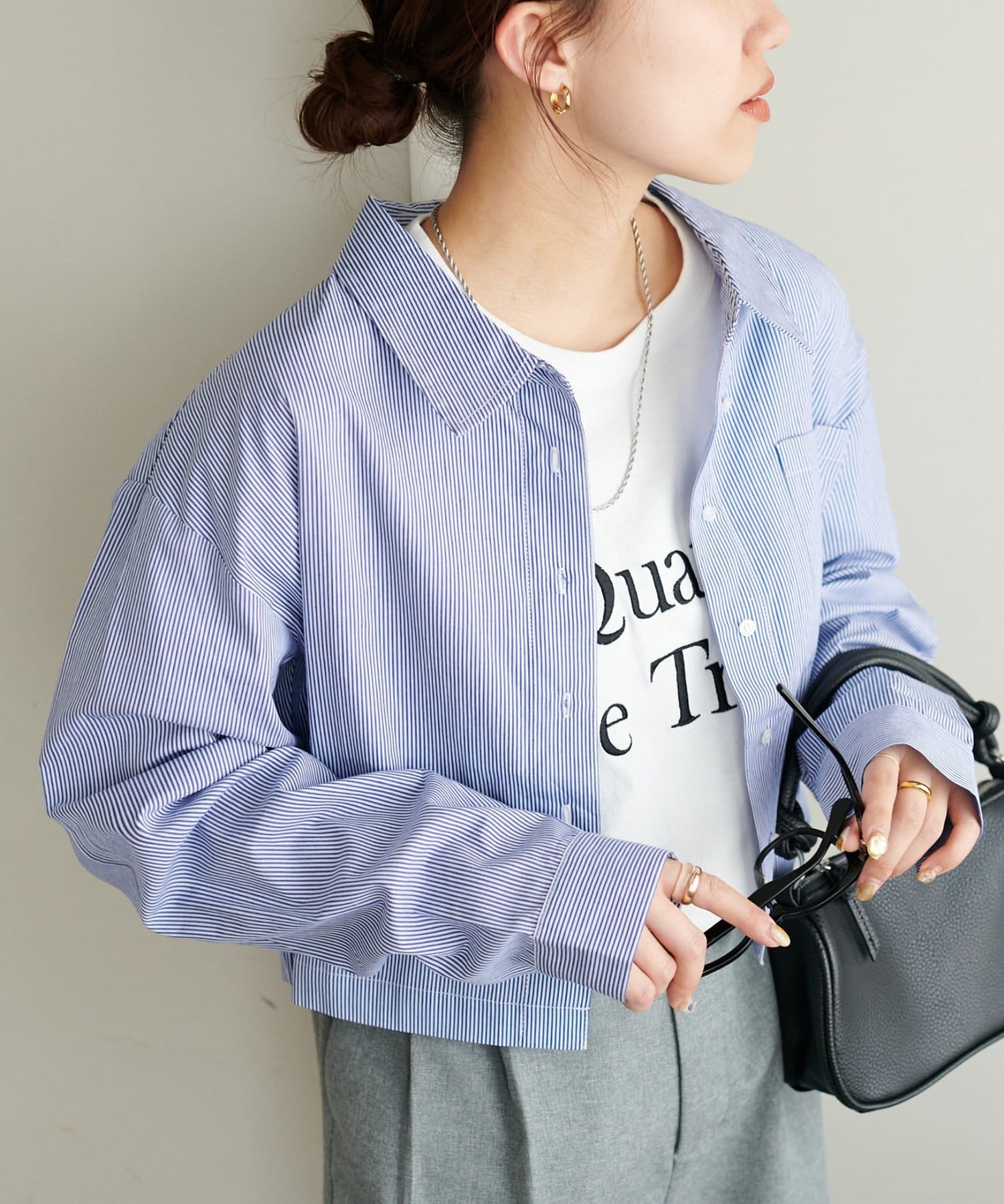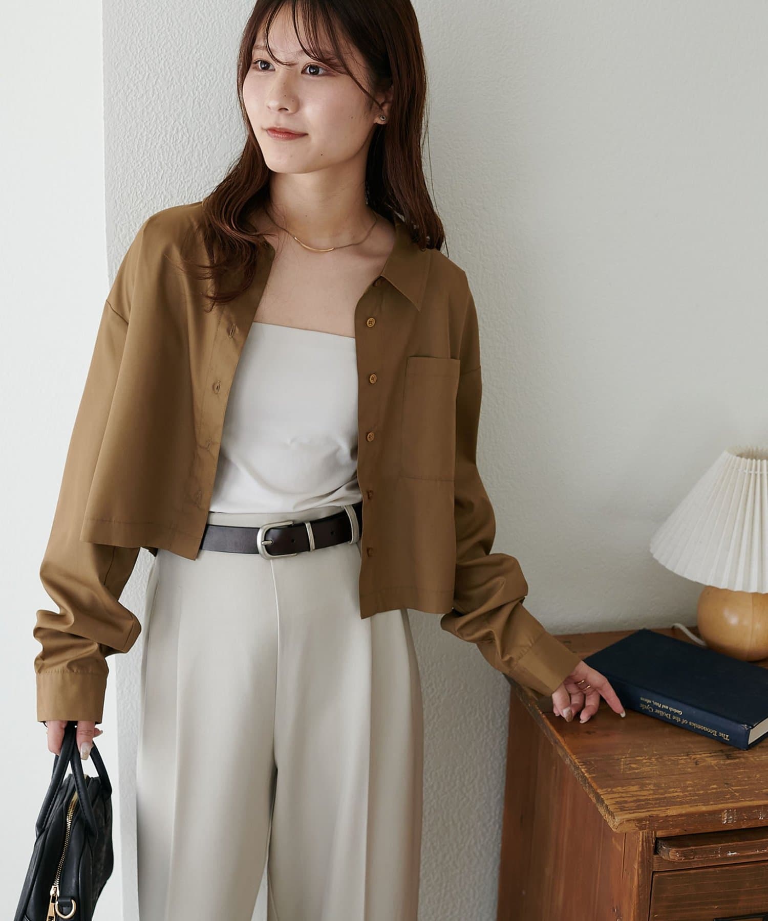 ・通年で着られるクロップド丈シャツ、程よくハリ感のある素材使用