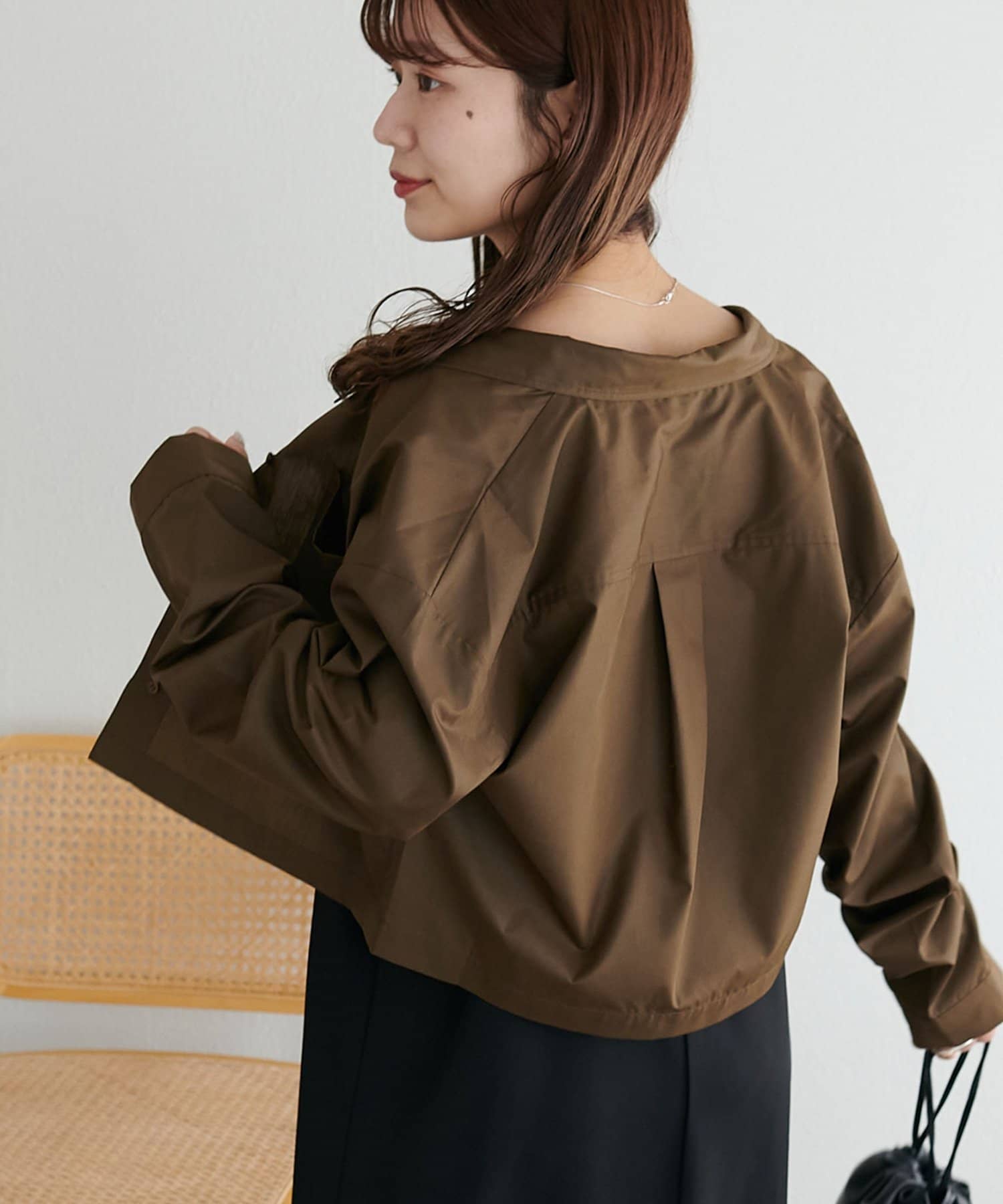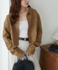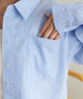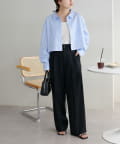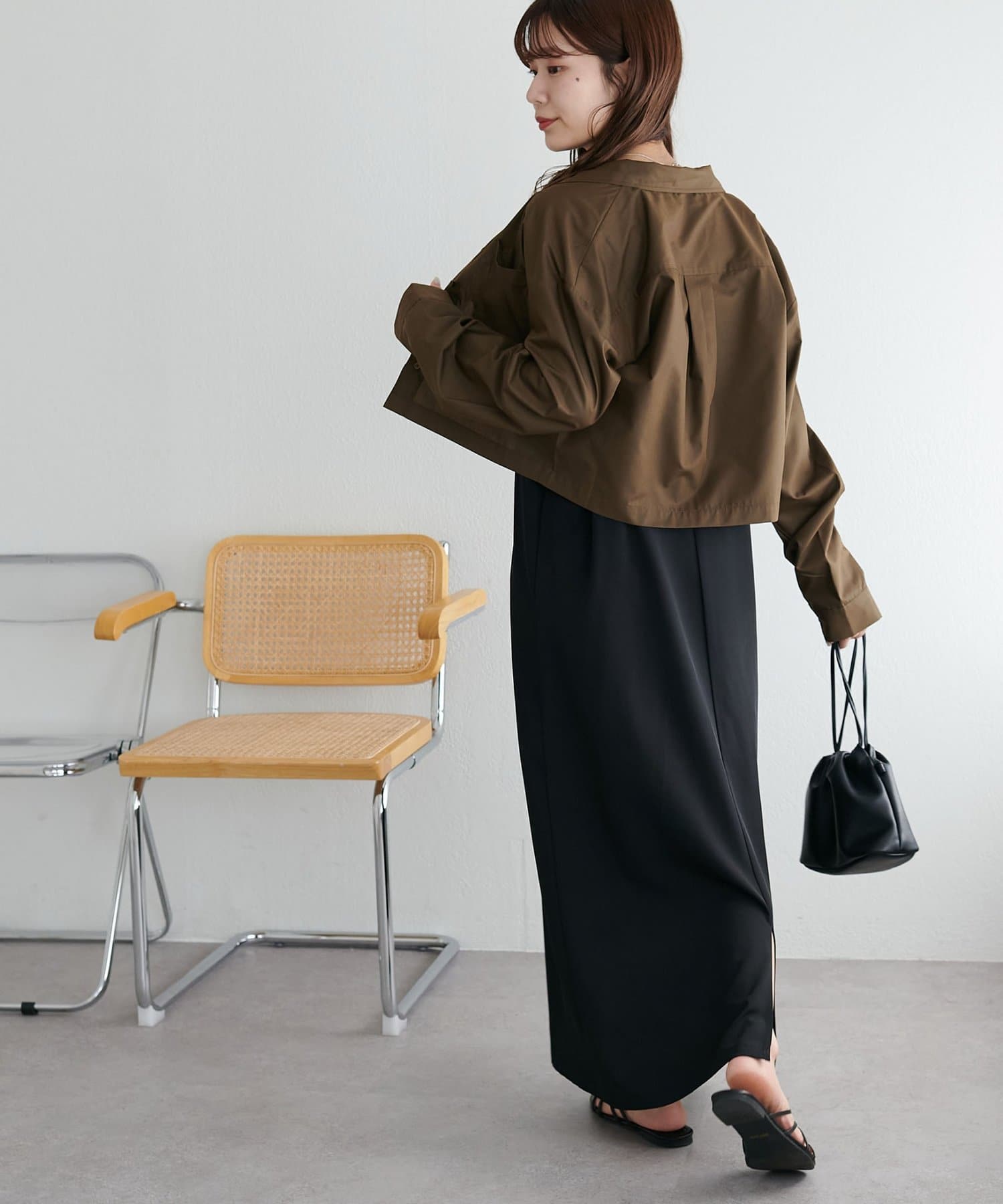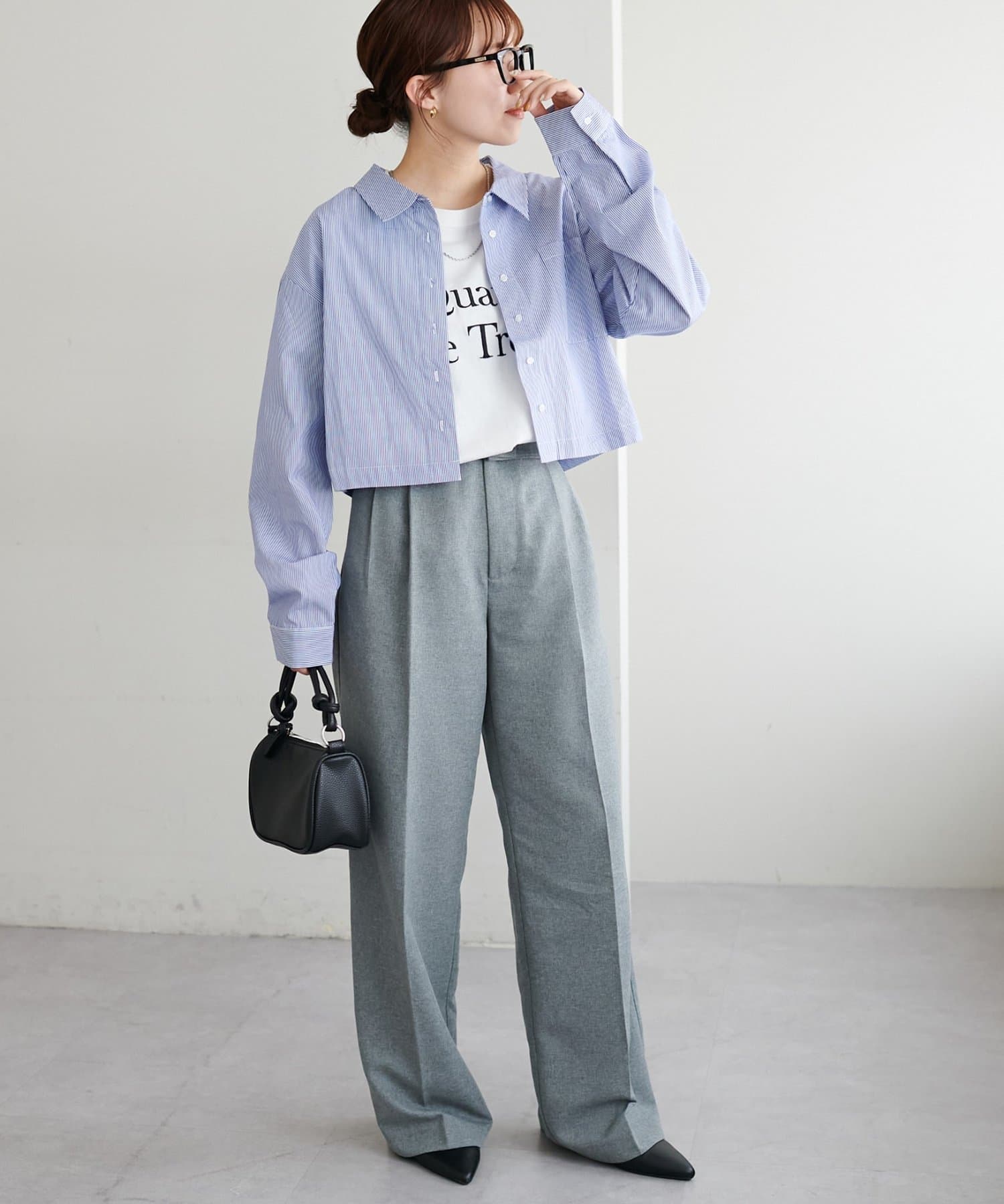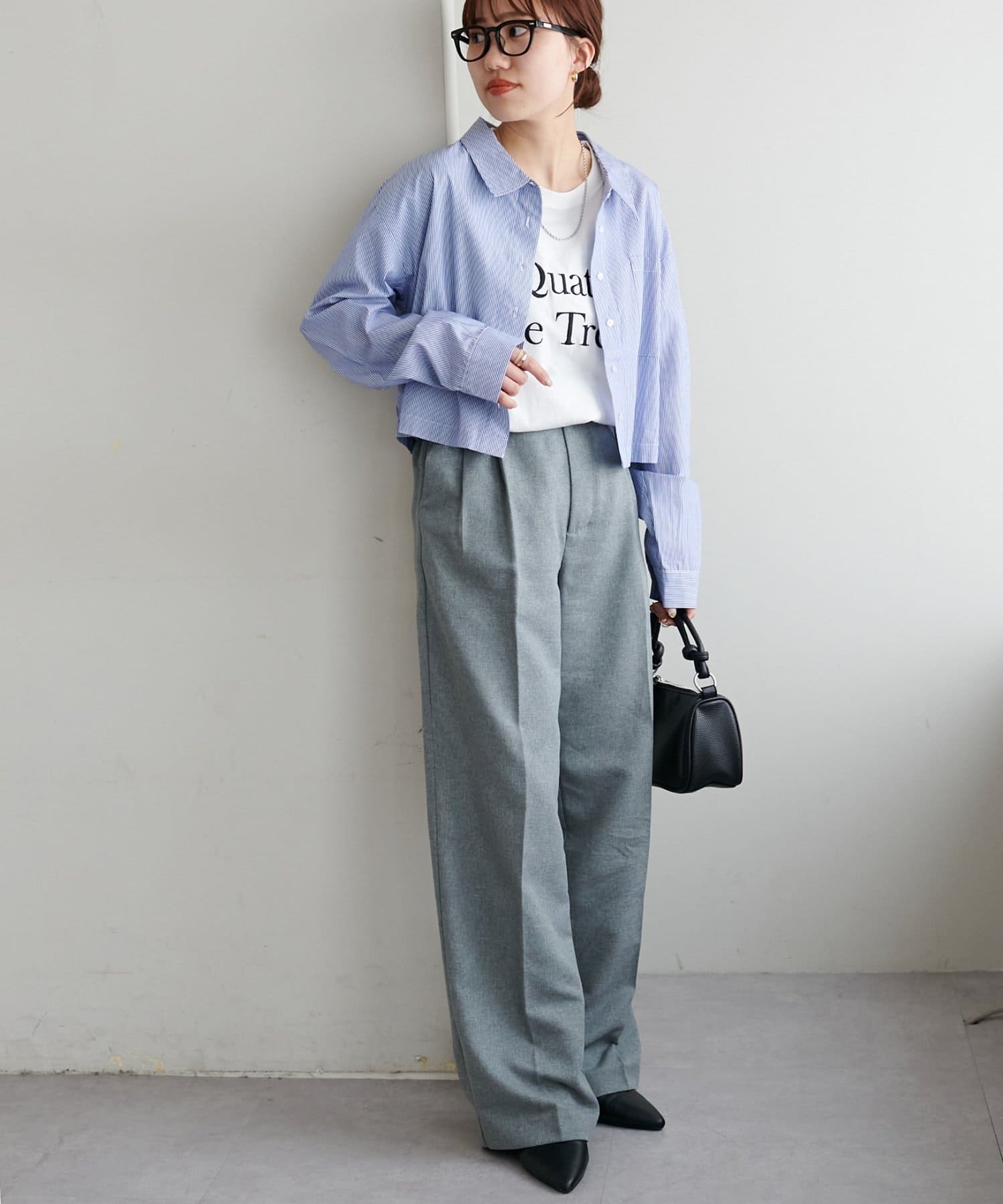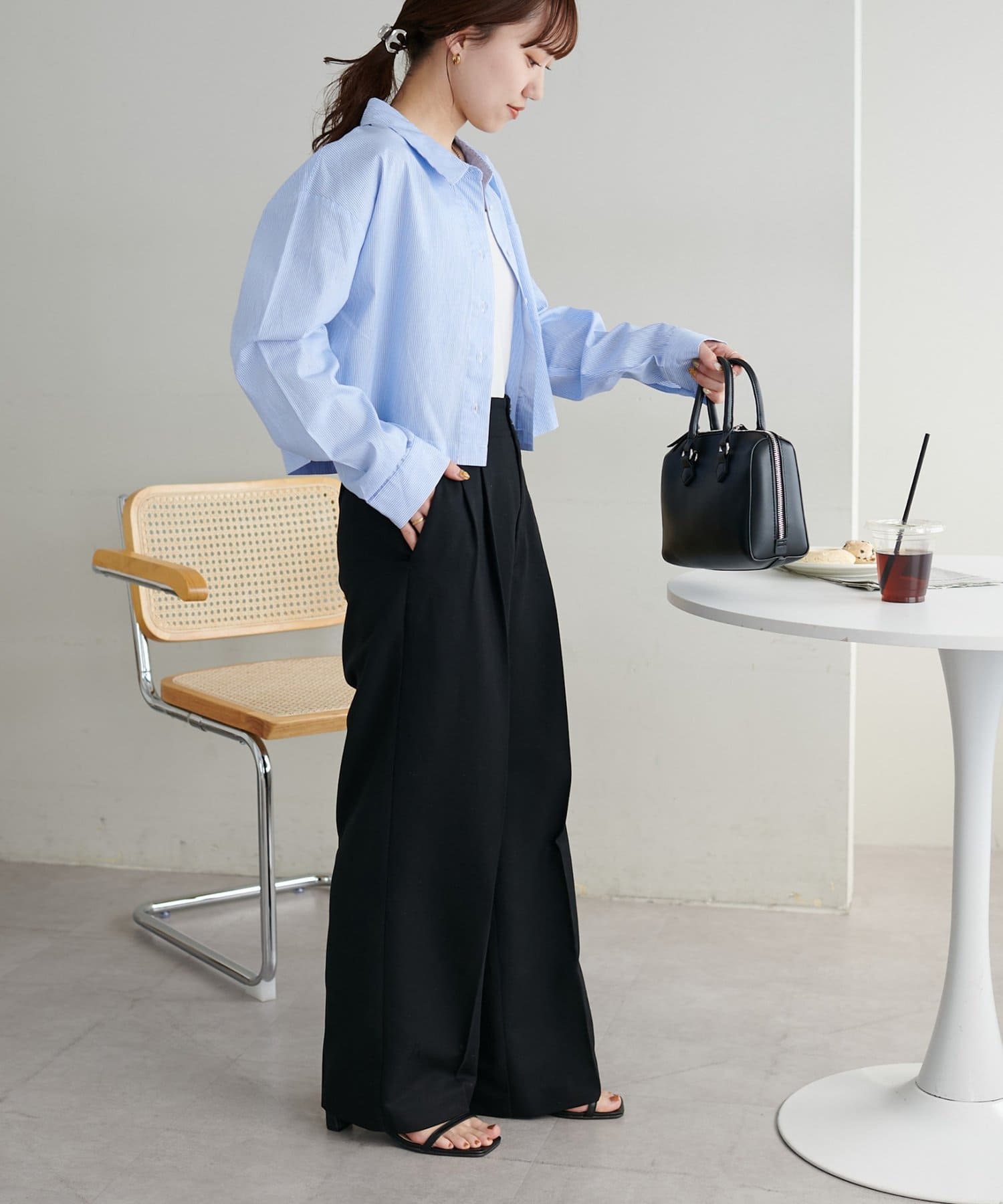 ・通年で着られるクロップド丈シャツ、程よくハリ感のある素材使用