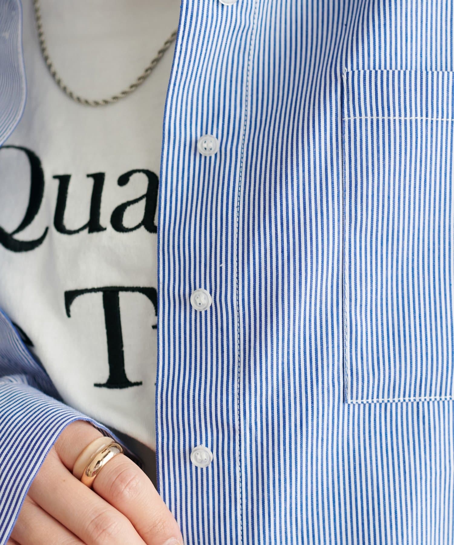 インナーにタンクトップやTシャツを合わせてラフに羽織るのはもちろん、フロントを閉じてトップス風にも着られます。