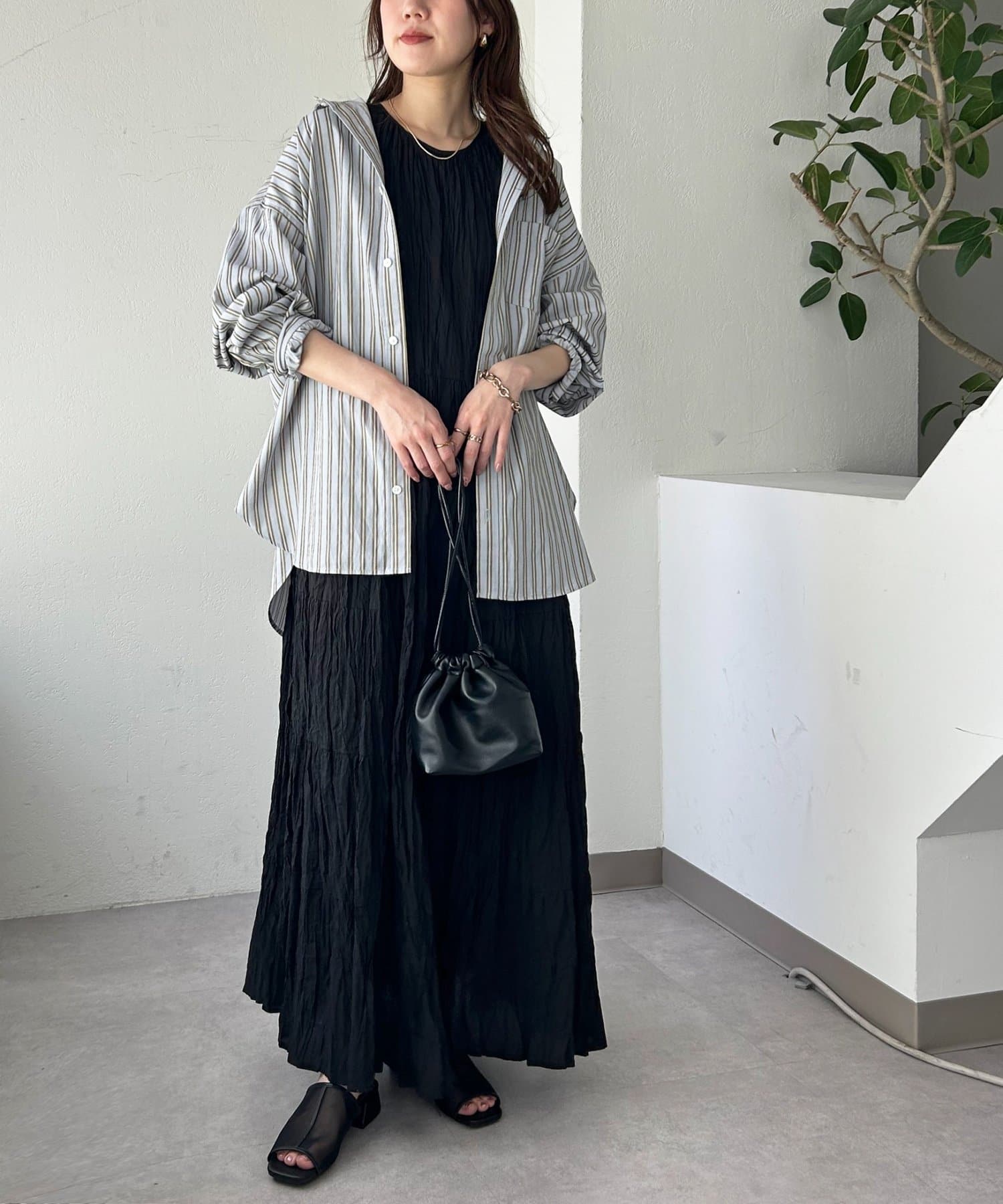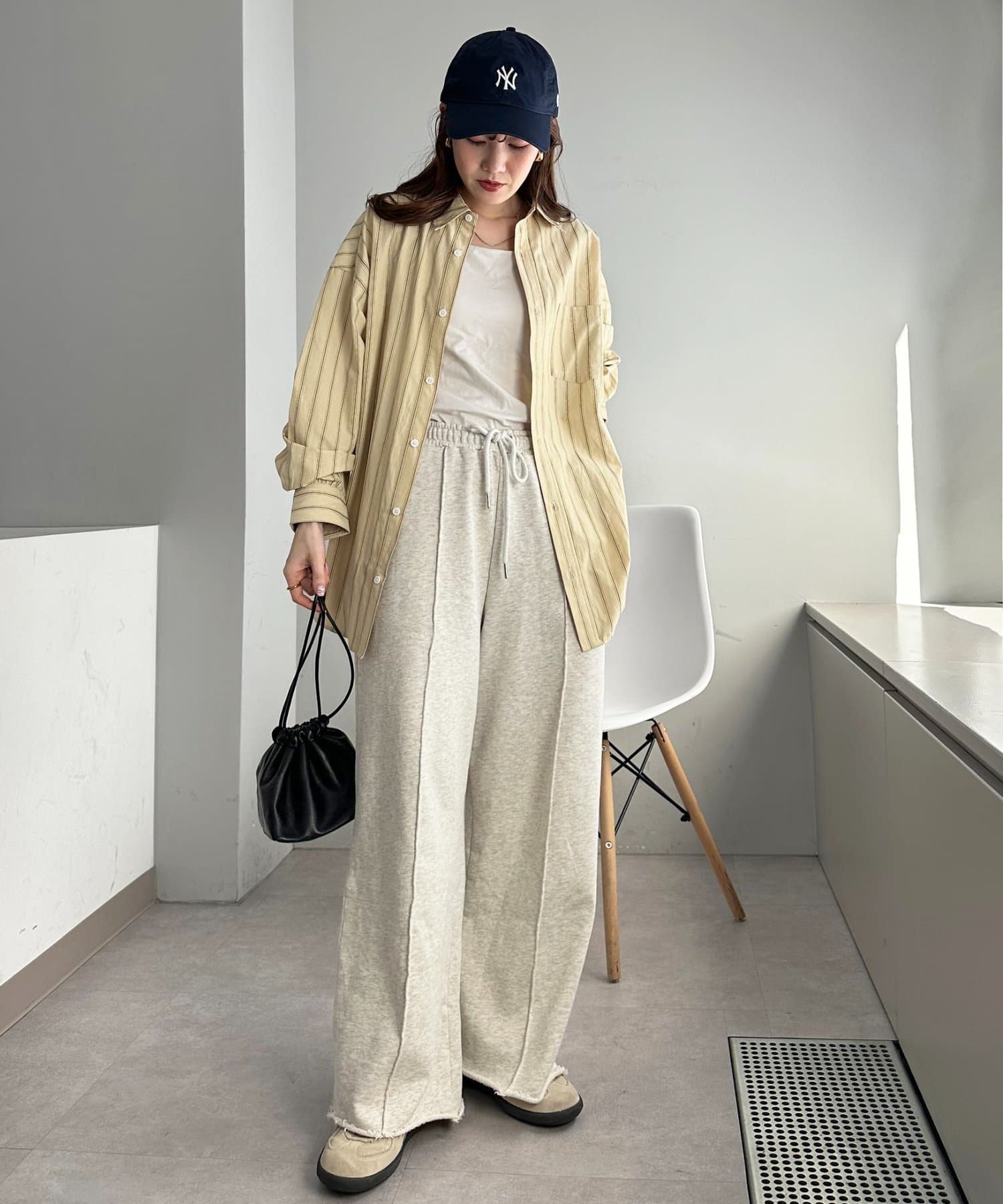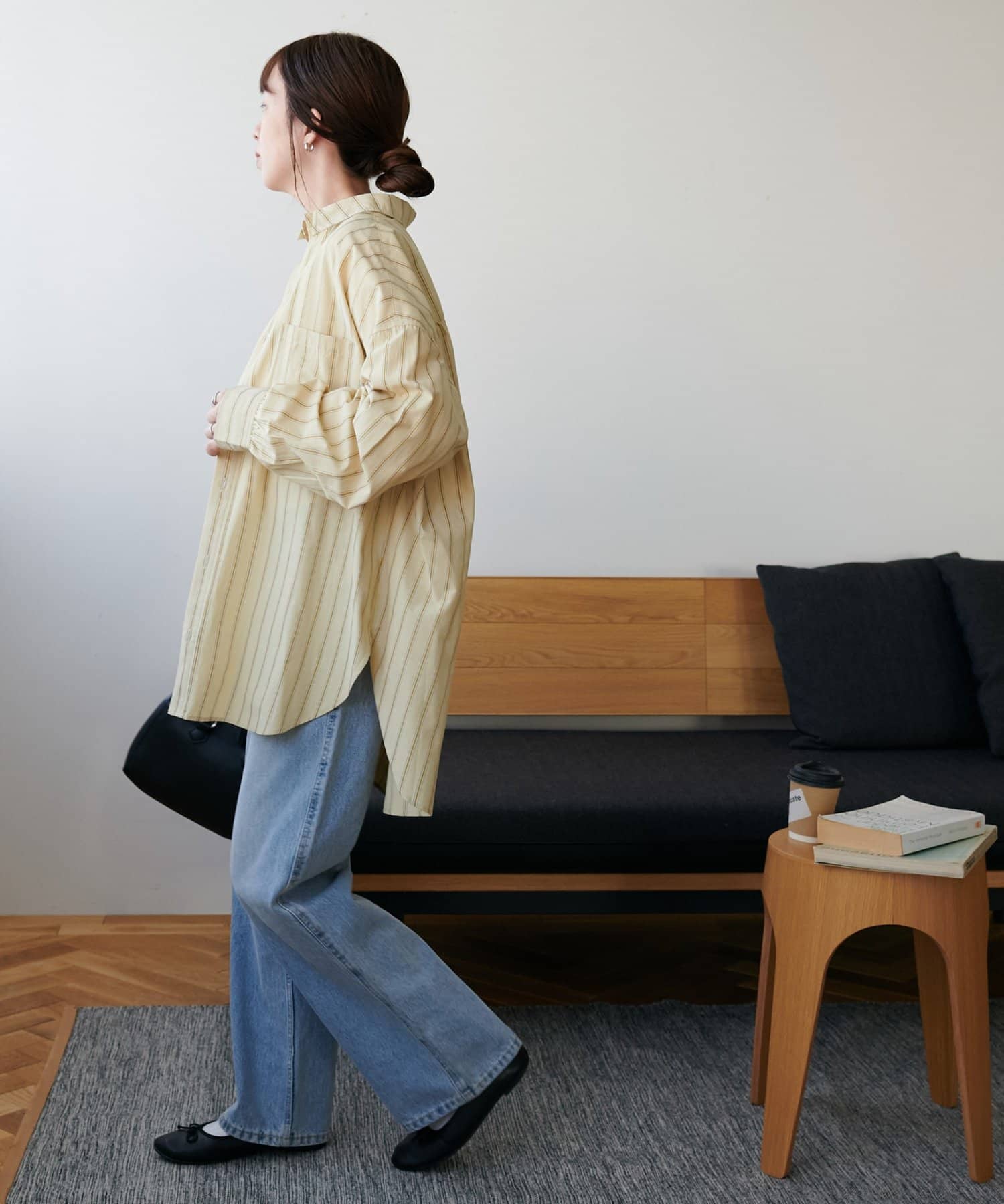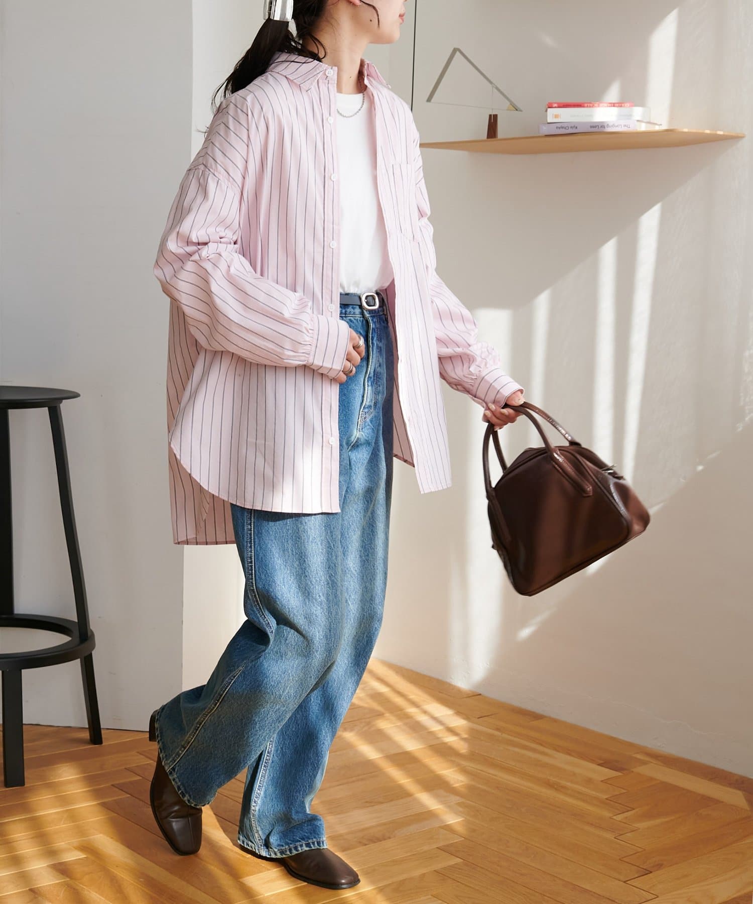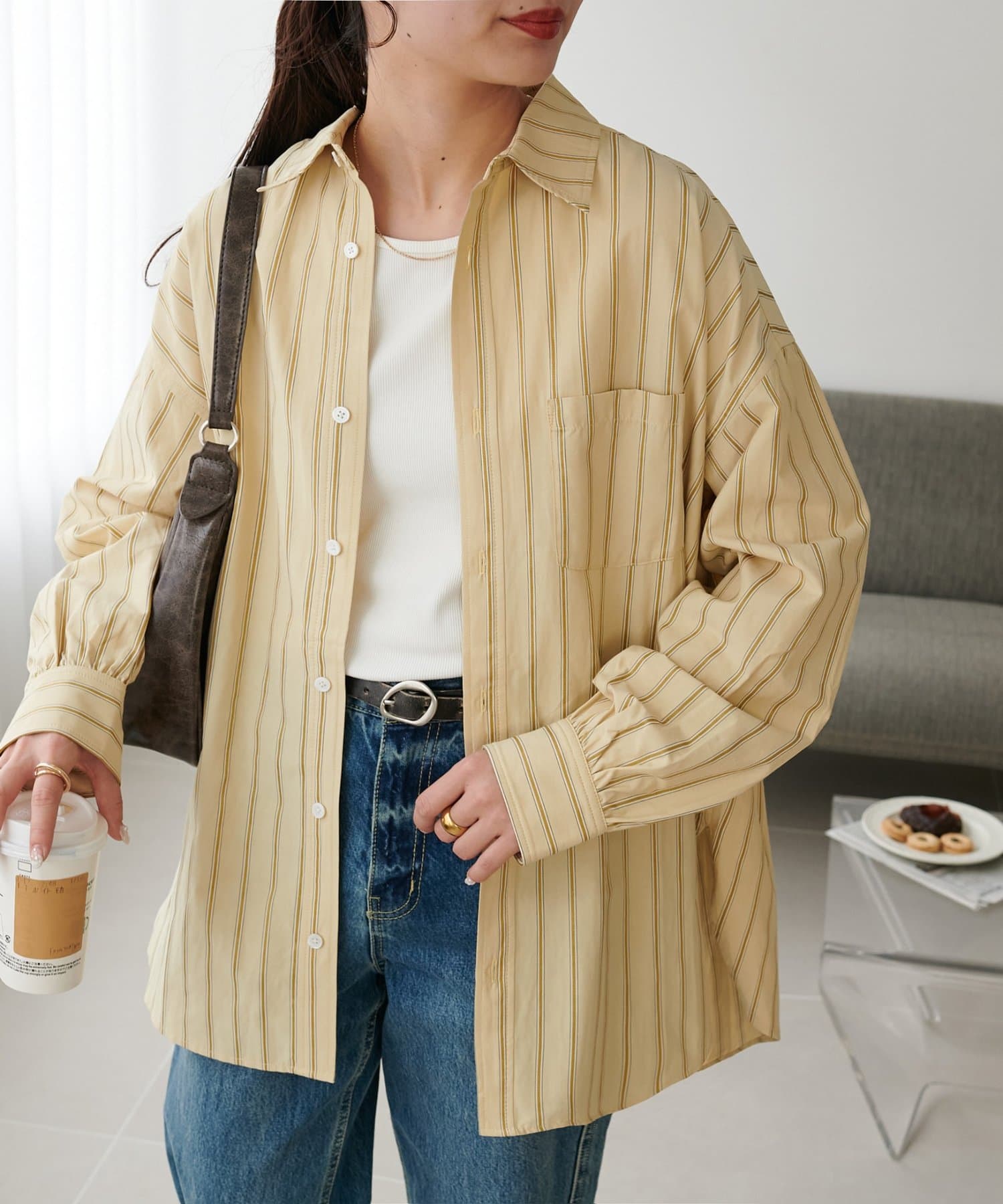 ストライプ柄が細身なので、オーバーシルエットですがどこかスッキリとした印象も与えてくれます。