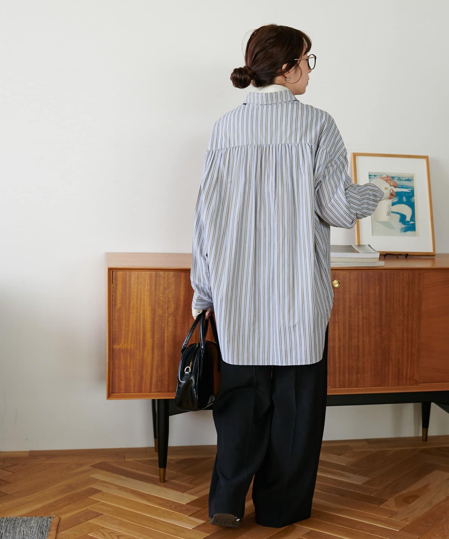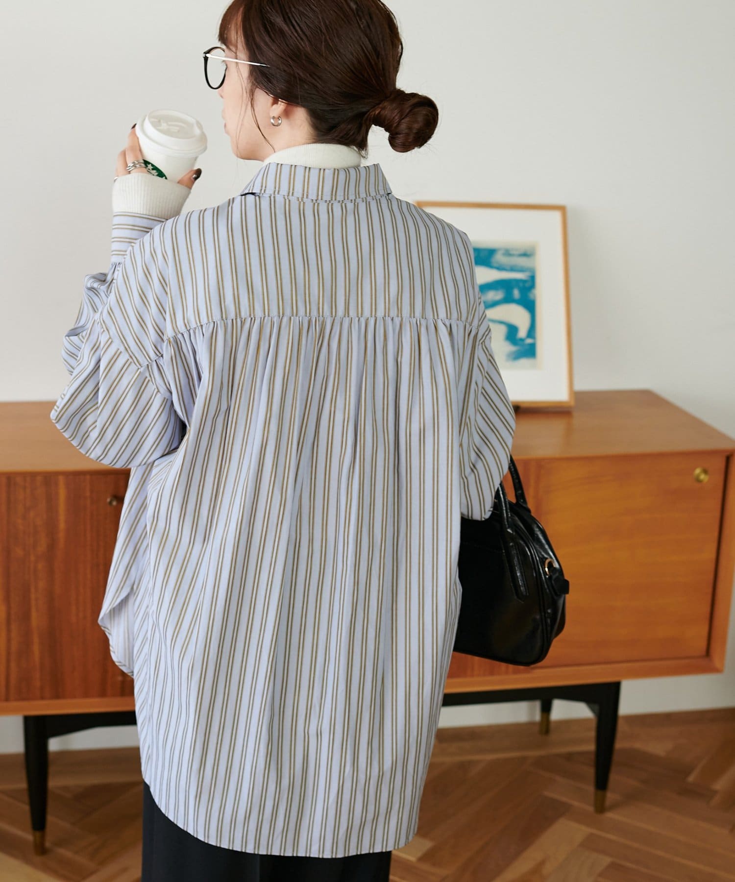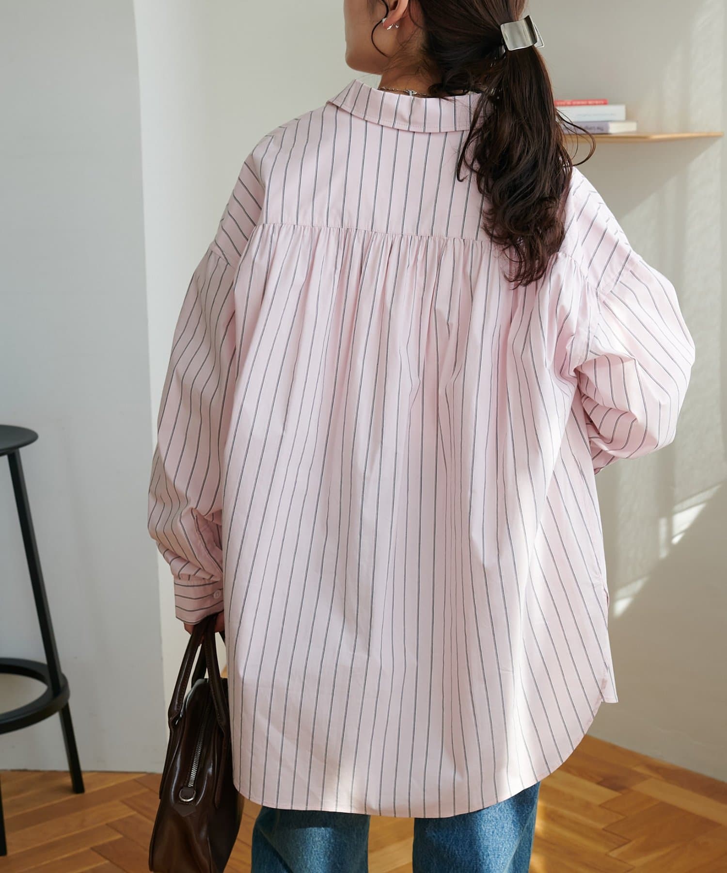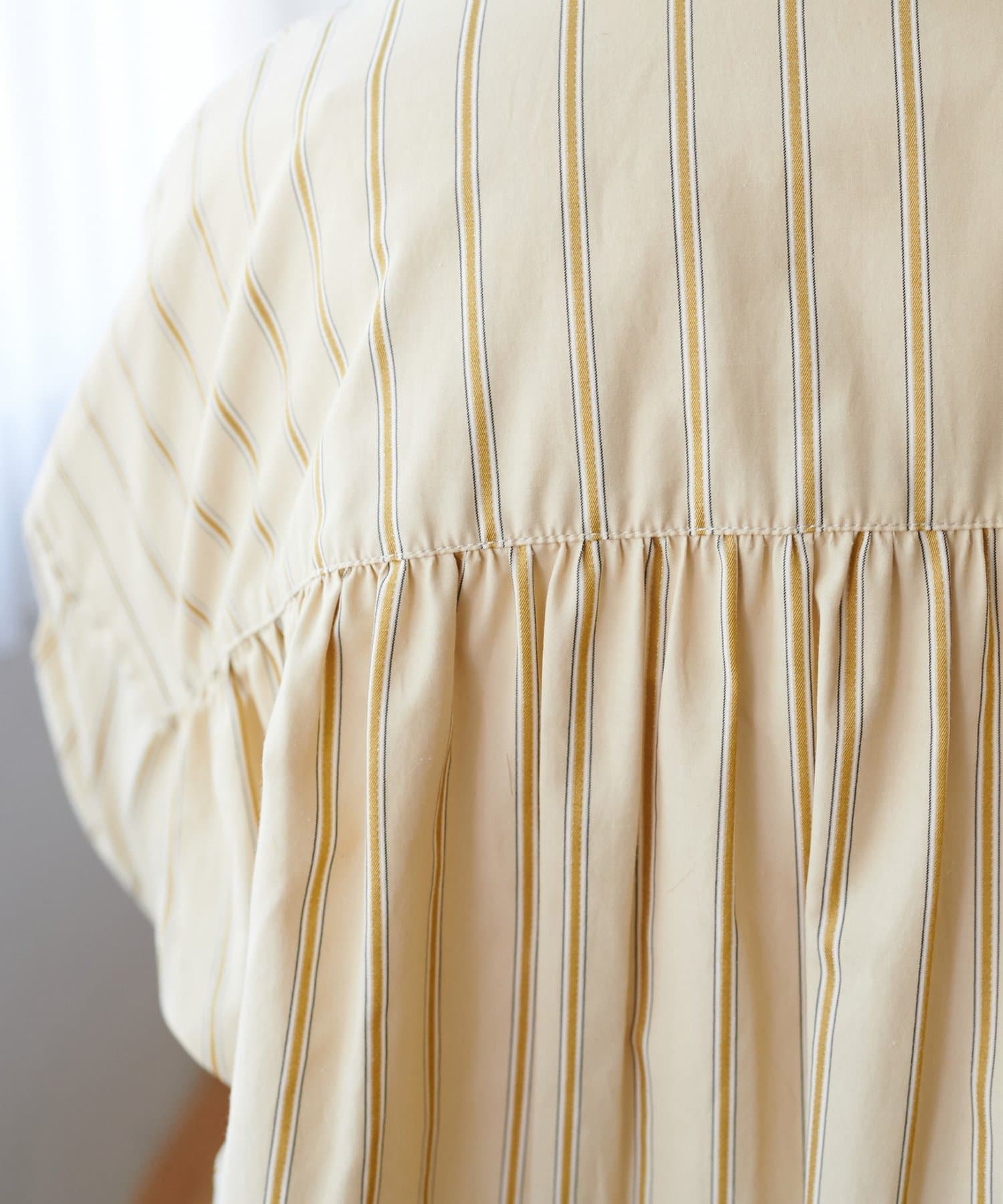 ・背中のギャザーで後ろ姿もポイントになるシャツ