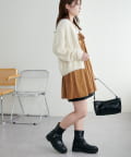158cmスタッフ:太ももにかかるくらいの丈感で、バランスよく着られます。広がりすぎないAラインなので幼く見えず、大人可愛い印象に。インナー次第で甘さを調整できるので、カジュアルからフェミニンまで幅広いコーディネートに合わせやすいです。