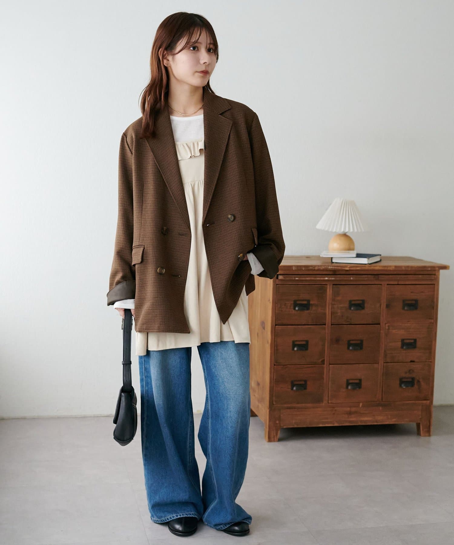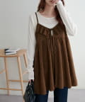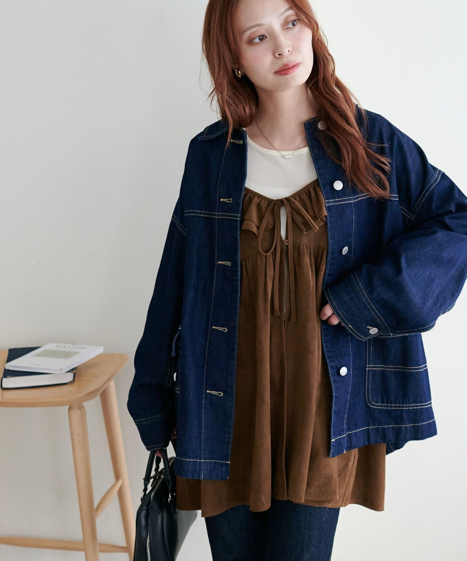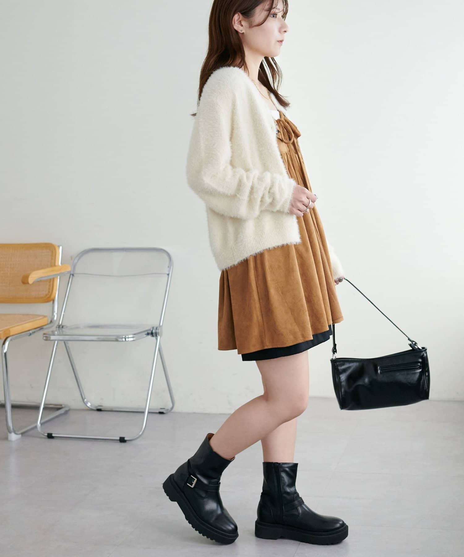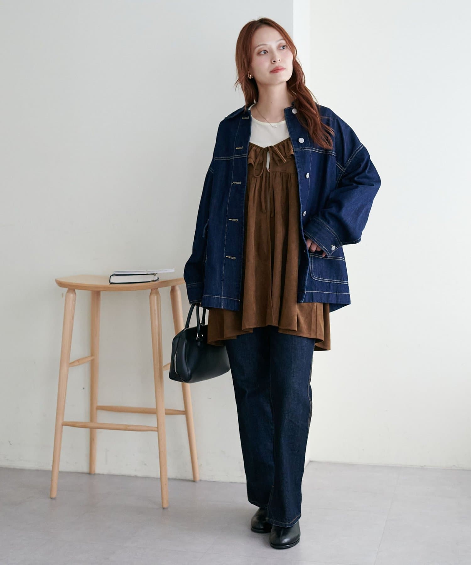 胸元にはフリルとリボンをあしらい、甘さを程よくプラスしました。前後2WAY仕様なので、気分に合わせて雰囲気を変えて楽しめるのも嬉しいポイント◎インナー次第でロングシーズン着回せる万能アイテムです。
