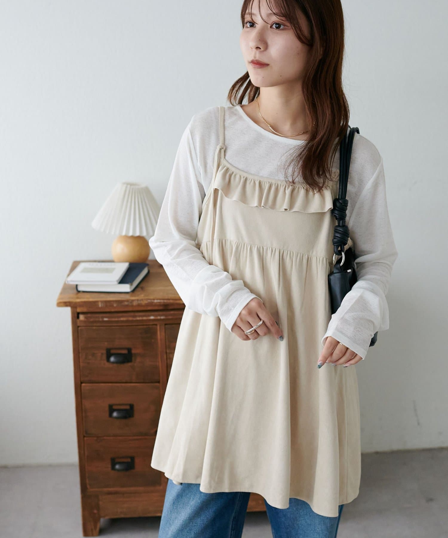 着こなし自在の2WAYデザイン。大人ガーリーなキャミチュニック