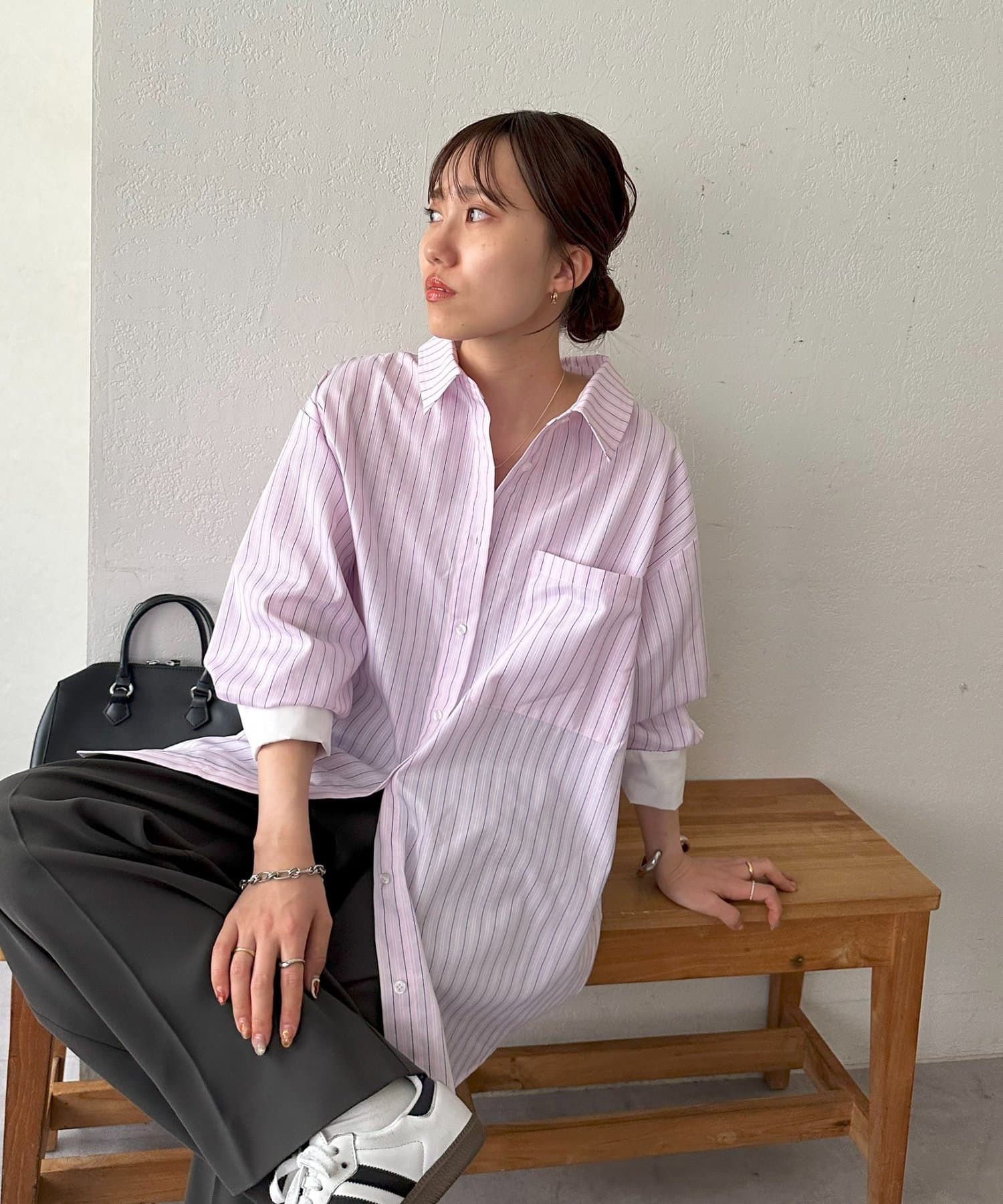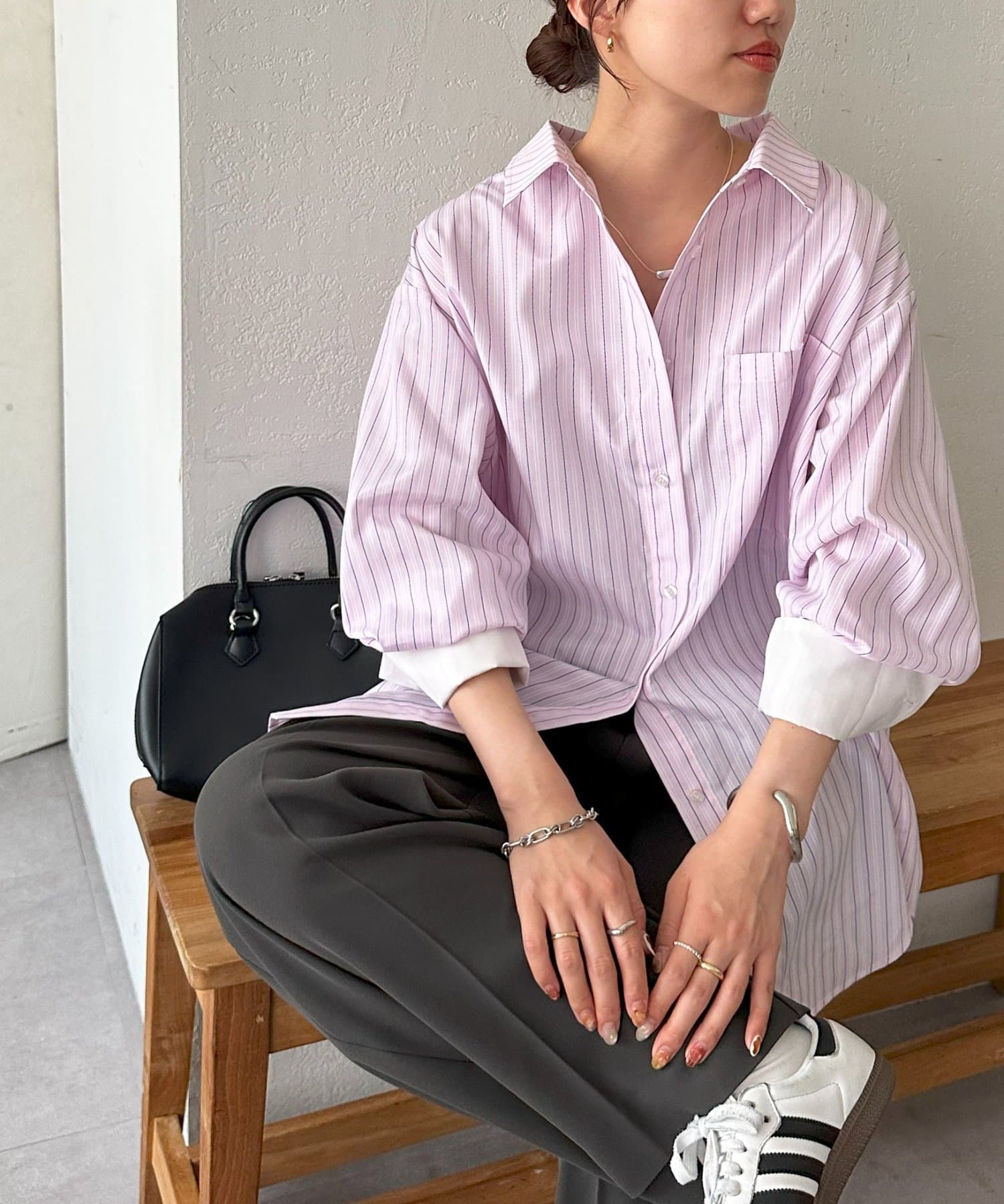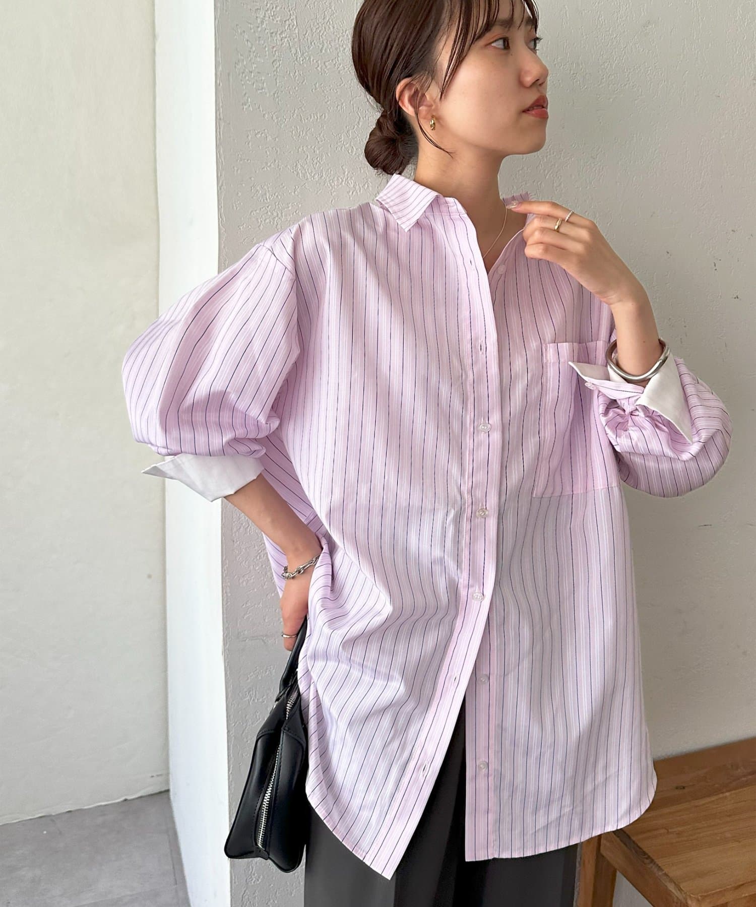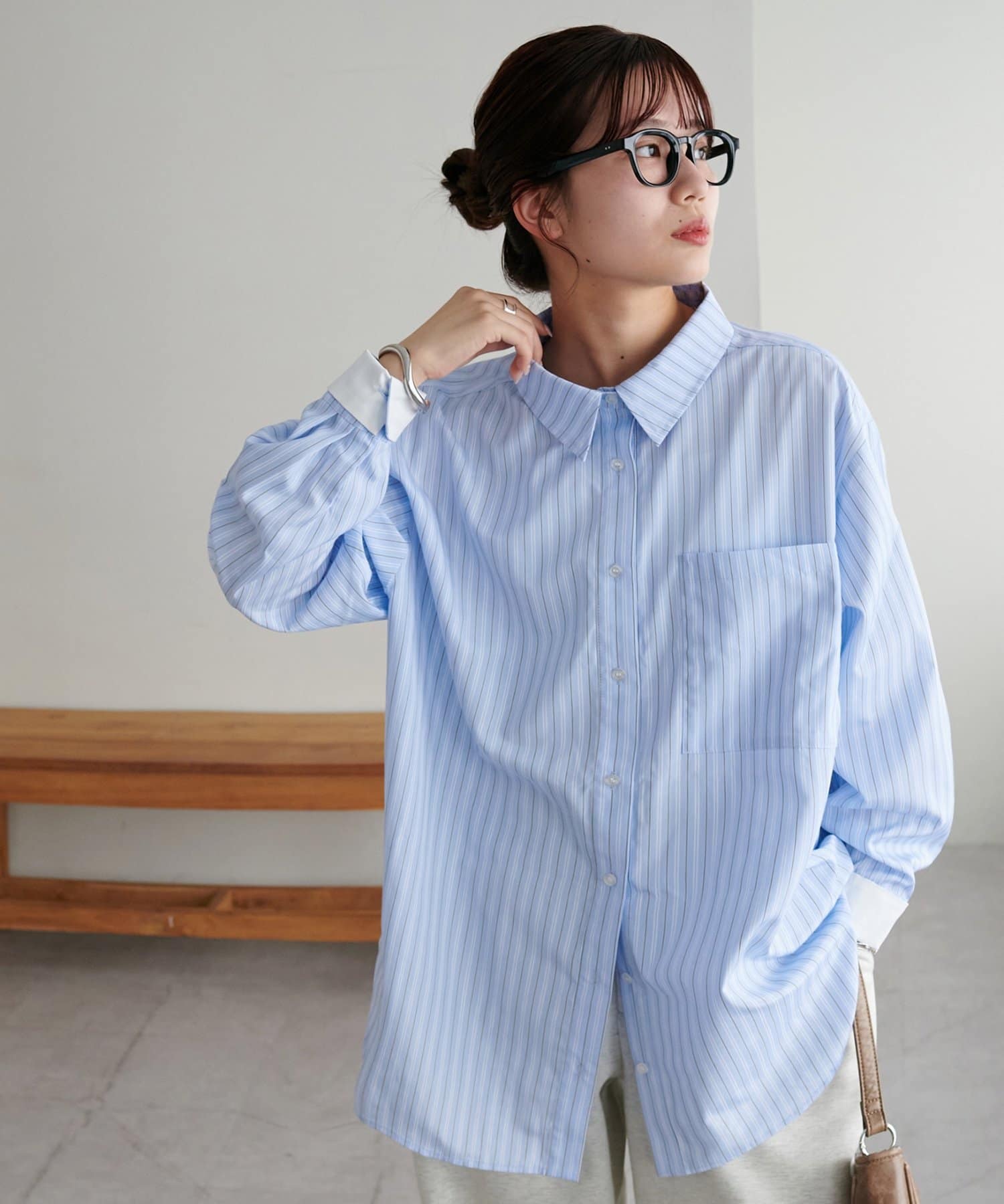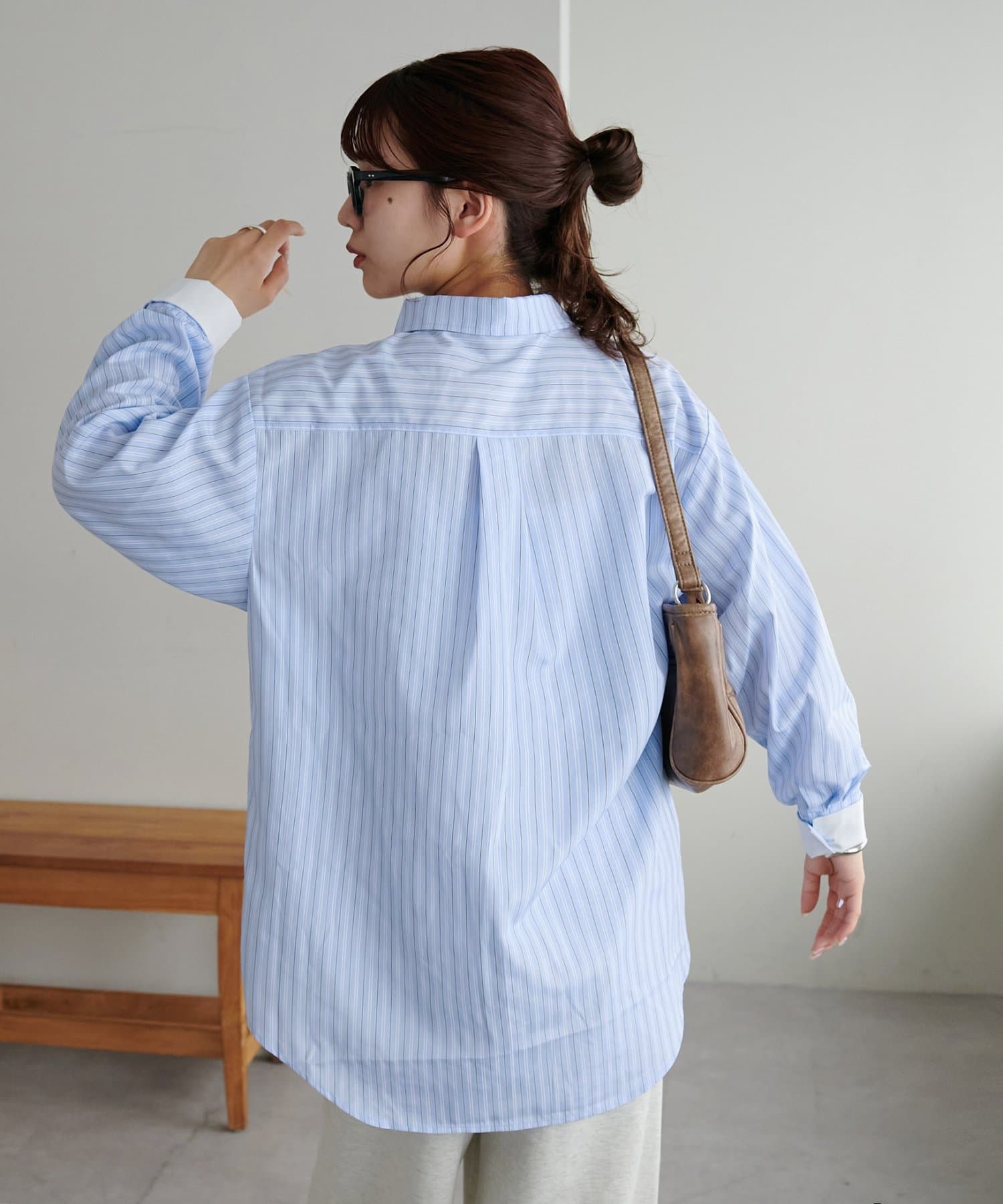 【WEB限定】カフスホワイトデザインストライプオーバーシャツ