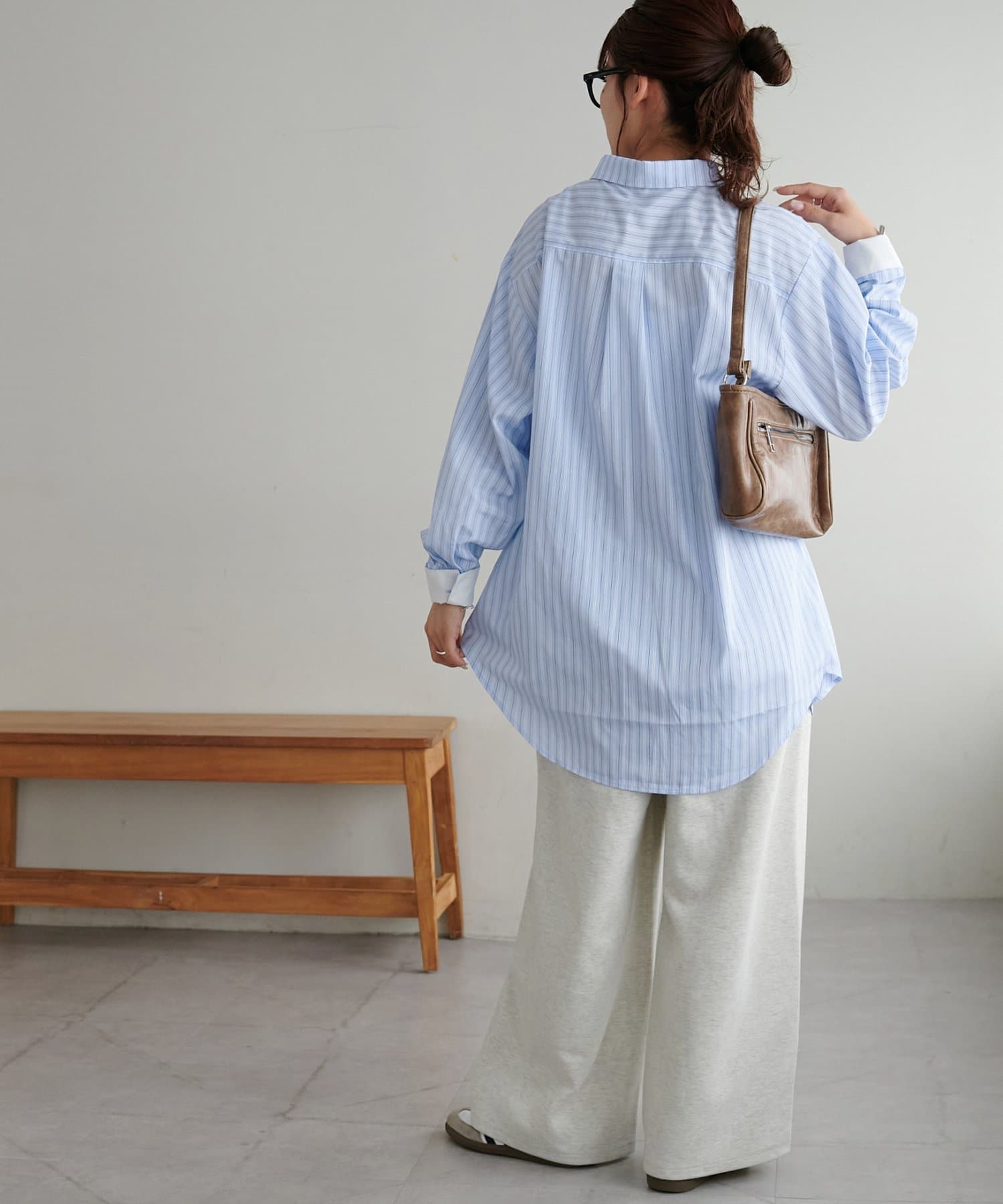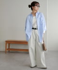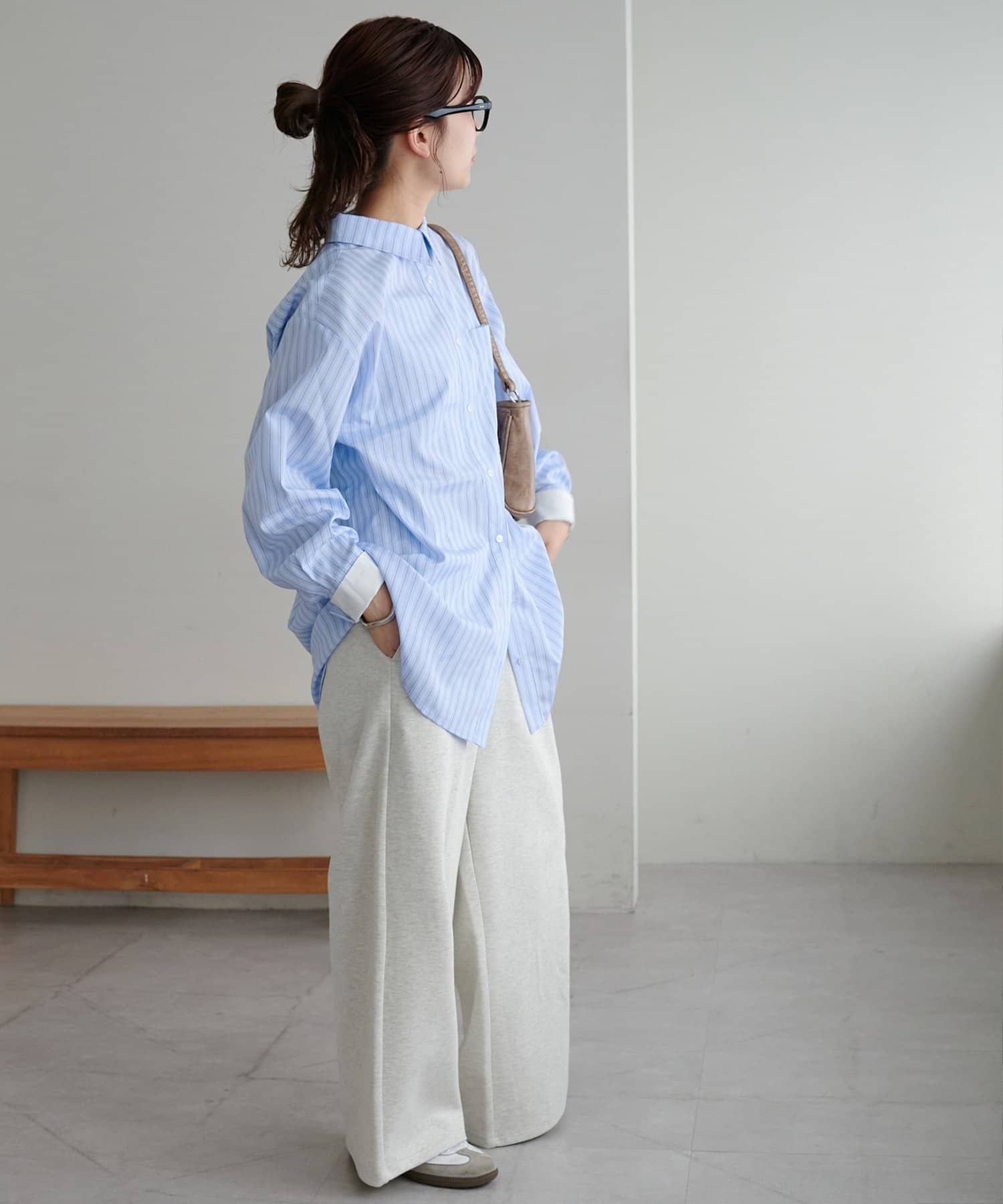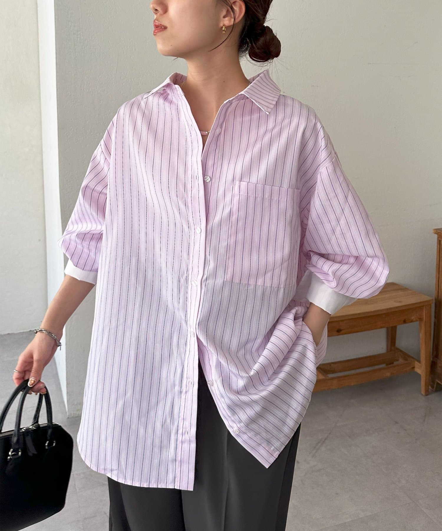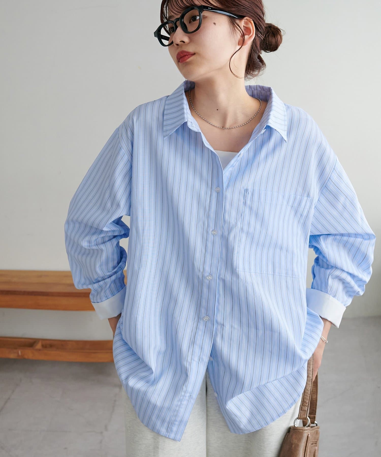【WEB限定】カフスホワイトデザインストライプオーバーシャツ