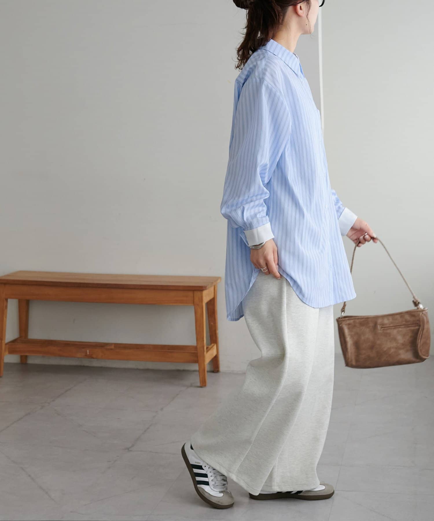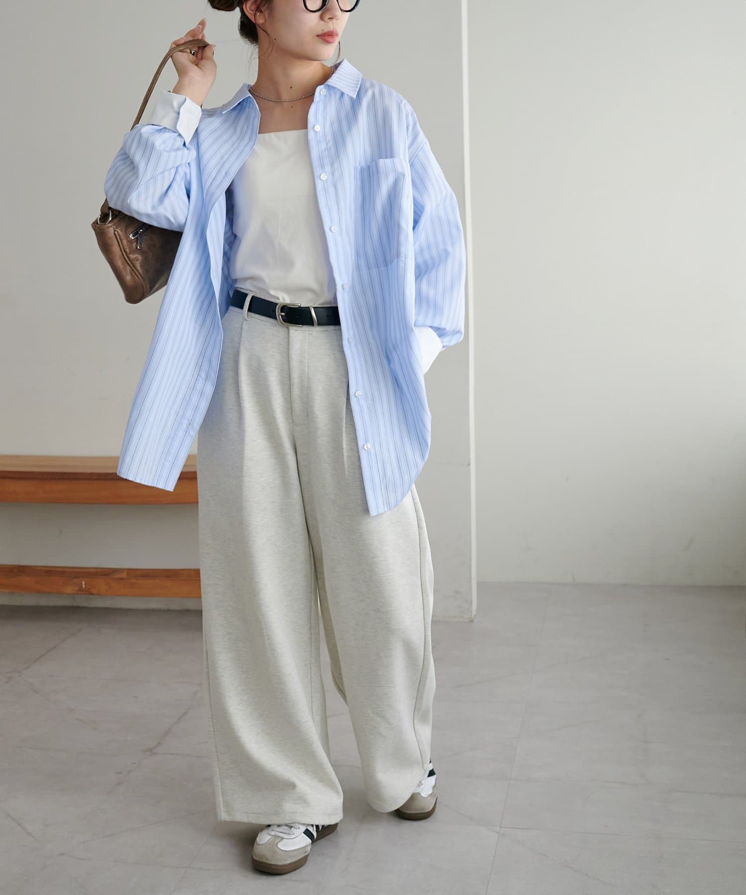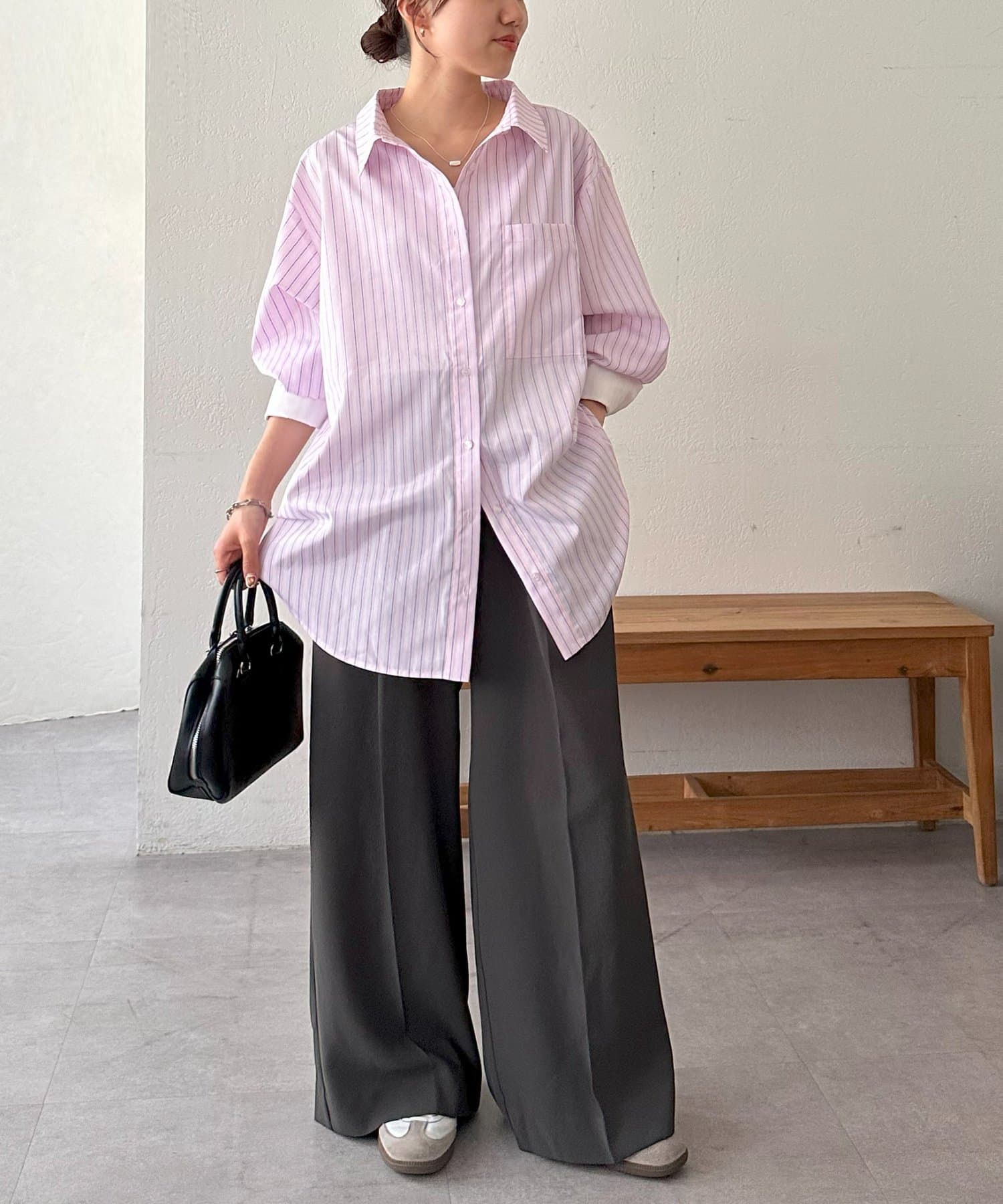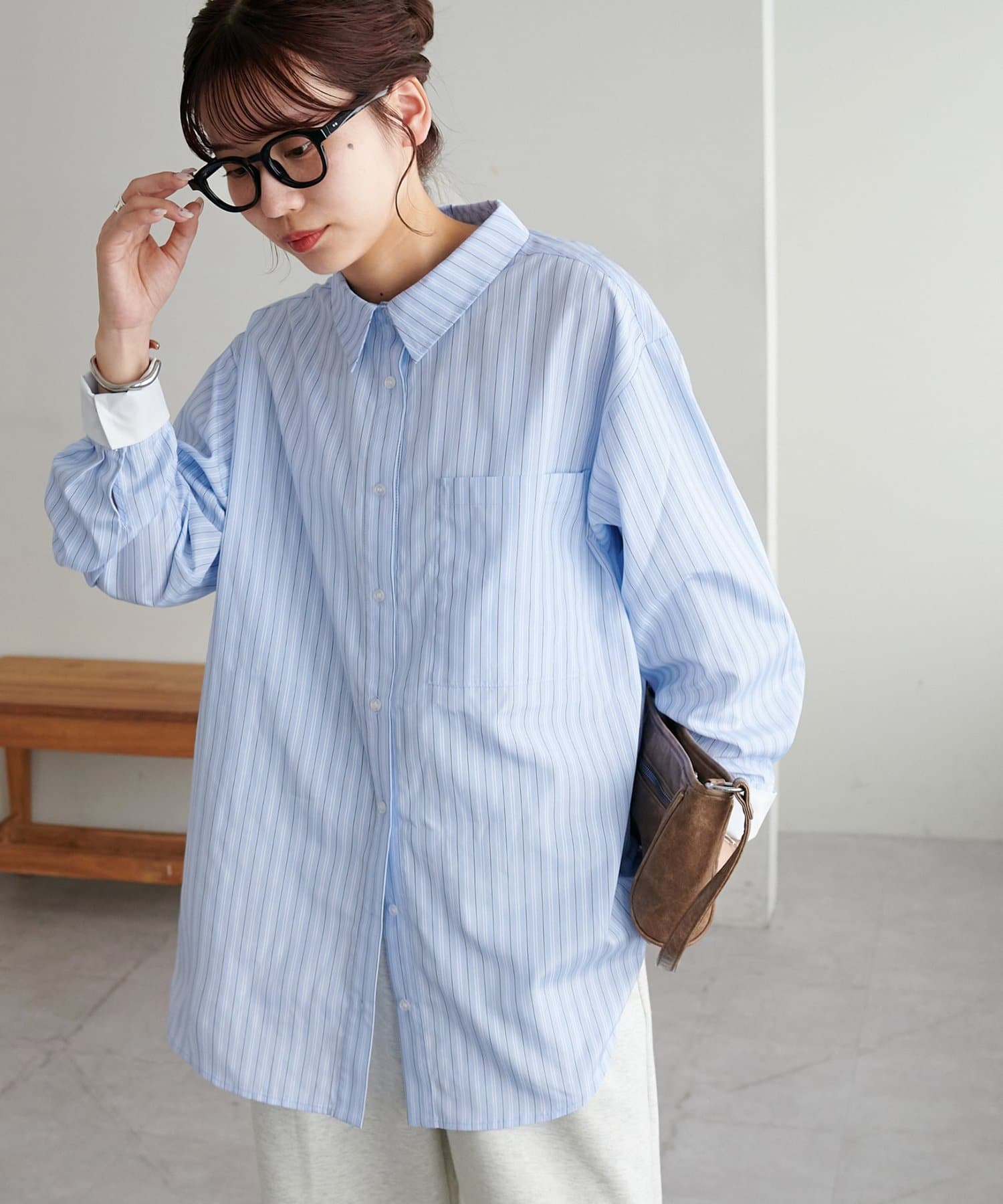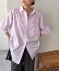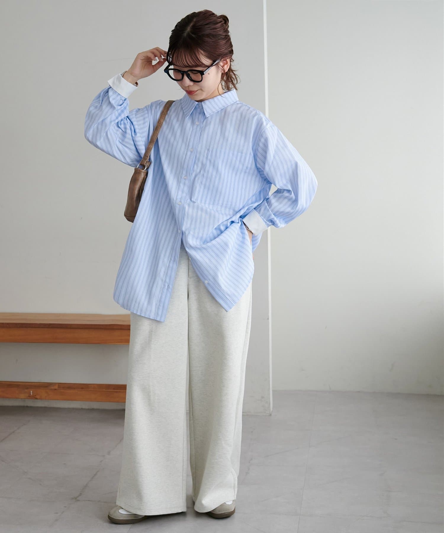 【WEB限定】カフスホワイトデザインストライプオーバーシャツ
