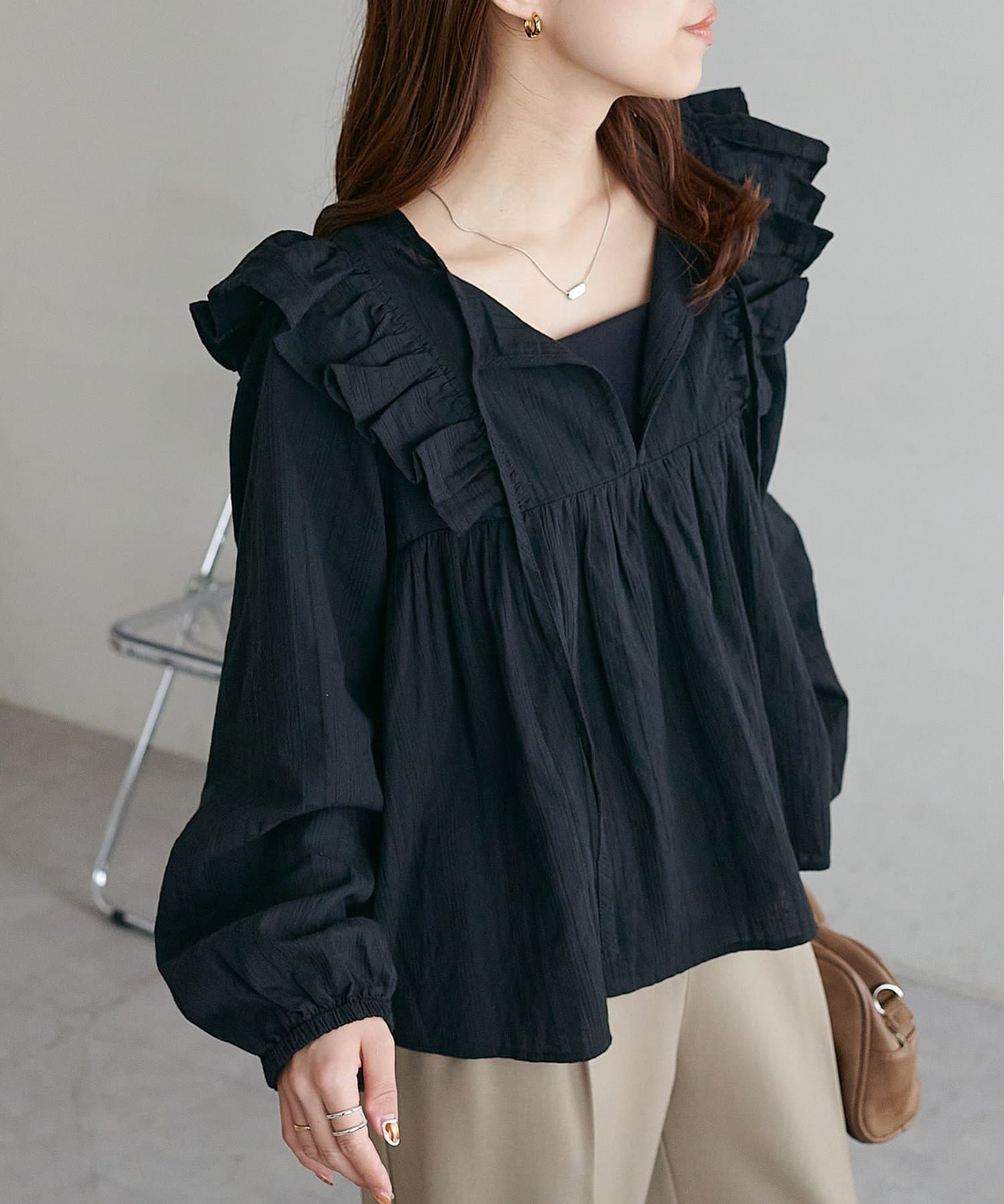 【新色追加/WEB限定】ショルダーフリルブラウス