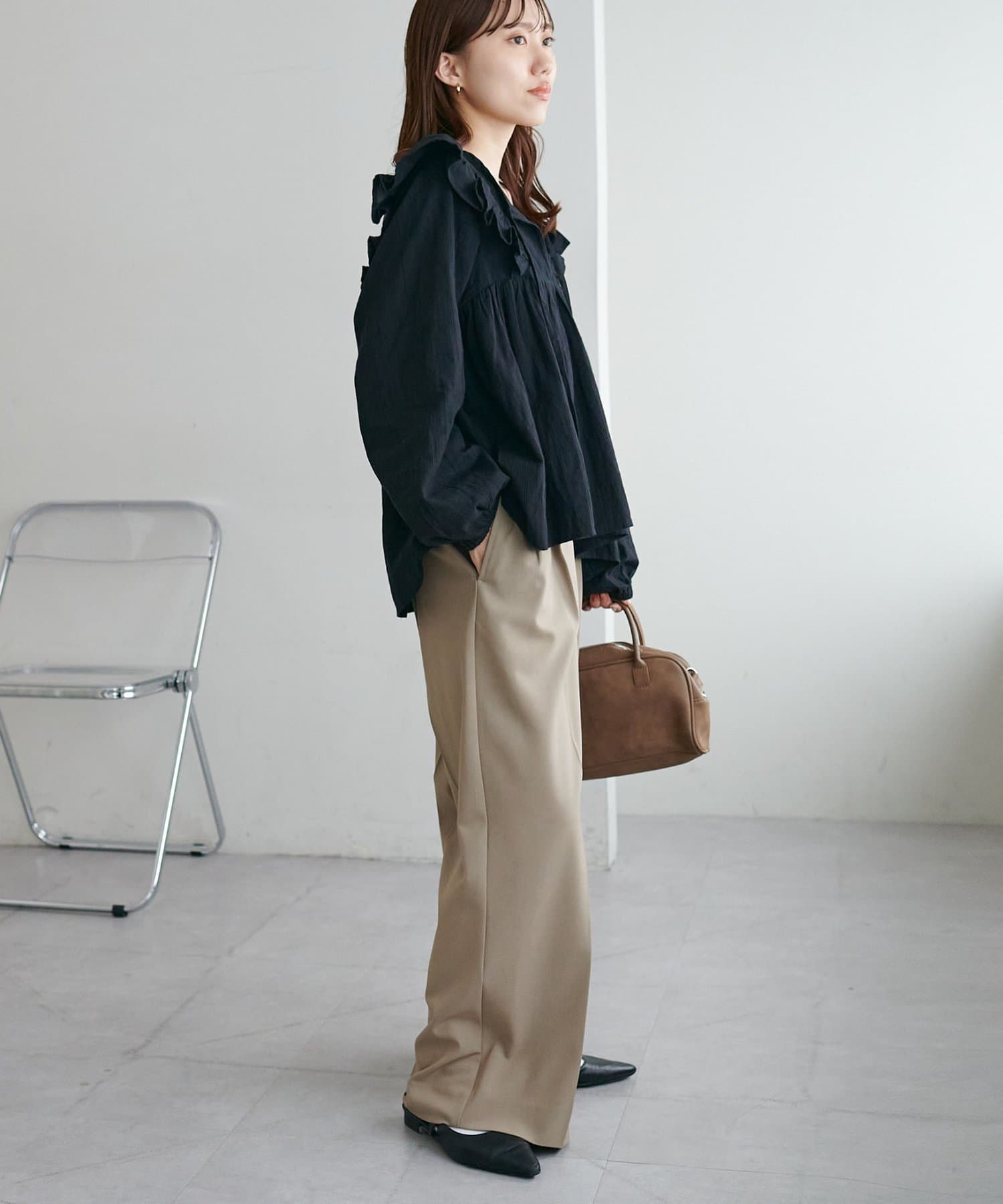・スカート合わせでよりフェミニンに、黒パンツやテーパードなら大人っぽく上品に