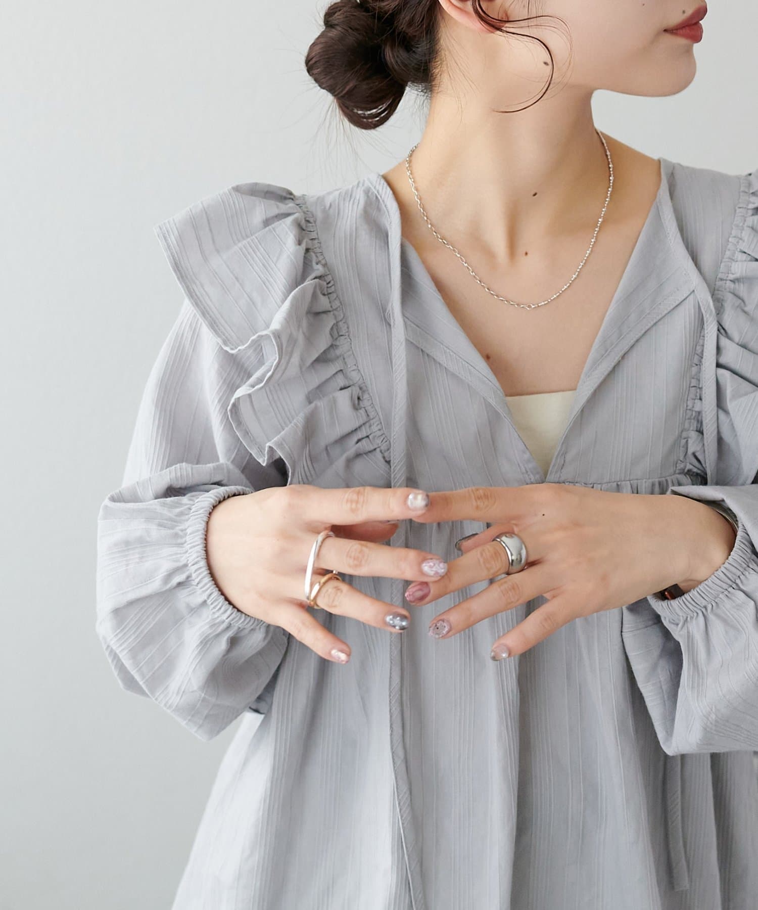 ・胸元に入れた軽めのギャザーでふんわりとした表情に