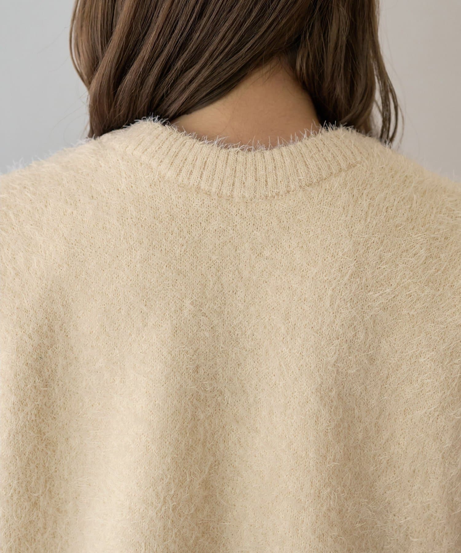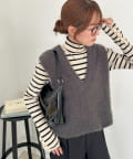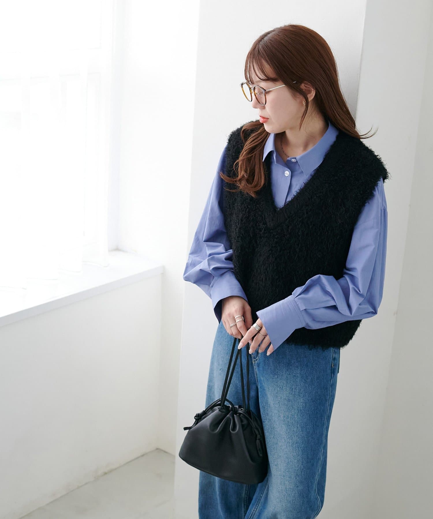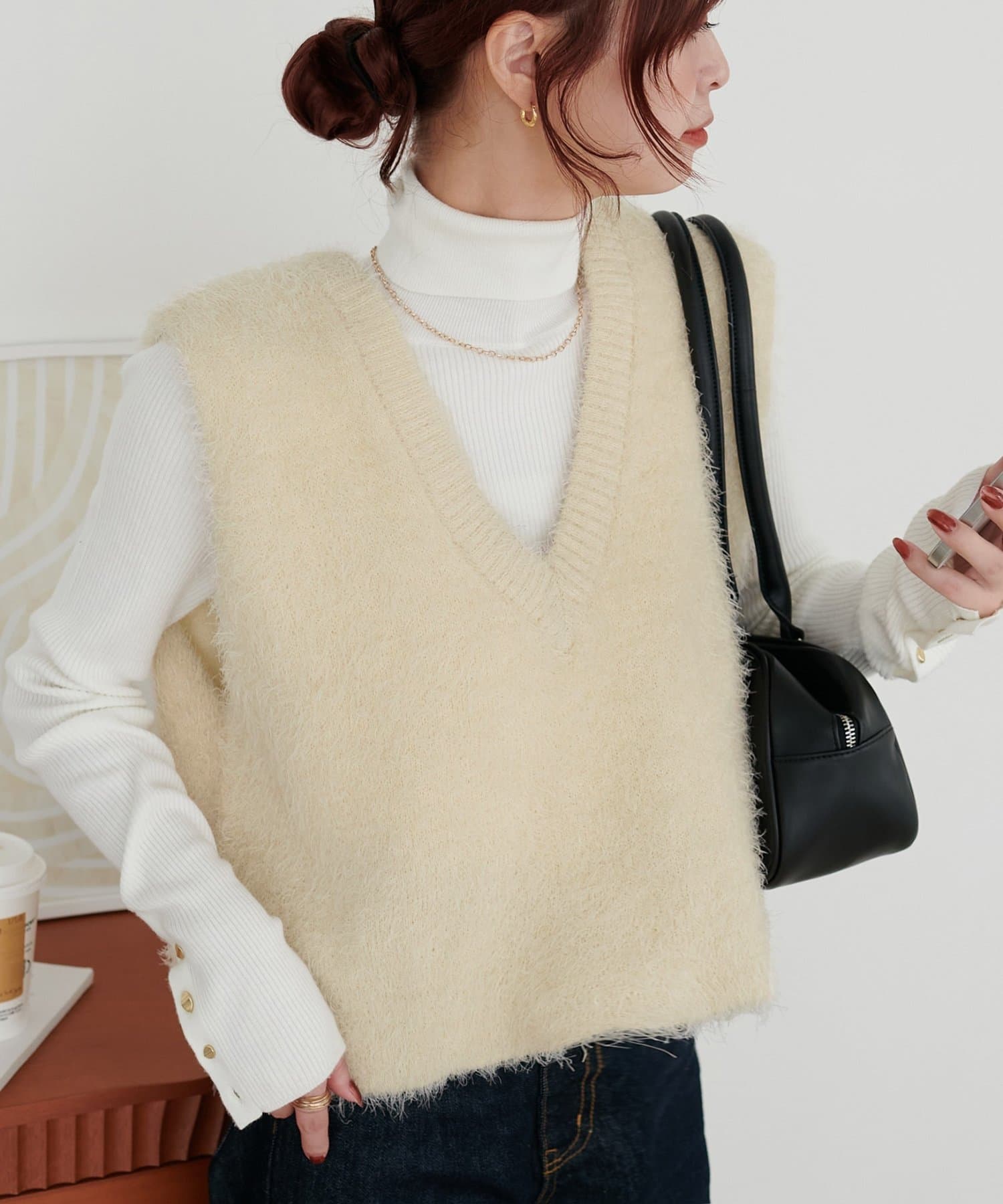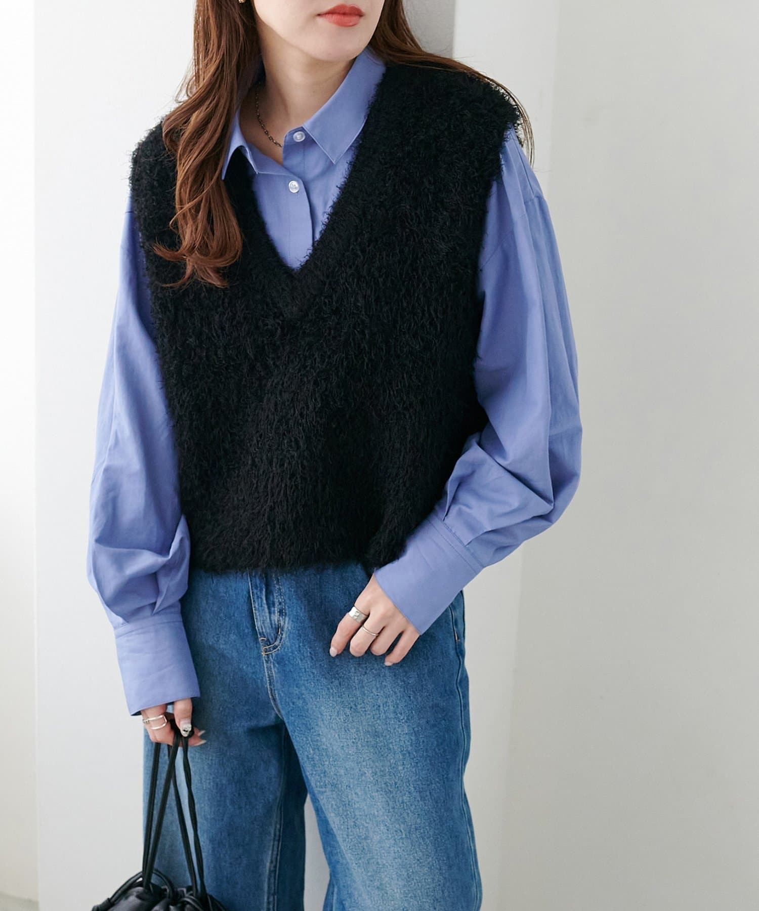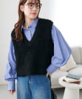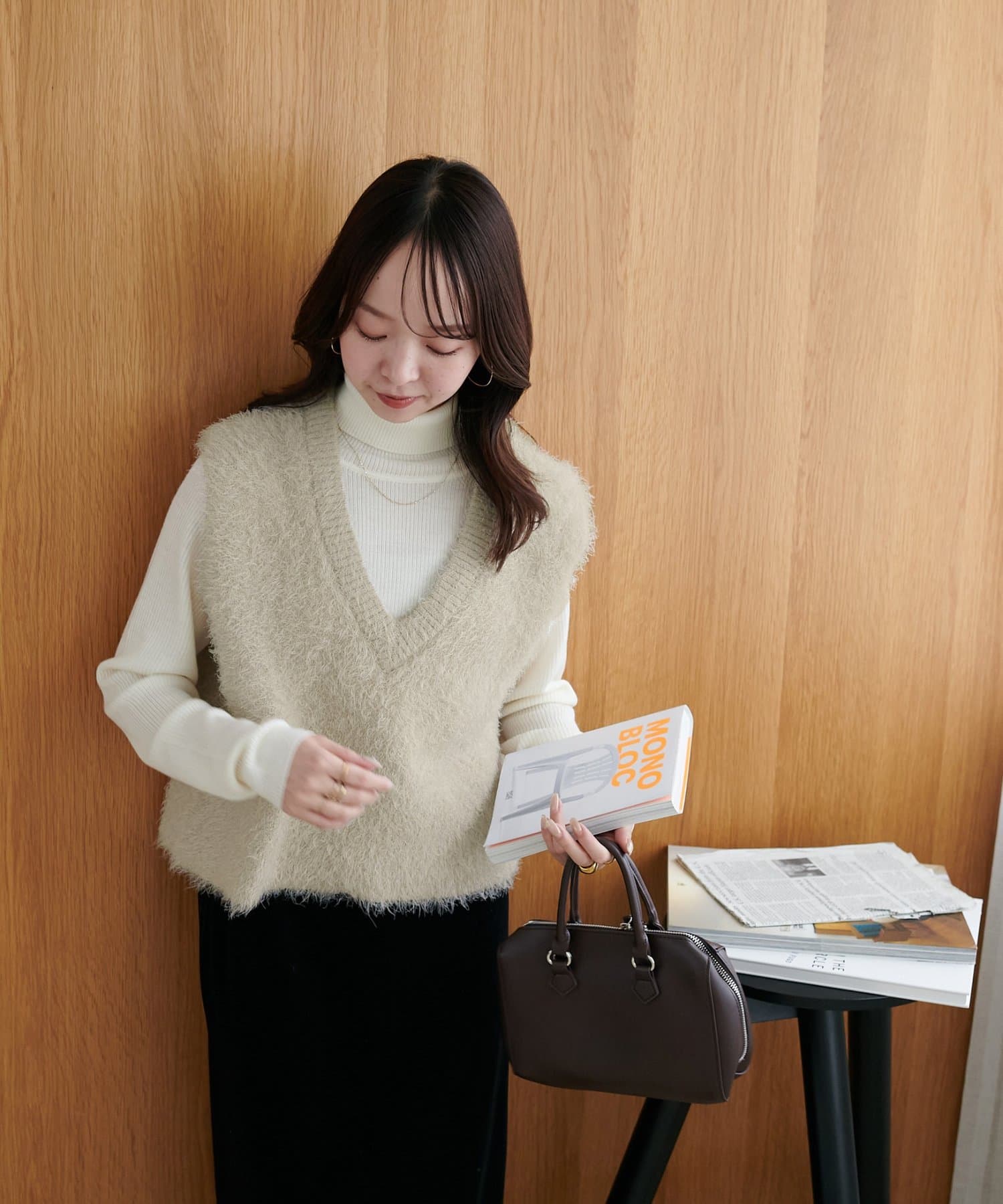 ふわふわとした毛足の長さが特徴のフェザー素材のショートベスト。