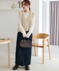 162cmスタッフ:Vネックはデコルテ周りが綺麗に見えて、抜け感もでます。合わせるアイテム次第でロングシーズン着用可能です。