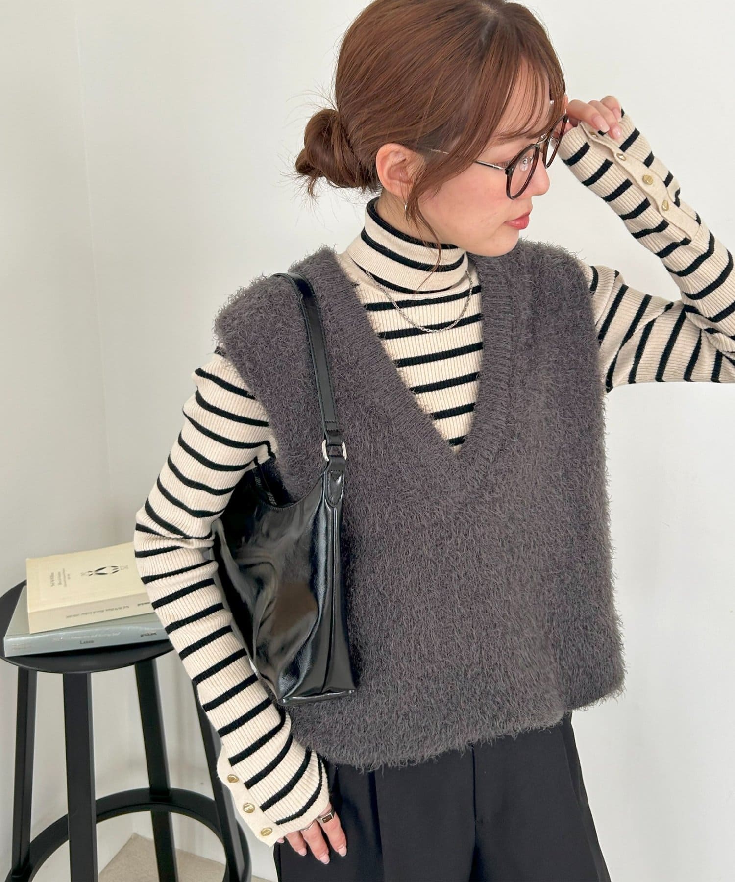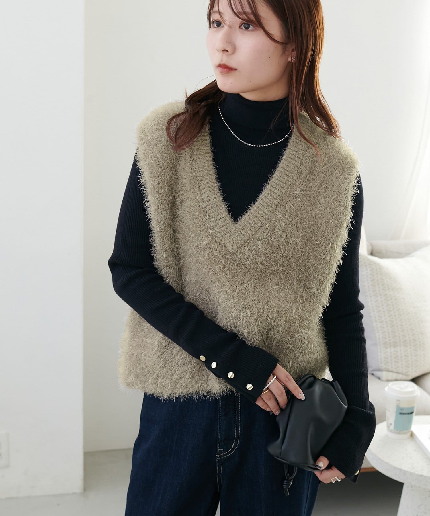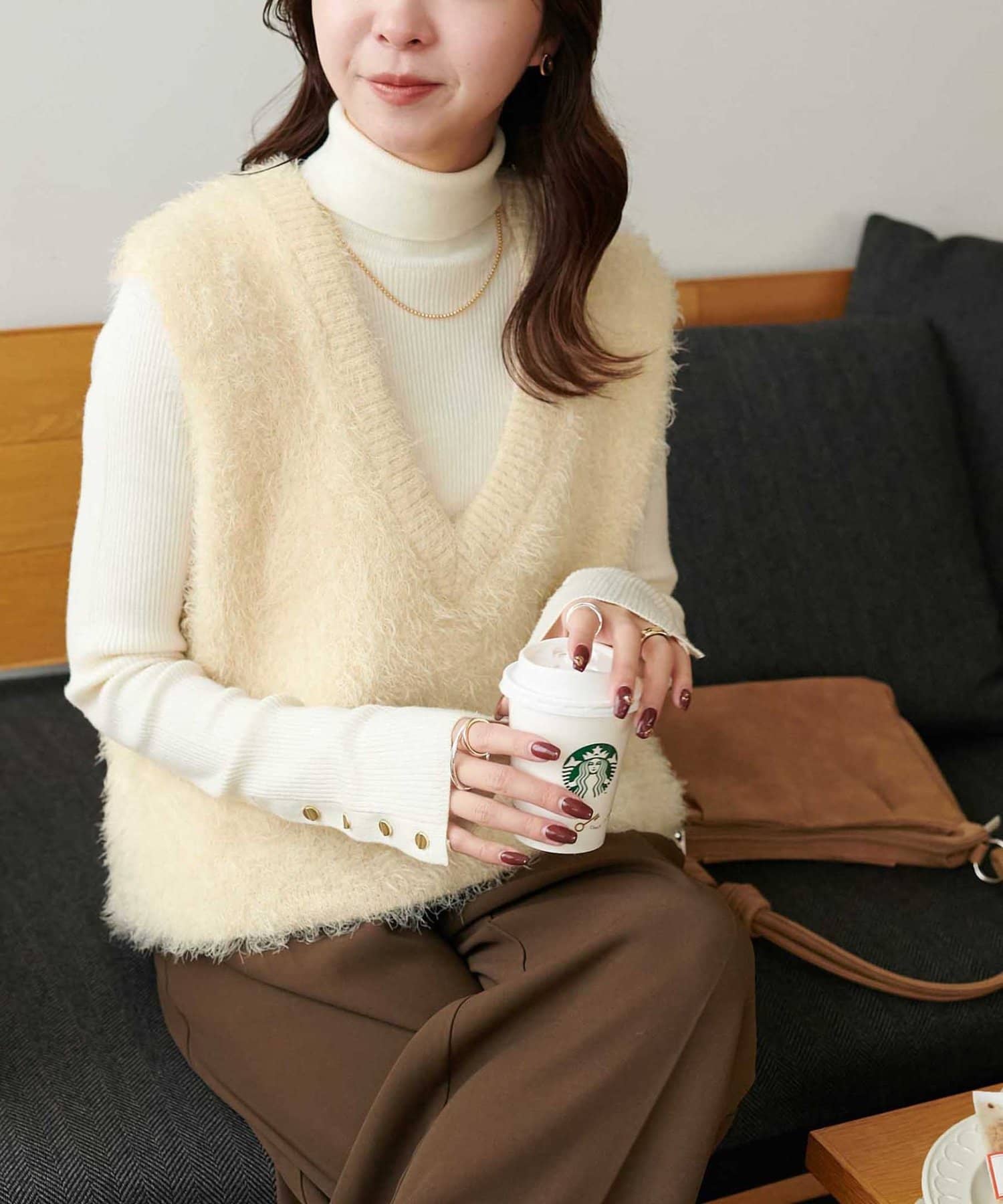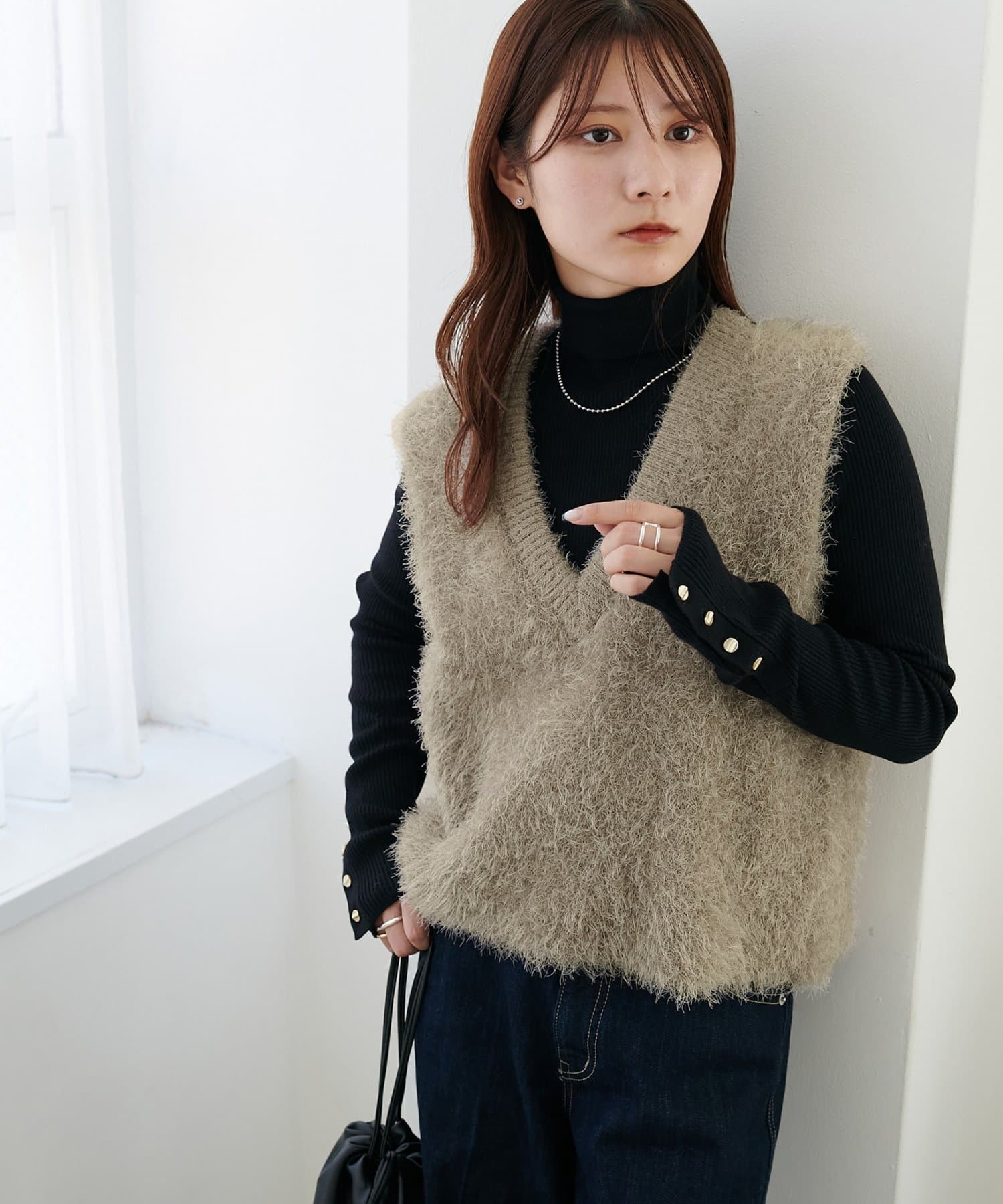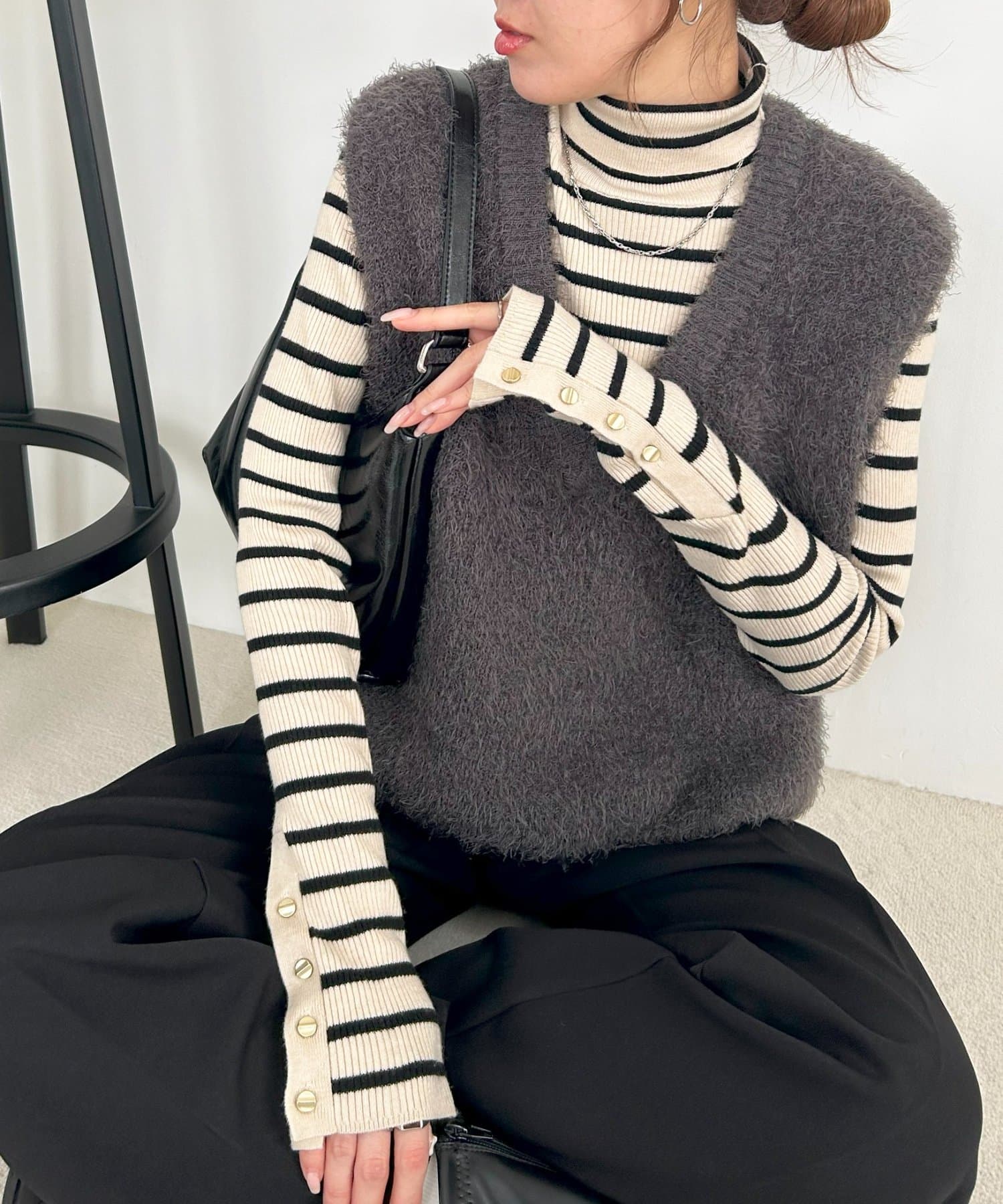 リブ袖口ボタンタートル《WEB限定カラーあり》