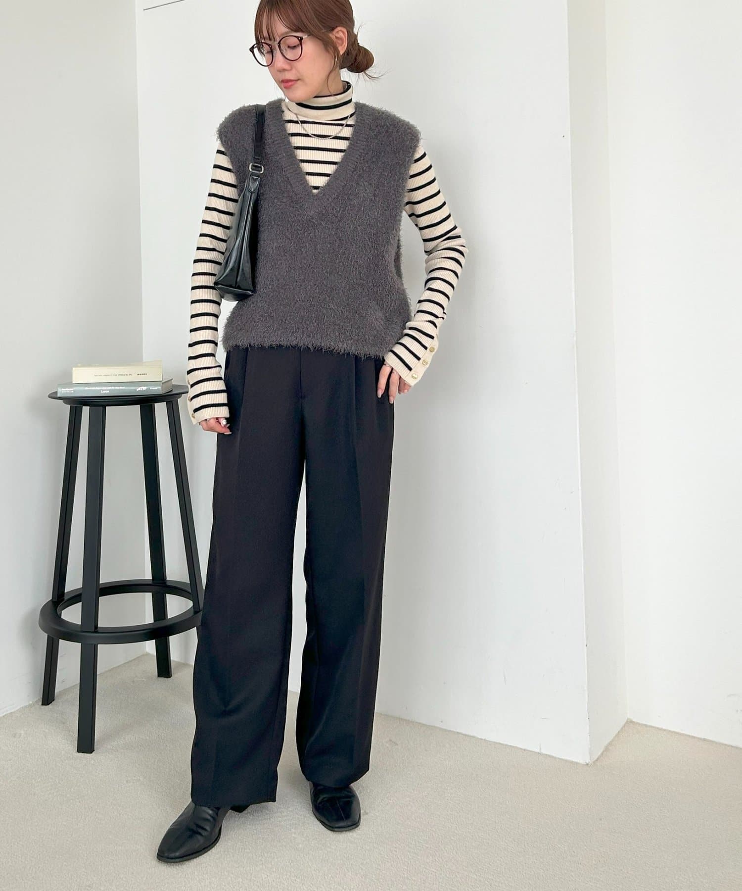ボトムスにイン・アウトスタイルどちらも綺麗に着られる丈感で、さらに前後2WAY仕様なので様々なスタイリングを楽しめます♪