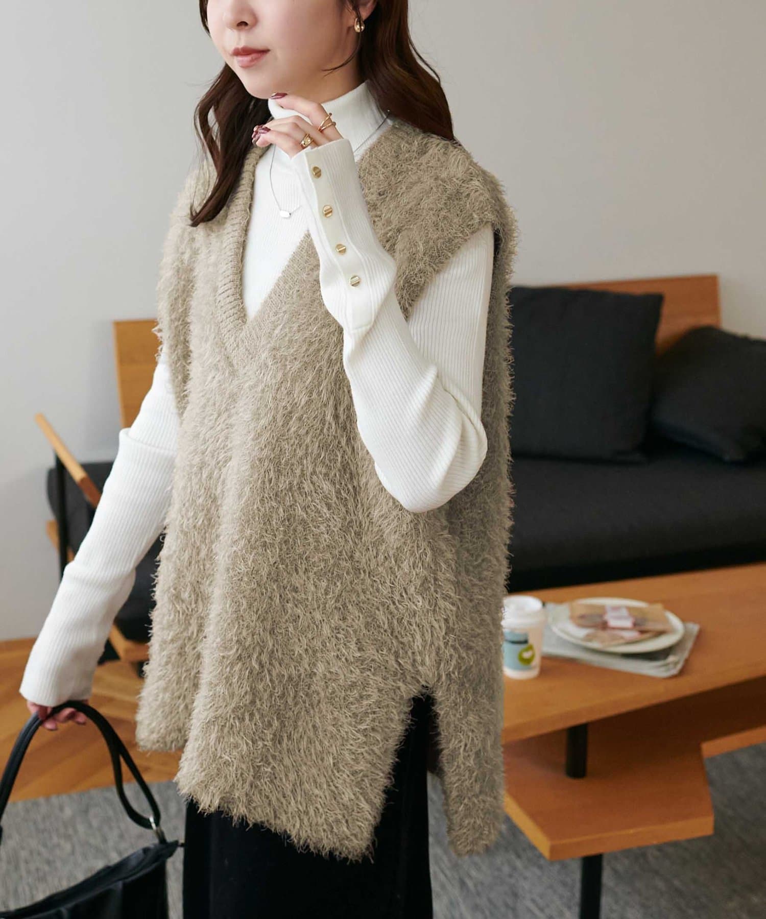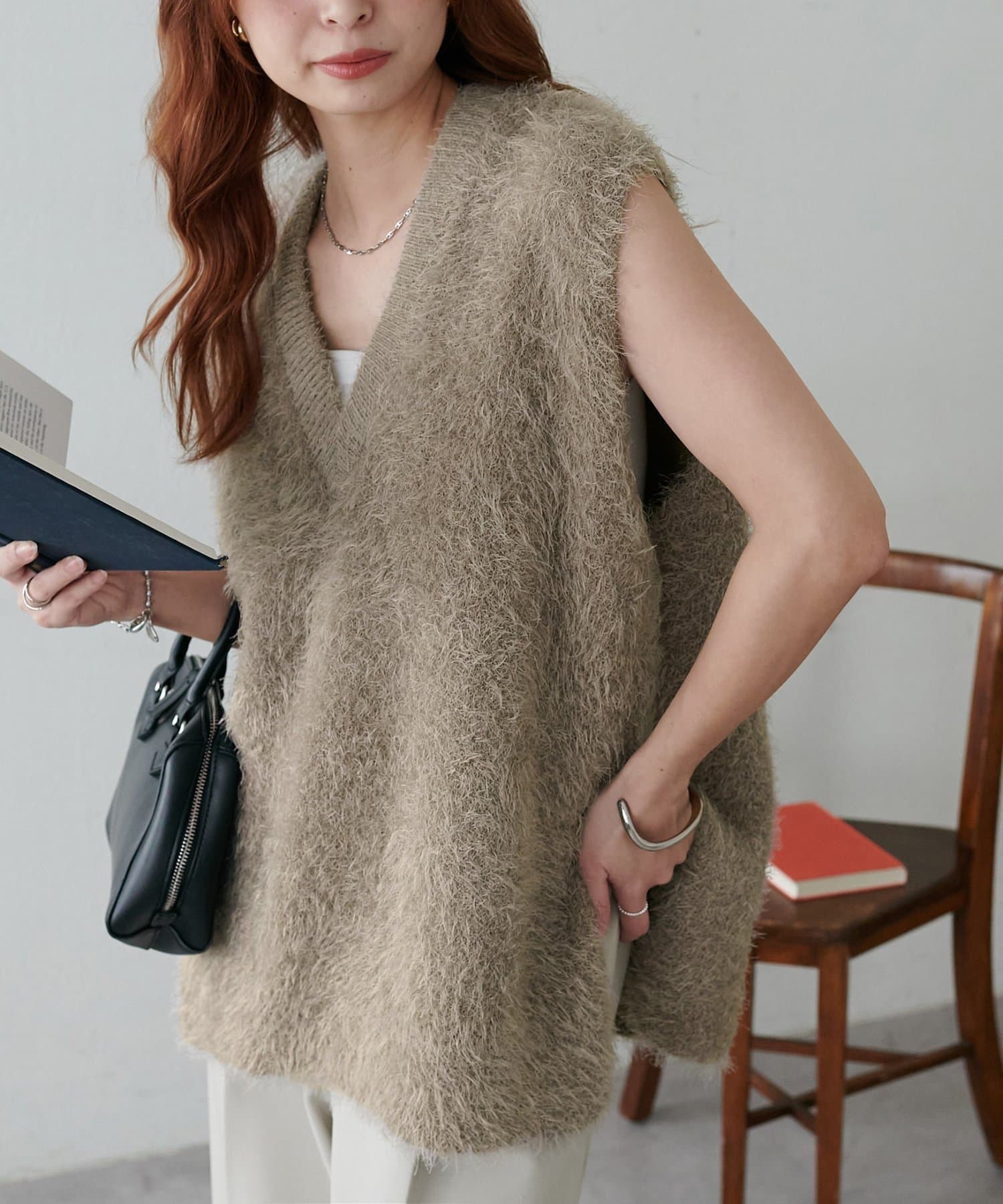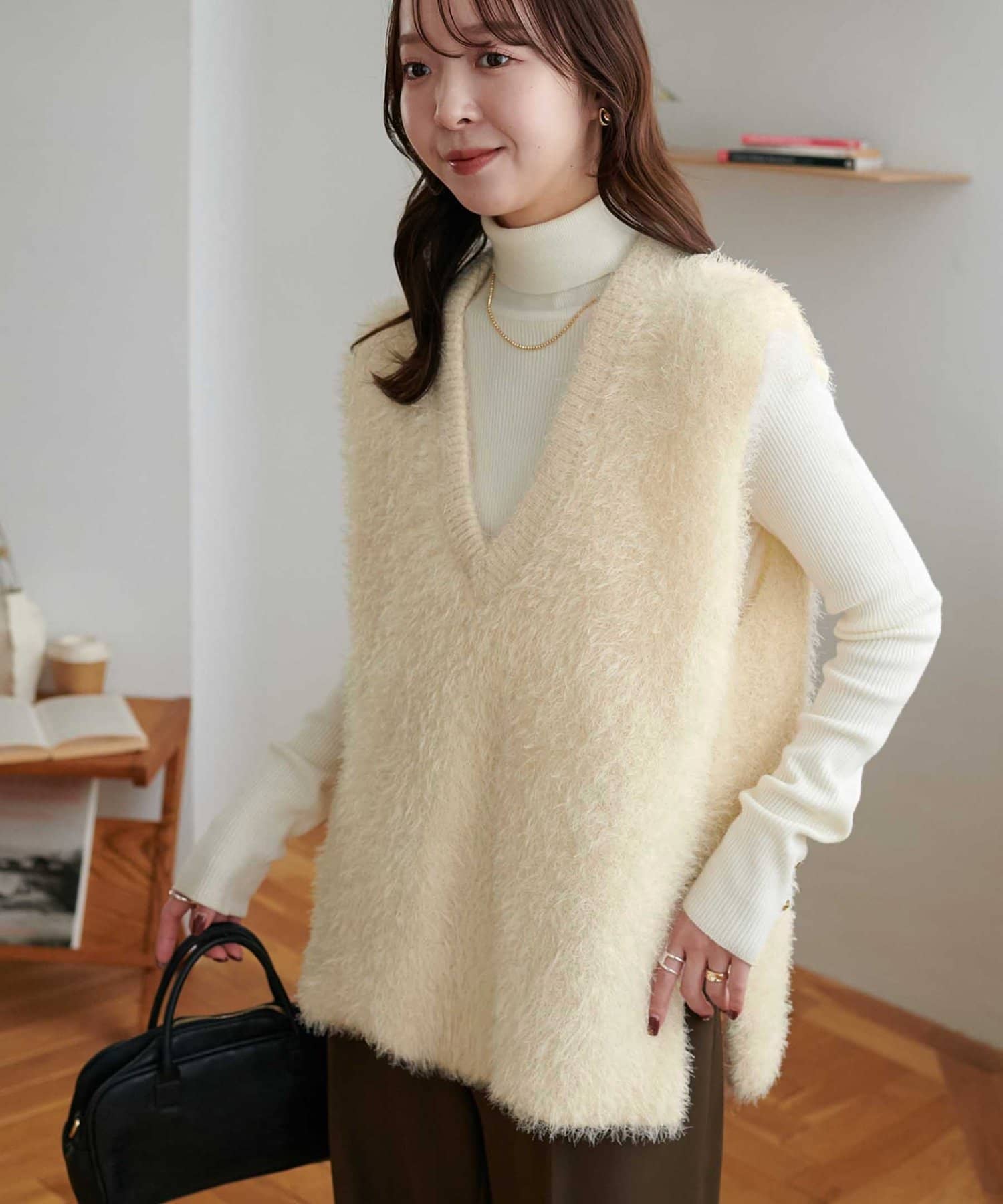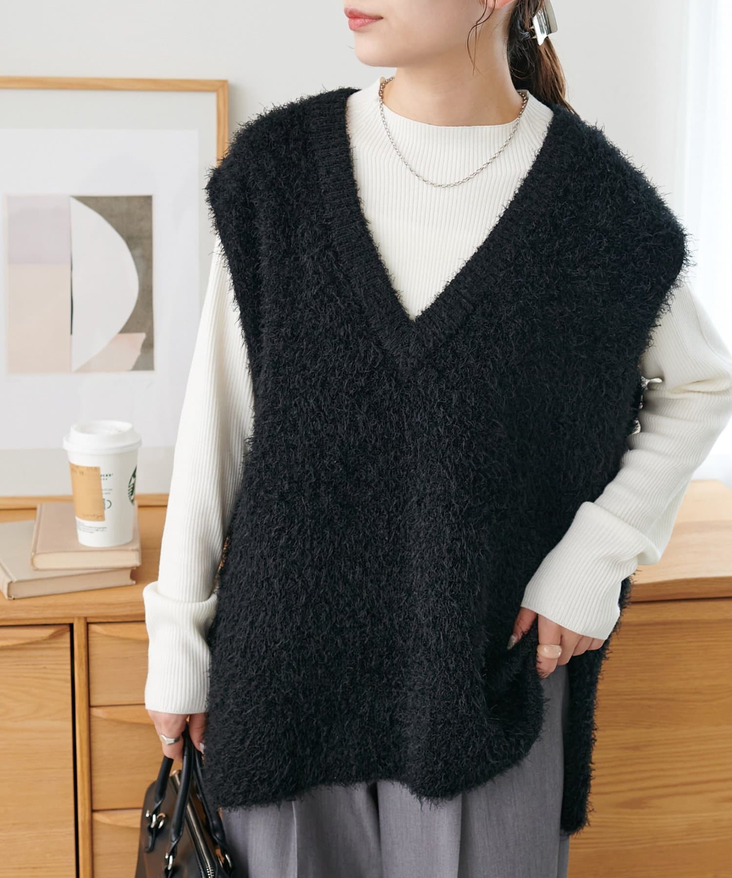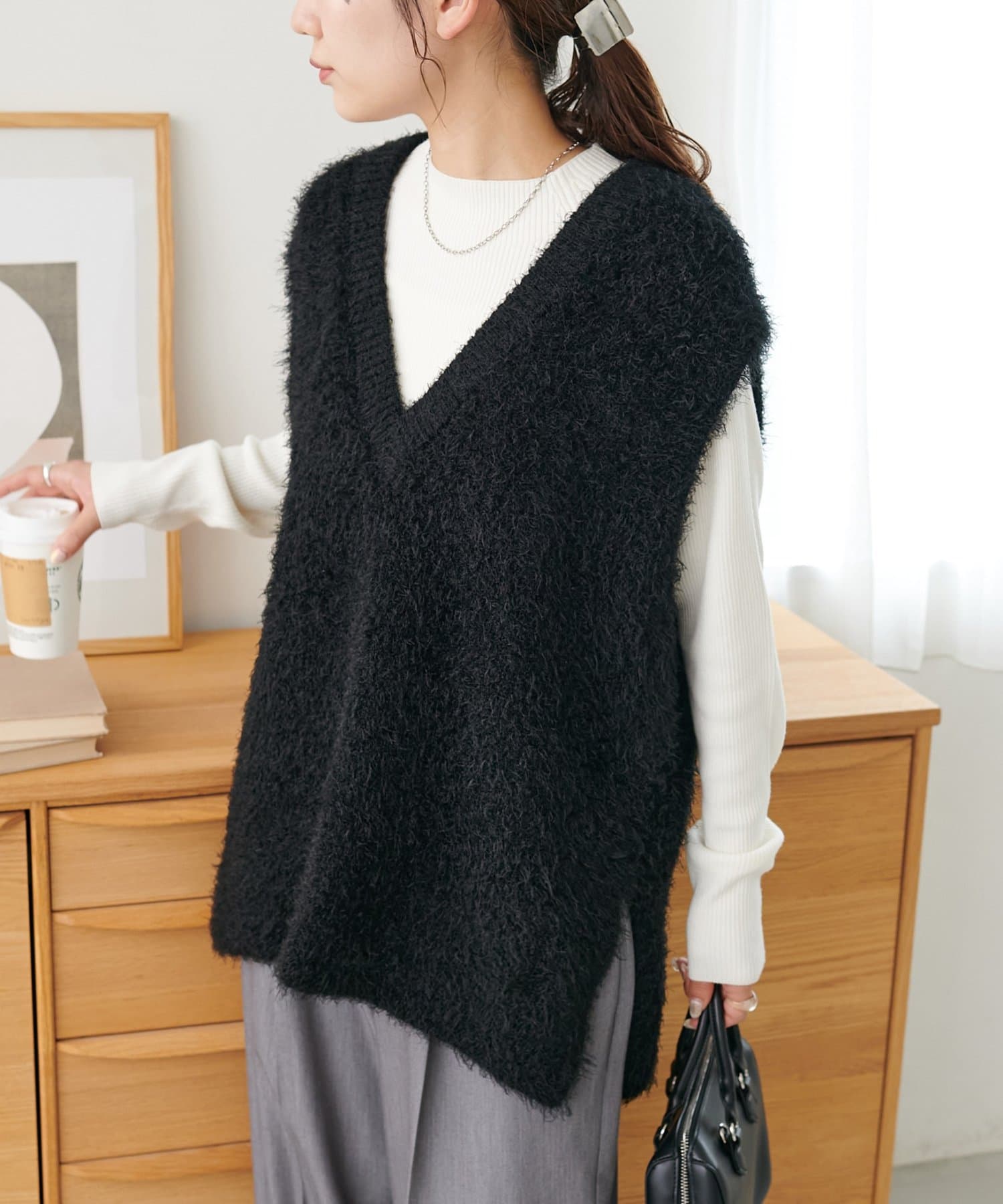 【腰回りカバー◎】フェザーヤーンチュニックベスト《WEB限定カラーあり》