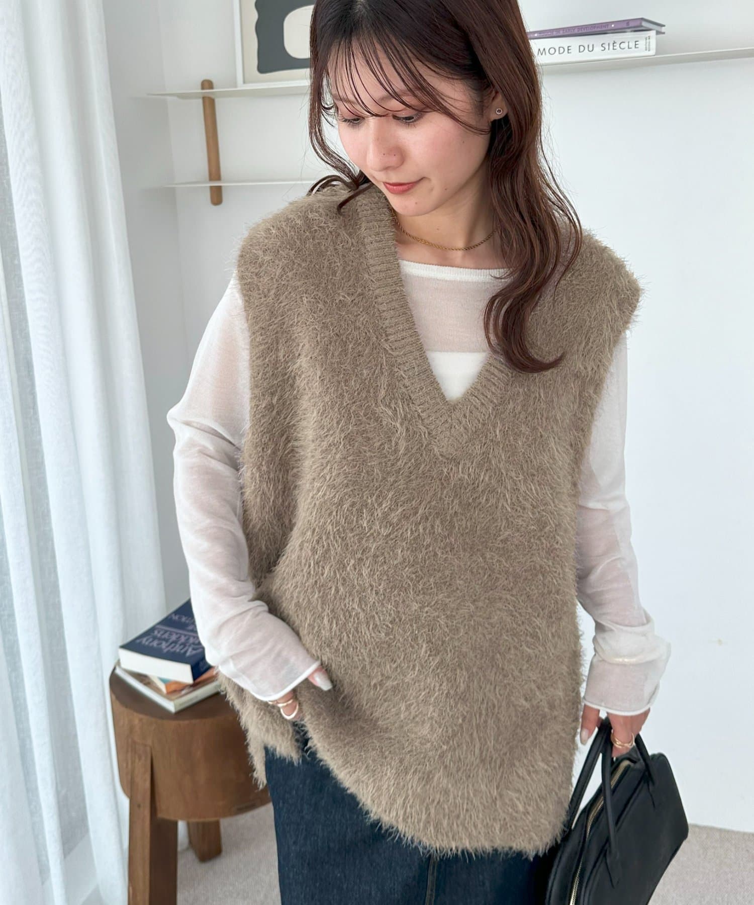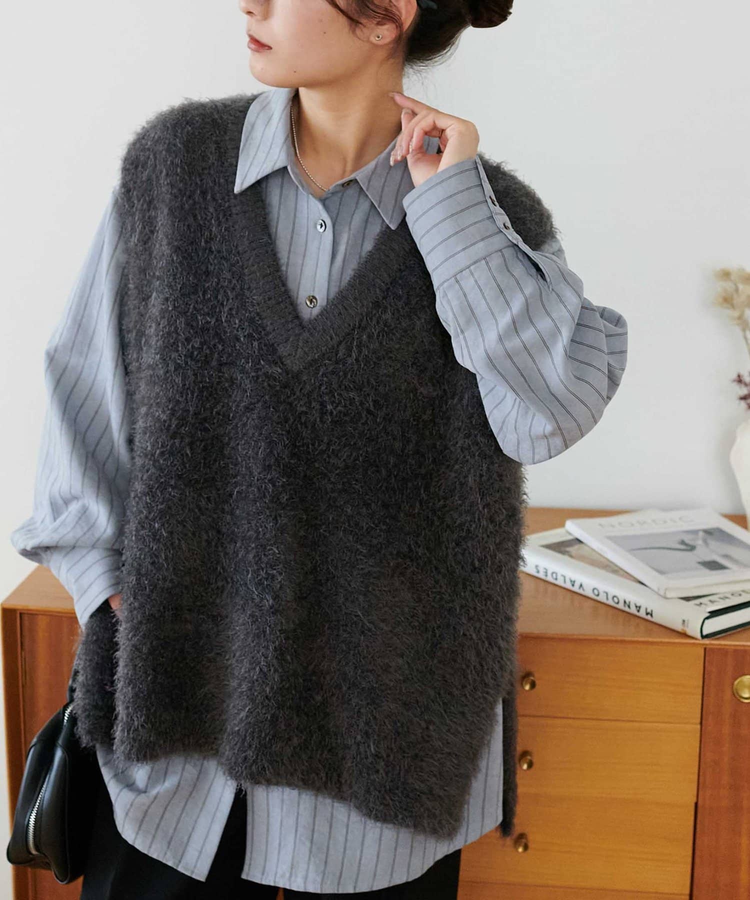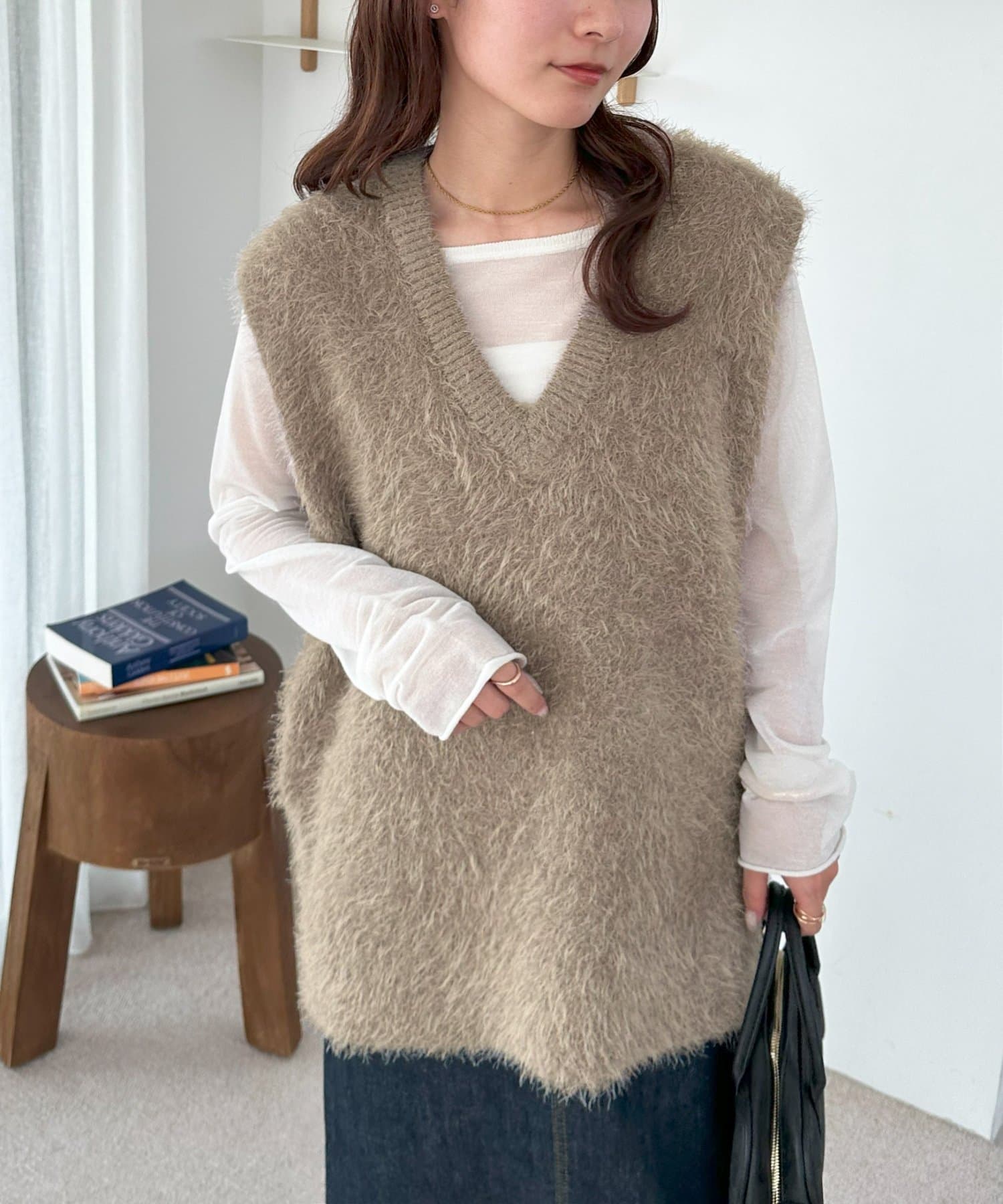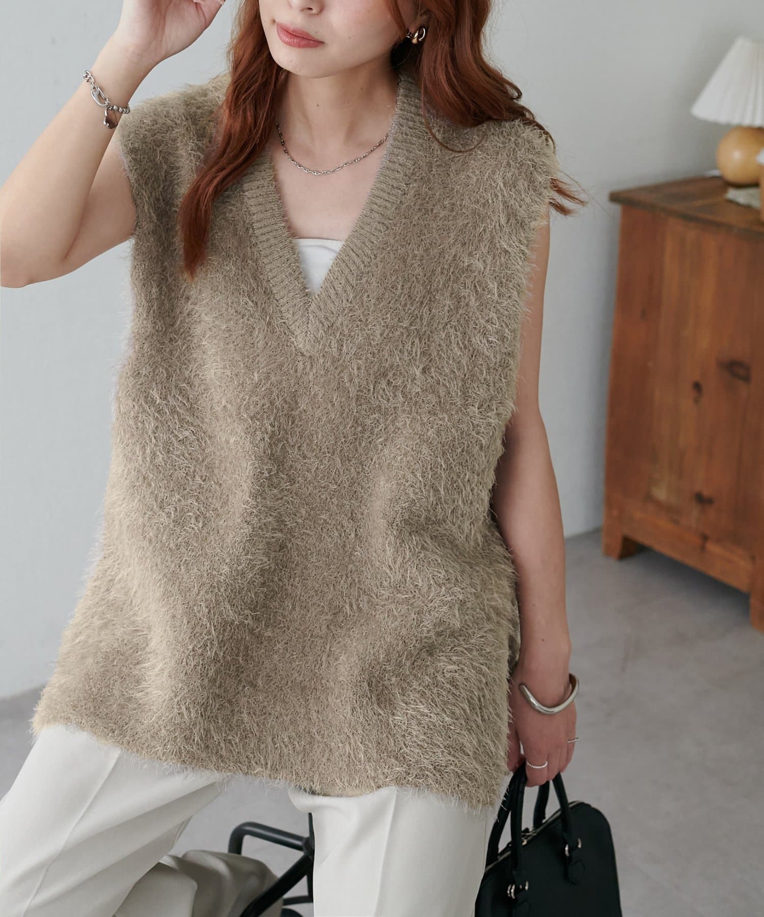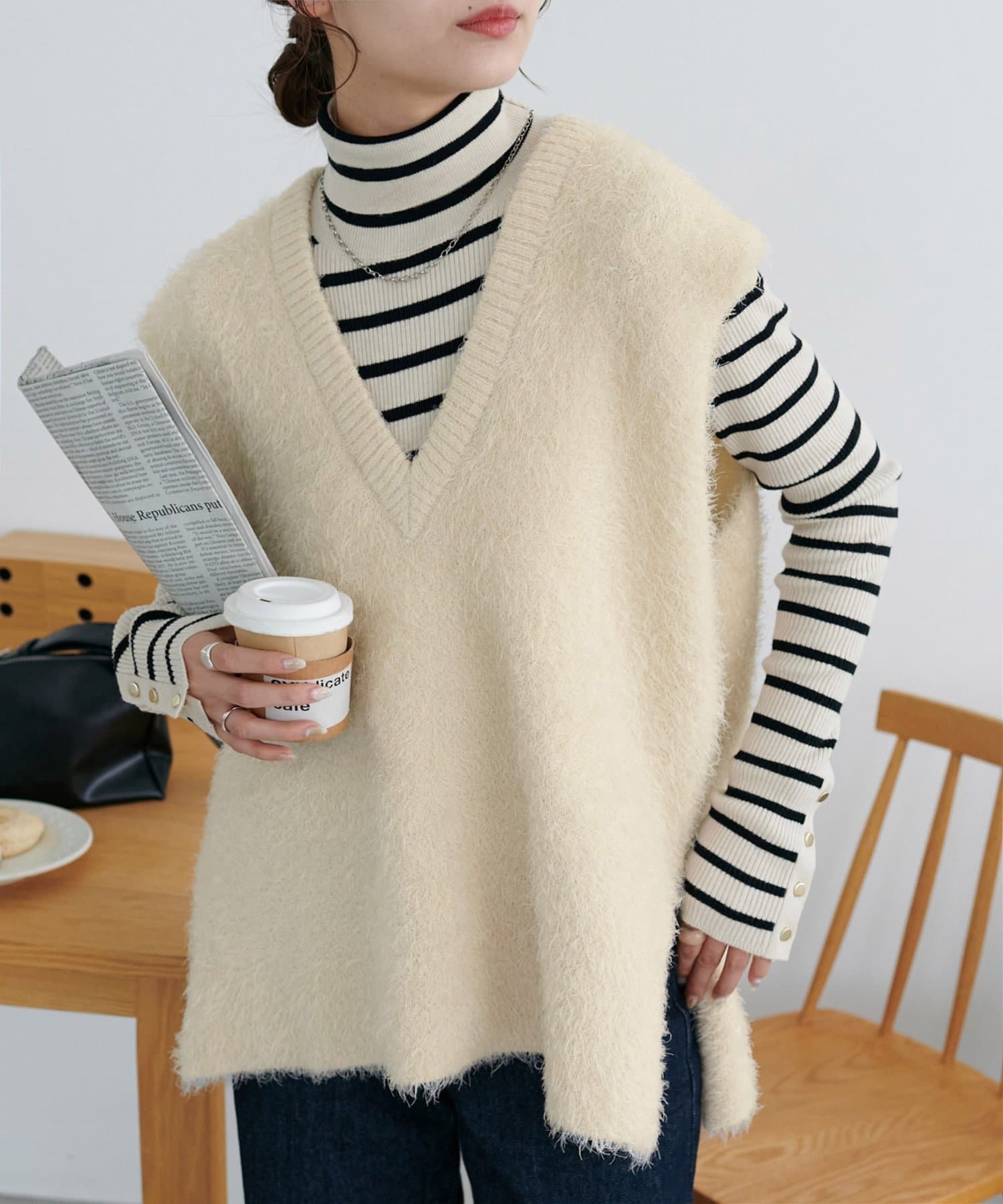 【腰回りカバー◎】フェザーヤーンチュニックベスト《WEB限定カラーあり》
