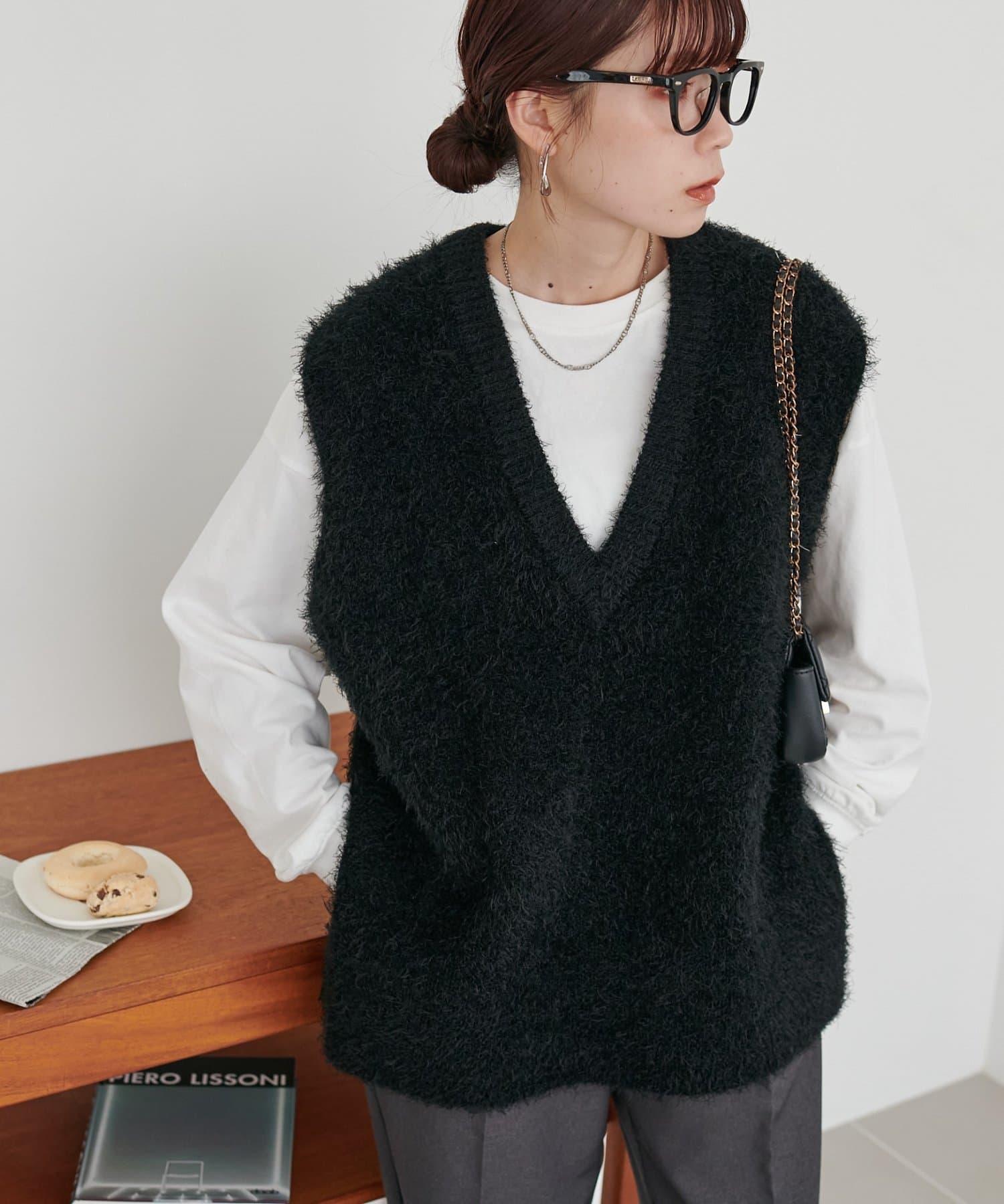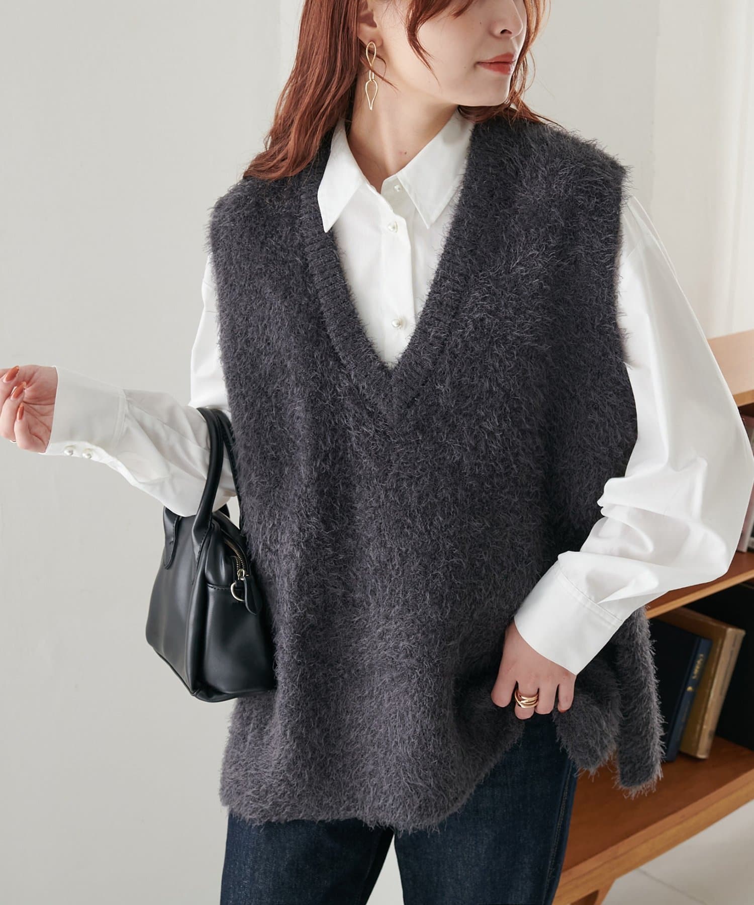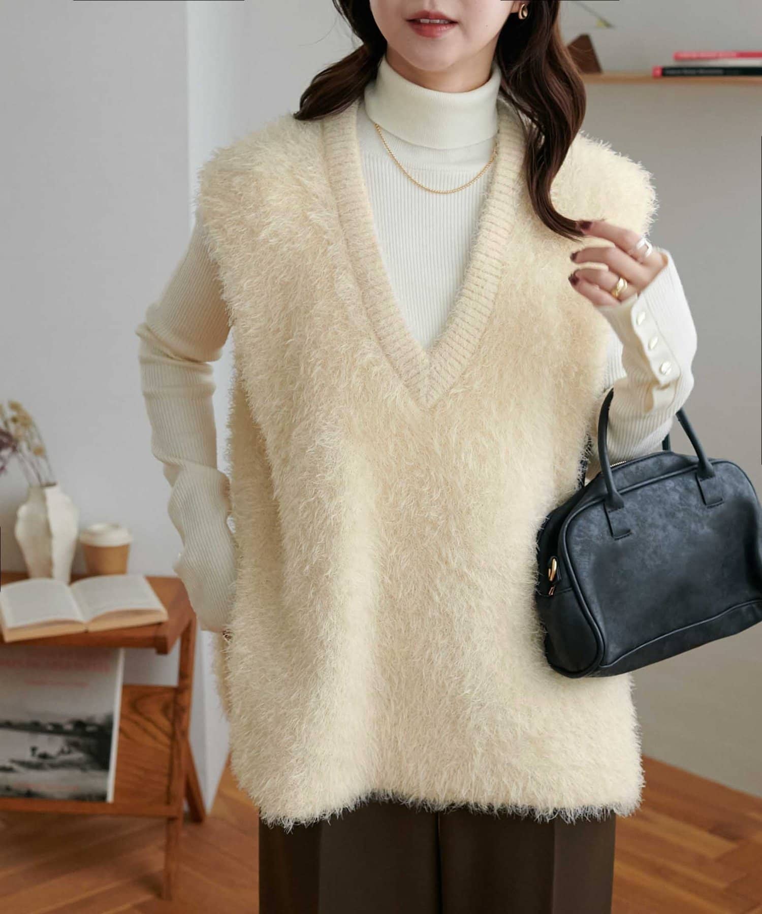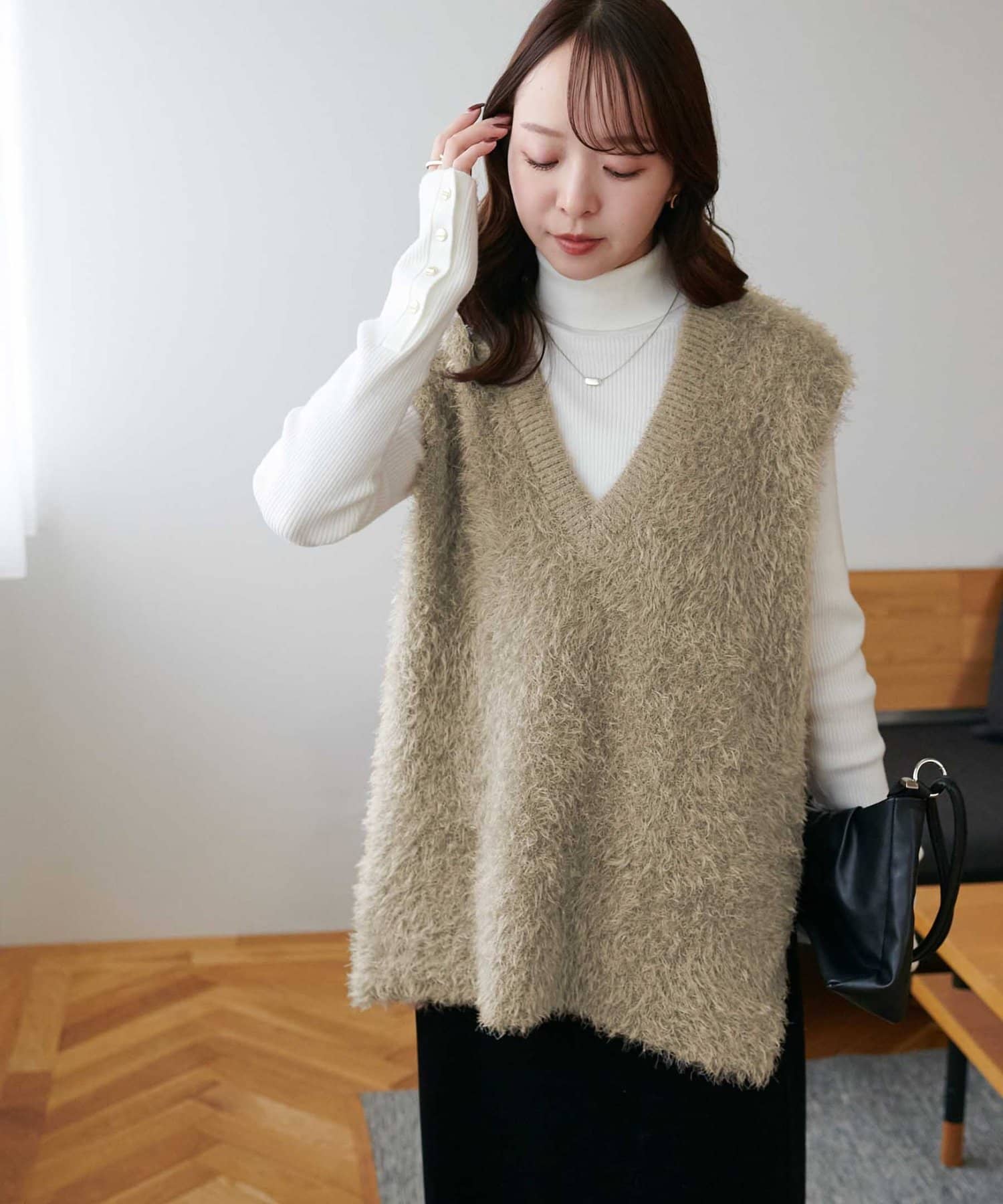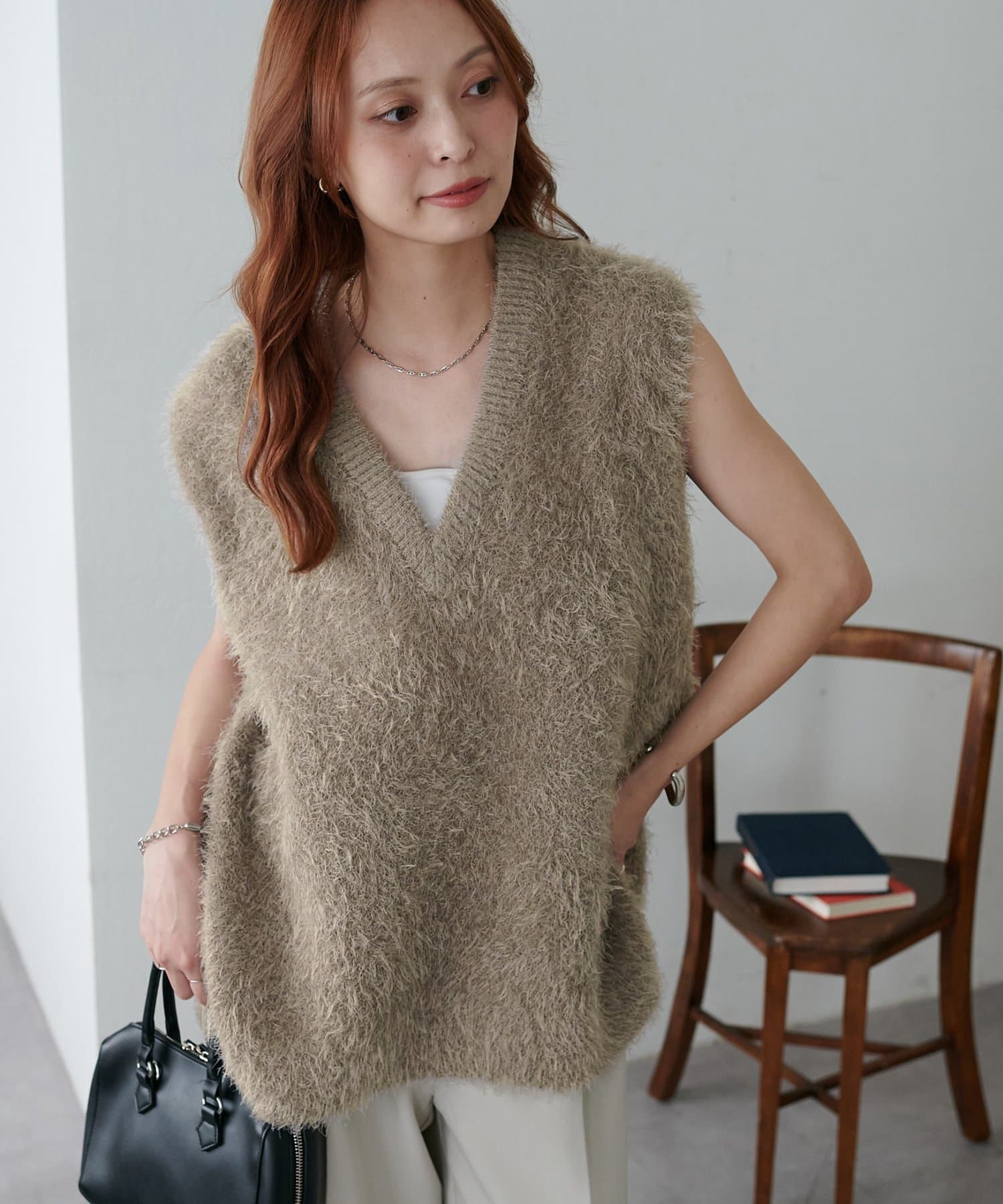 【腰回りカバー◎】フェザーヤーンチュニックベスト《WEB限定カラーあり》