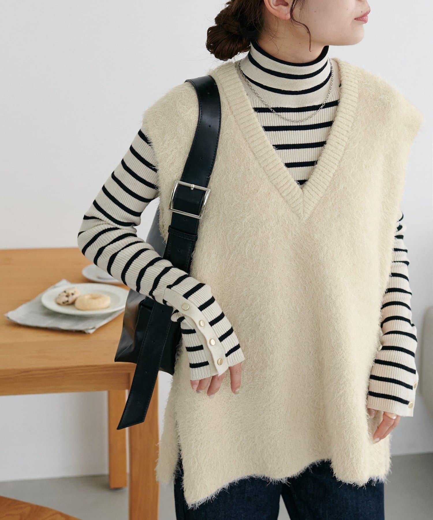 リブ袖口ボタンタートル《WEB限定カラーあり》