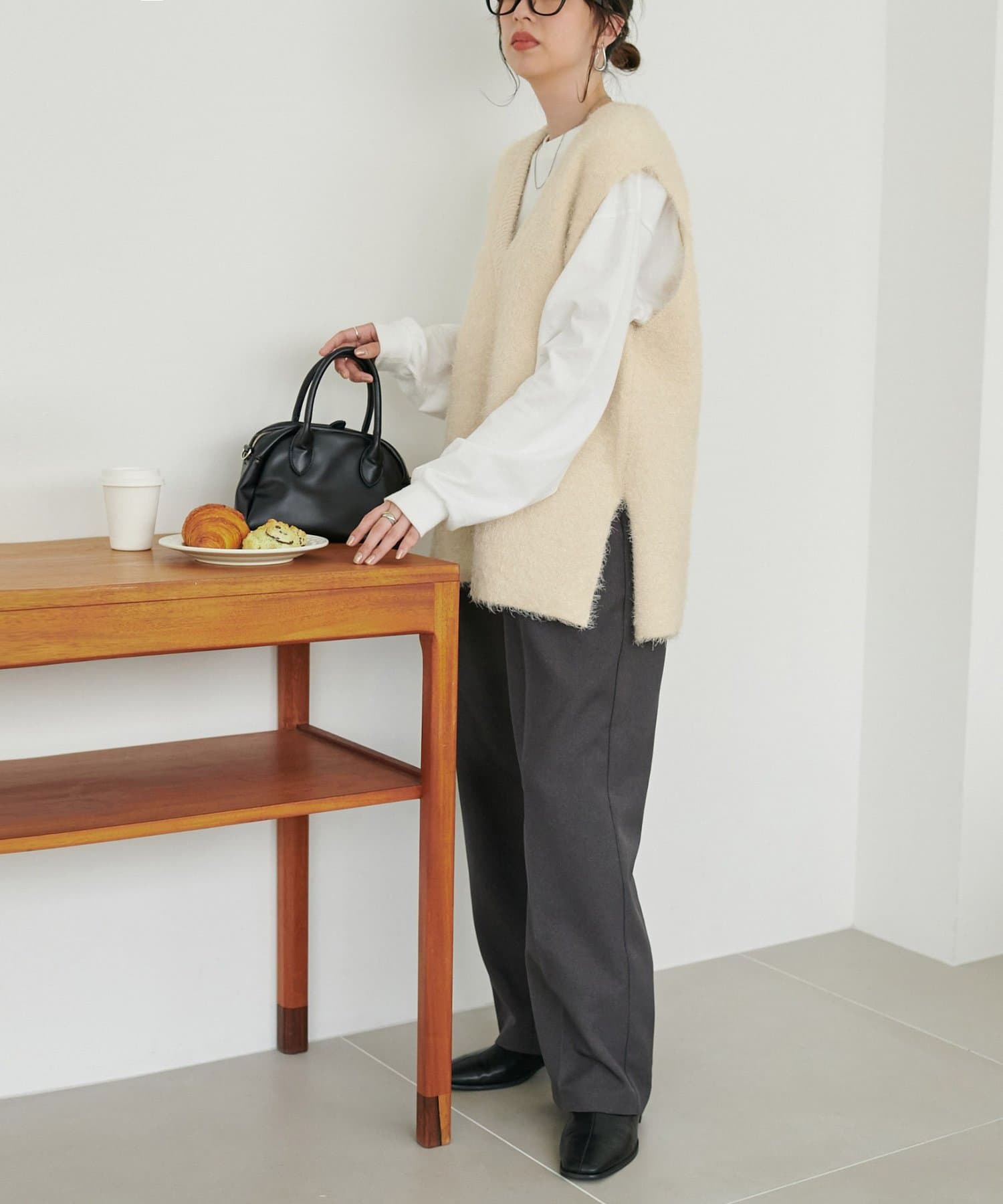 サイドにスリットが施され、抜け感が出るのでワイドパンツやボリュームスカートと合わせもおすすめです。