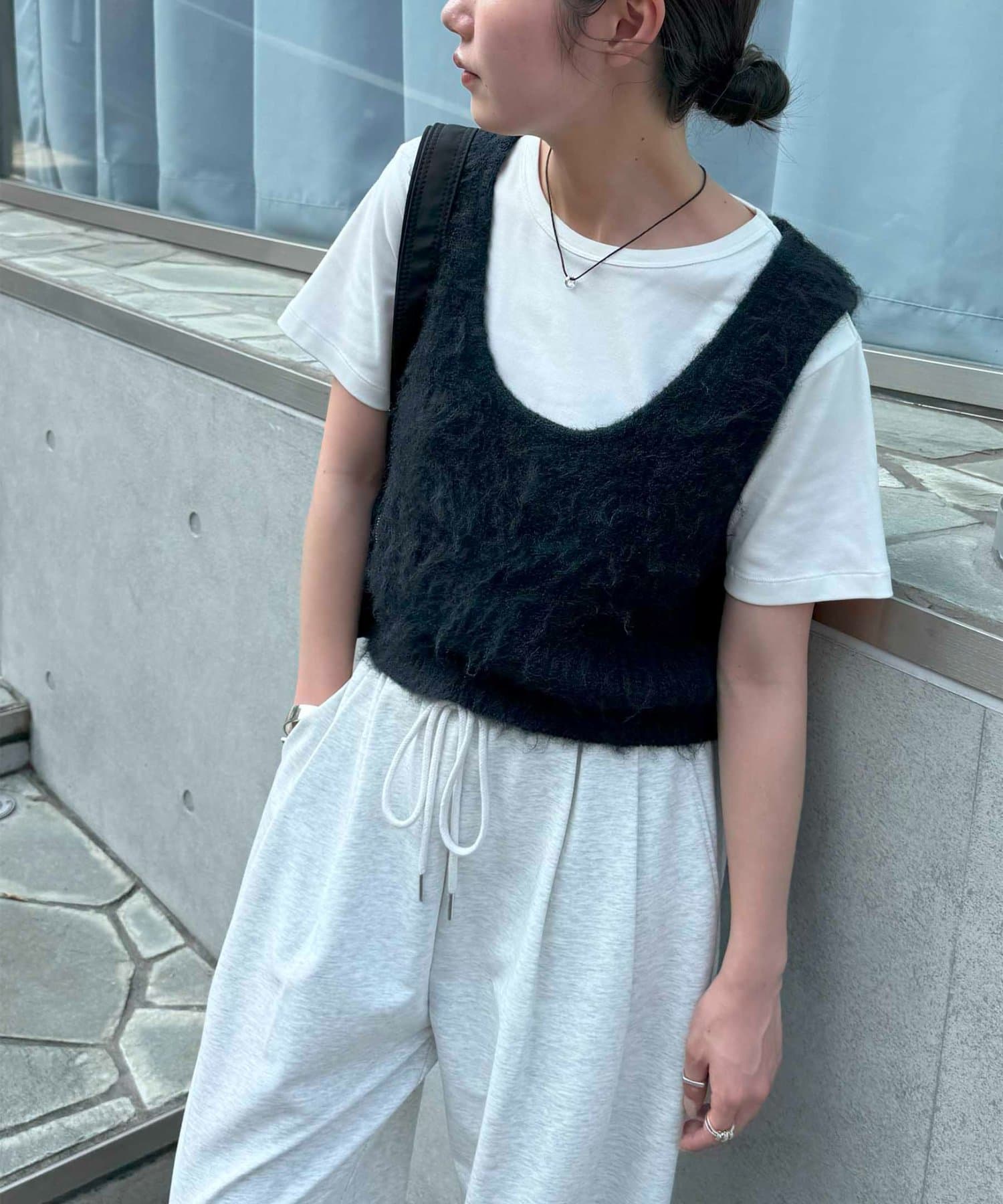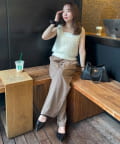 153cmスタッフ:程よく開いたUネックが顔まわりに抜け感を与え、こなれた印象に。コンパクトな丈感なので低身長でもバランスが取りやすいアイテムです!