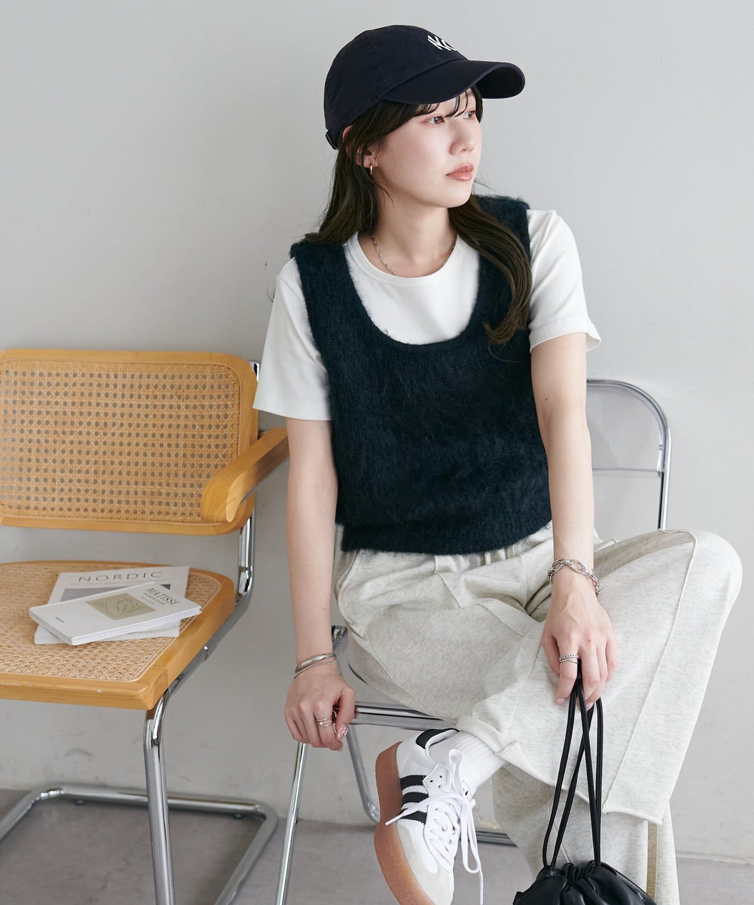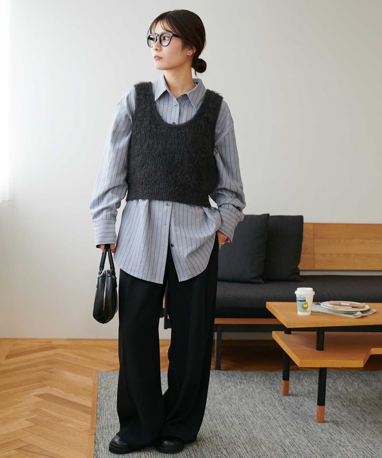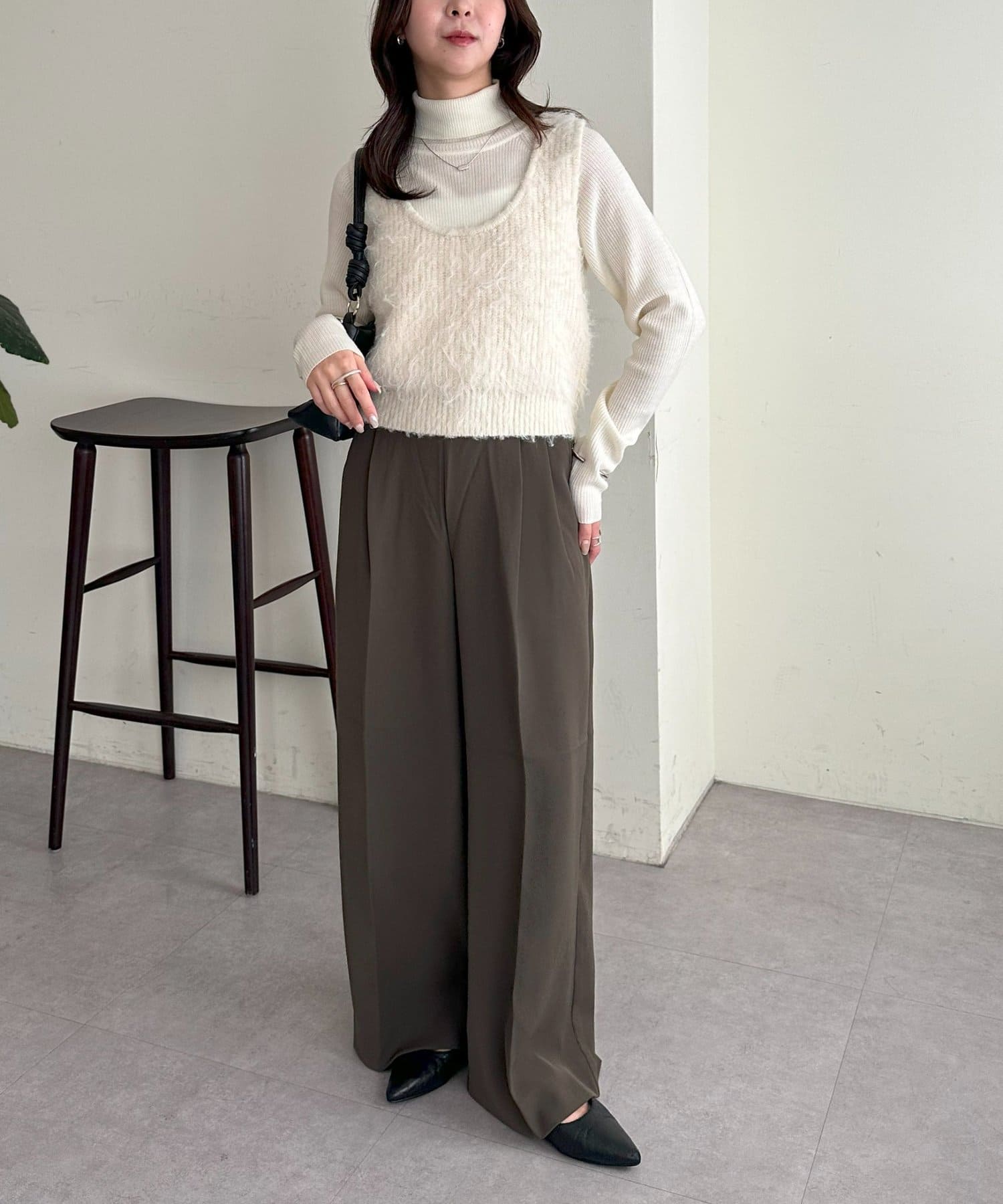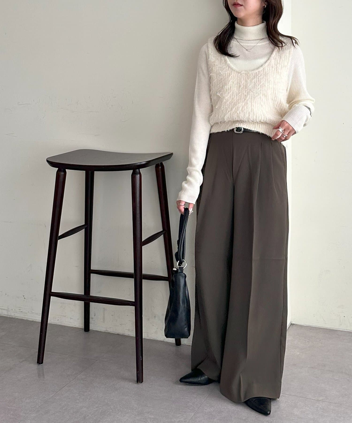 ワンピースの上に重ねたり、カジュアルなスウェットパンツと合わせても、ラフになりすぎずまとまりのあるスタイリングが叶います。