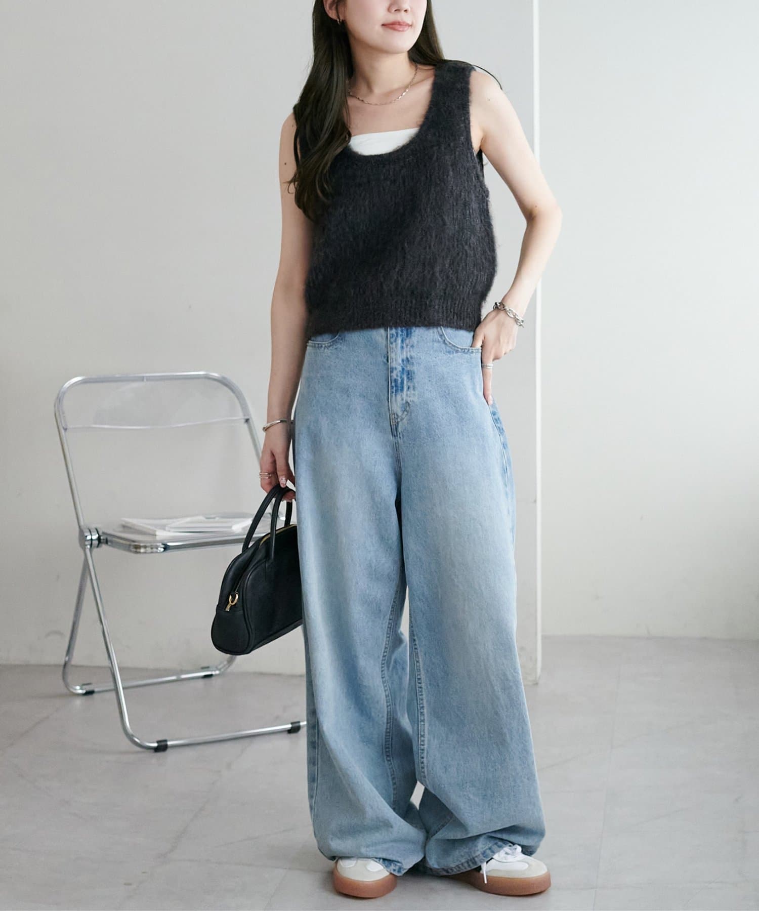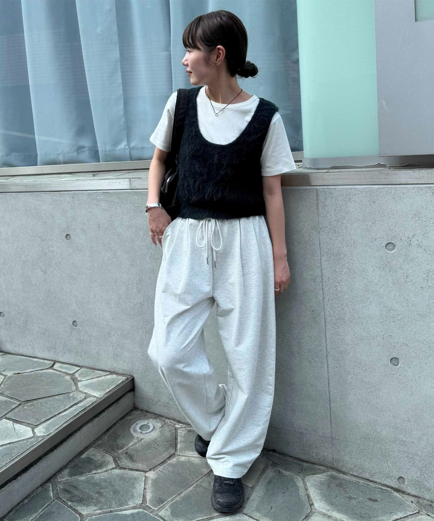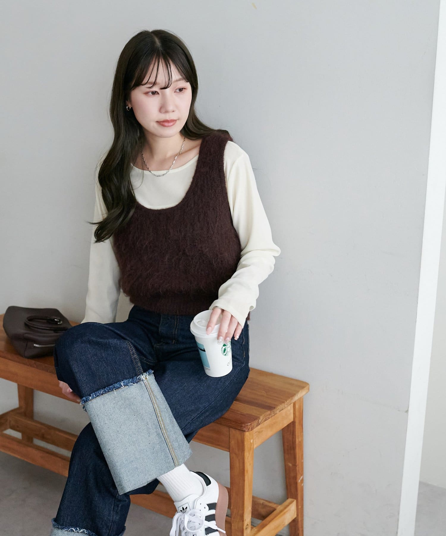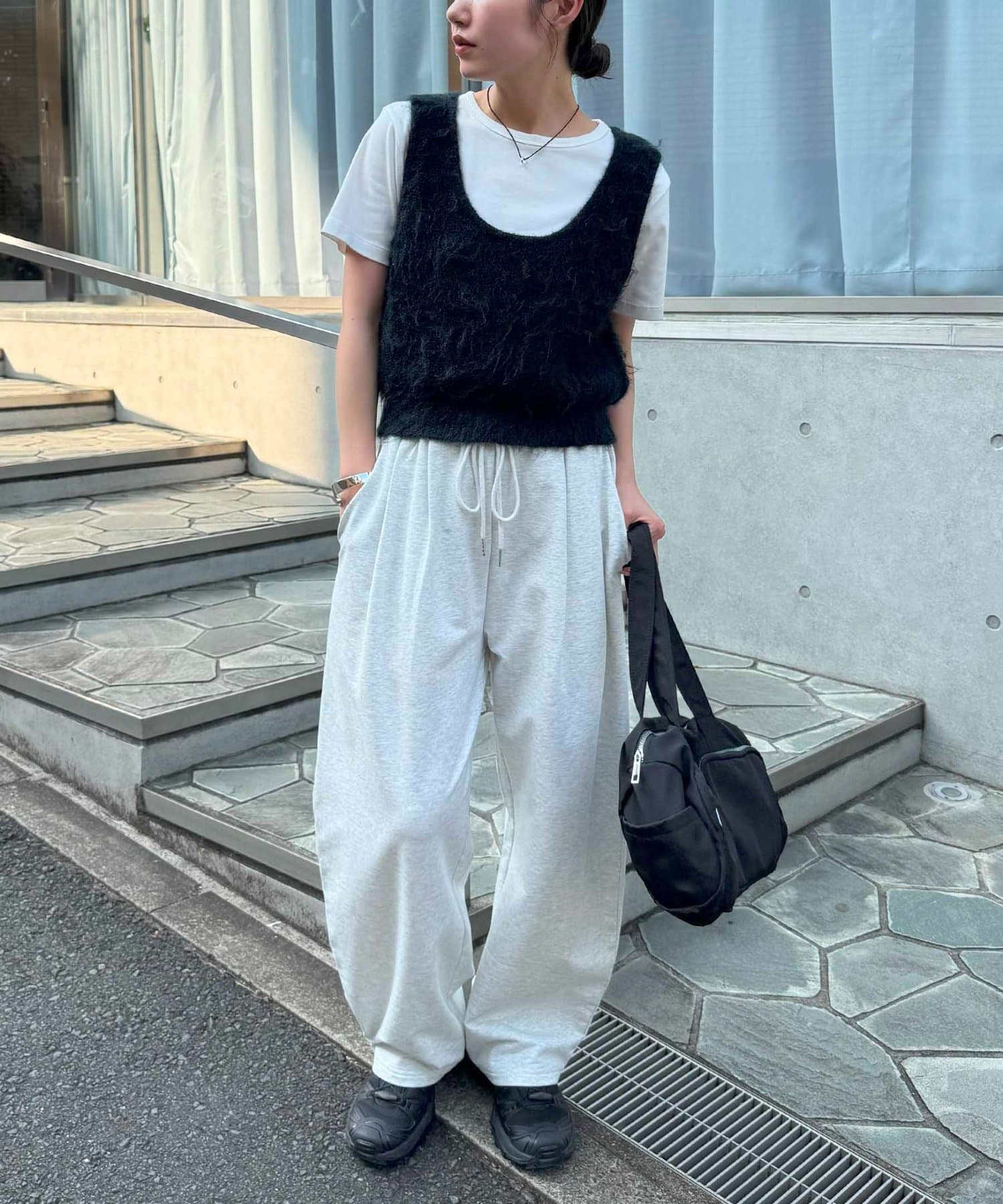 ワンピースの上に重ねたり、カジュアルなスウェットパンツと合わせても、ラフになりすぎずまとまりのあるスタイリングが叶います。