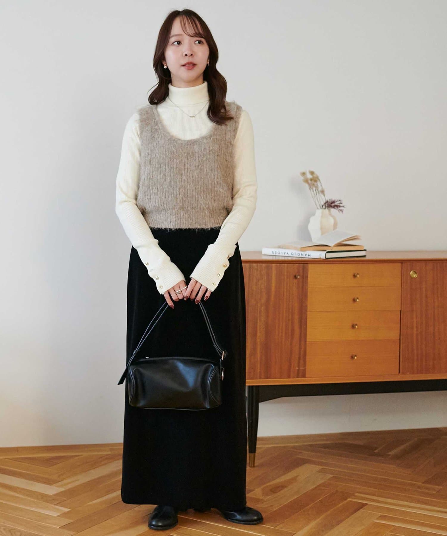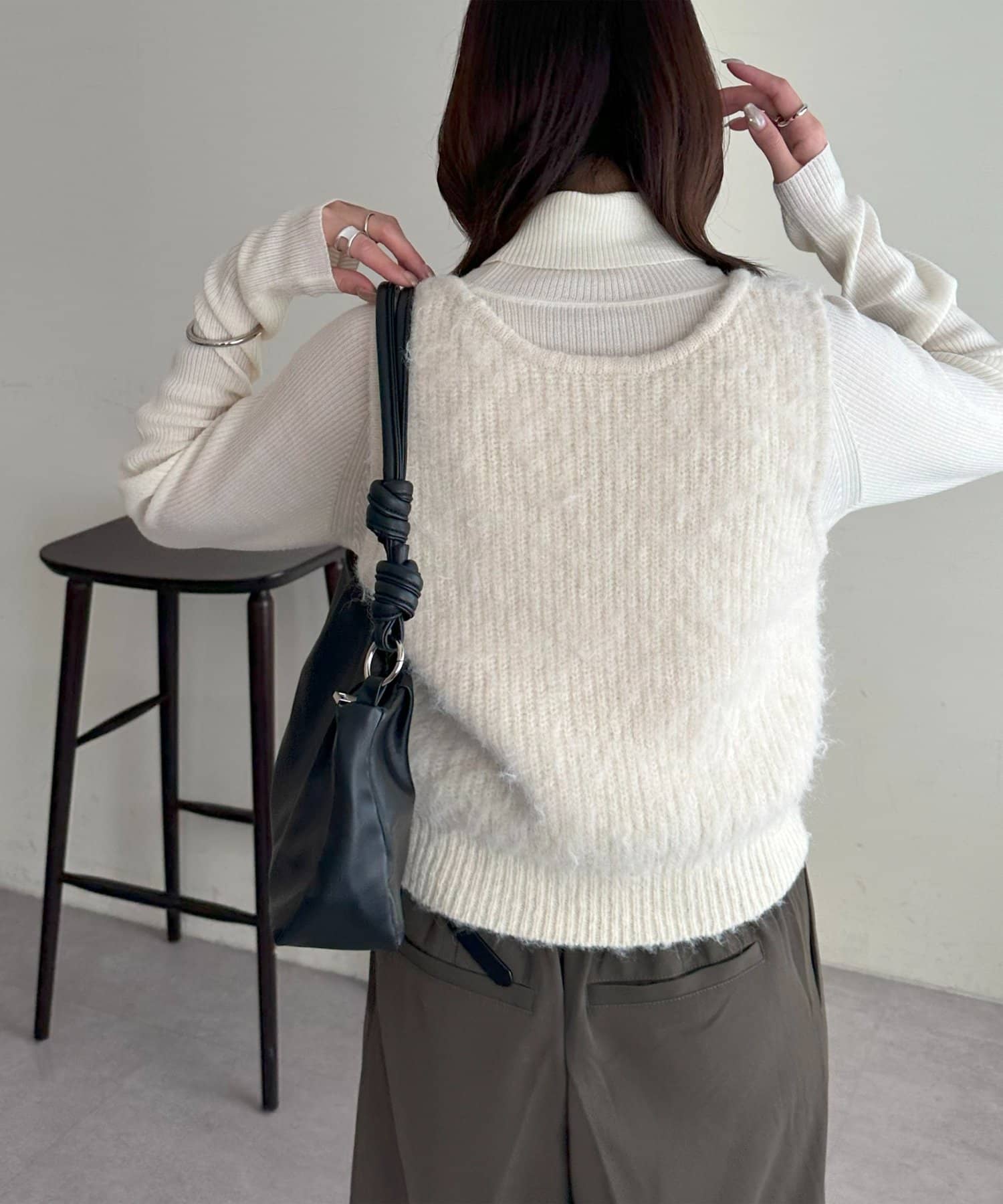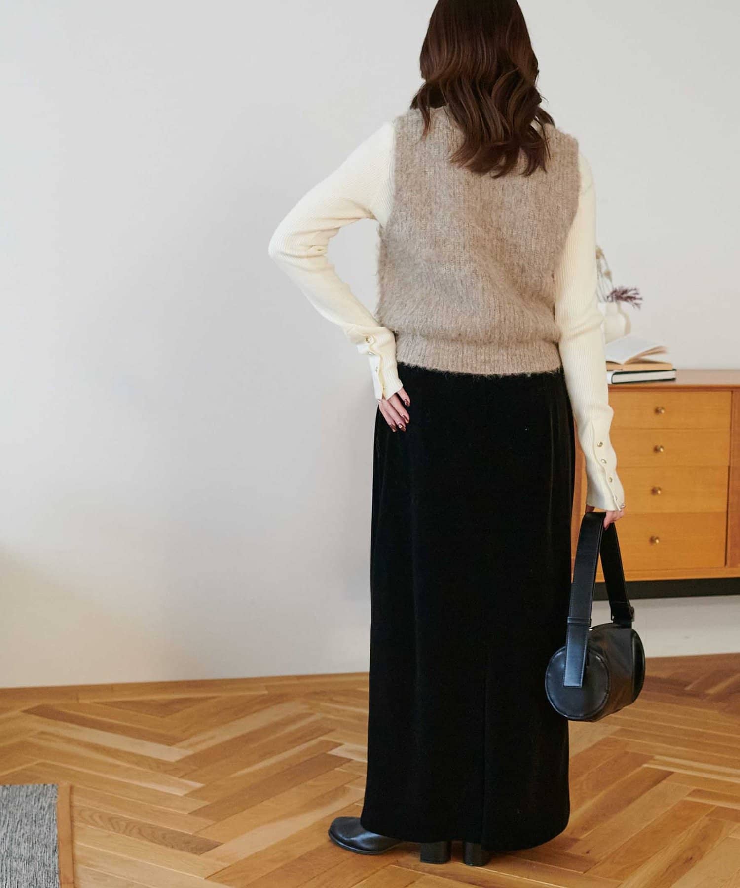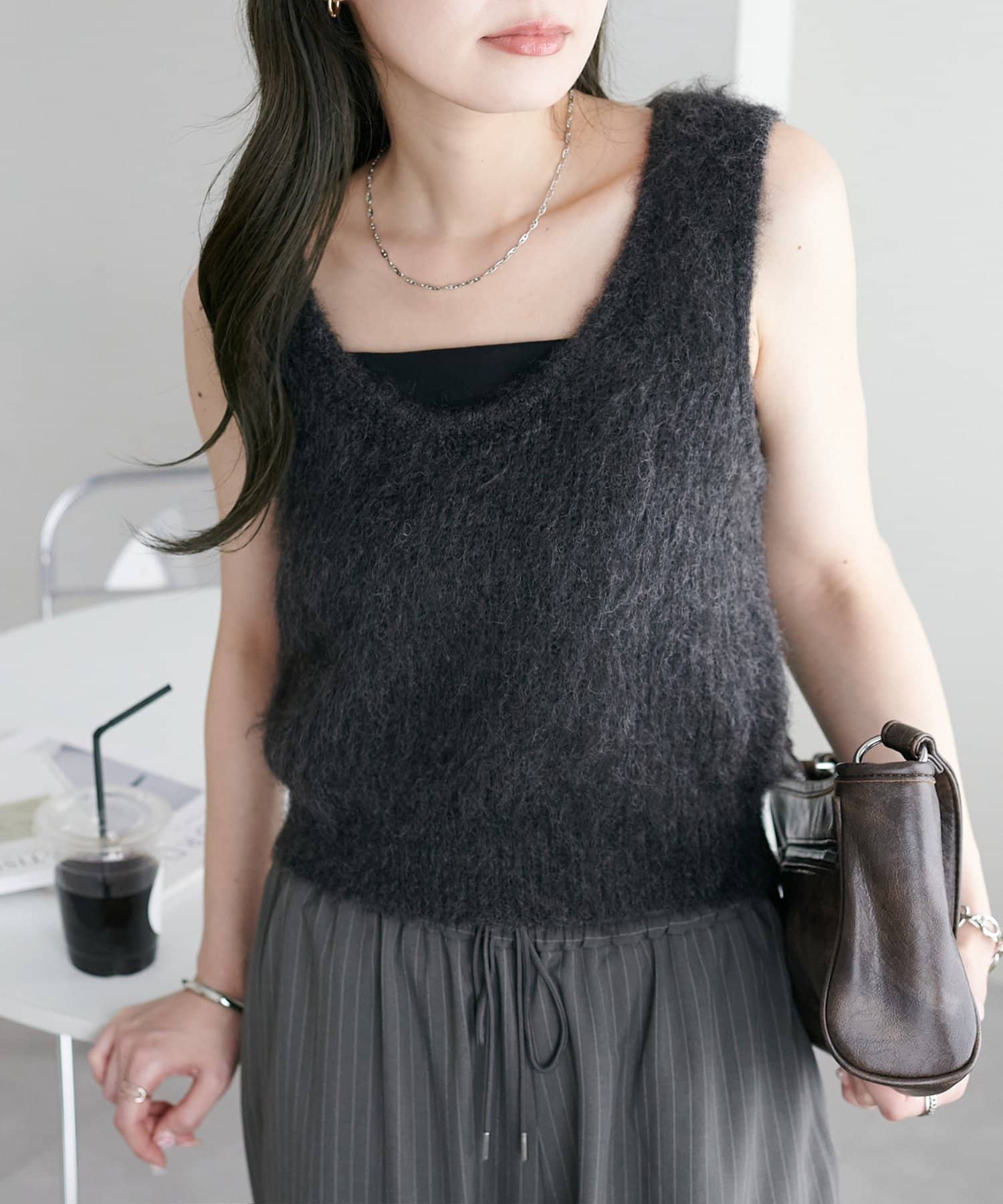 ワンピースの上に重ねたり、カジュアルなスウェットパンツと合わせても、ラフになりすぎずまとまりのあるスタイリングが叶います。