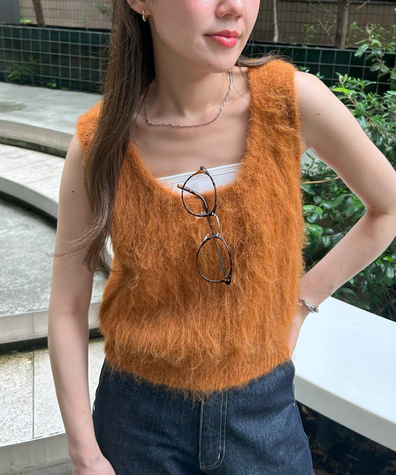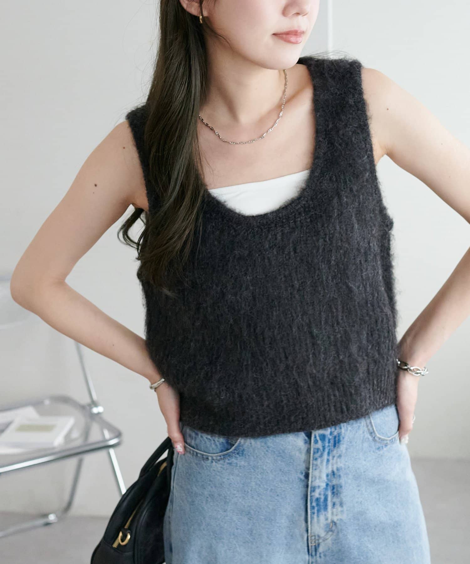 暖かい時期はキャミソールや半袖のTシャツと合わせて、肌寒くなってきたらロンT やタートルネックとの合わせがおすすめ!
