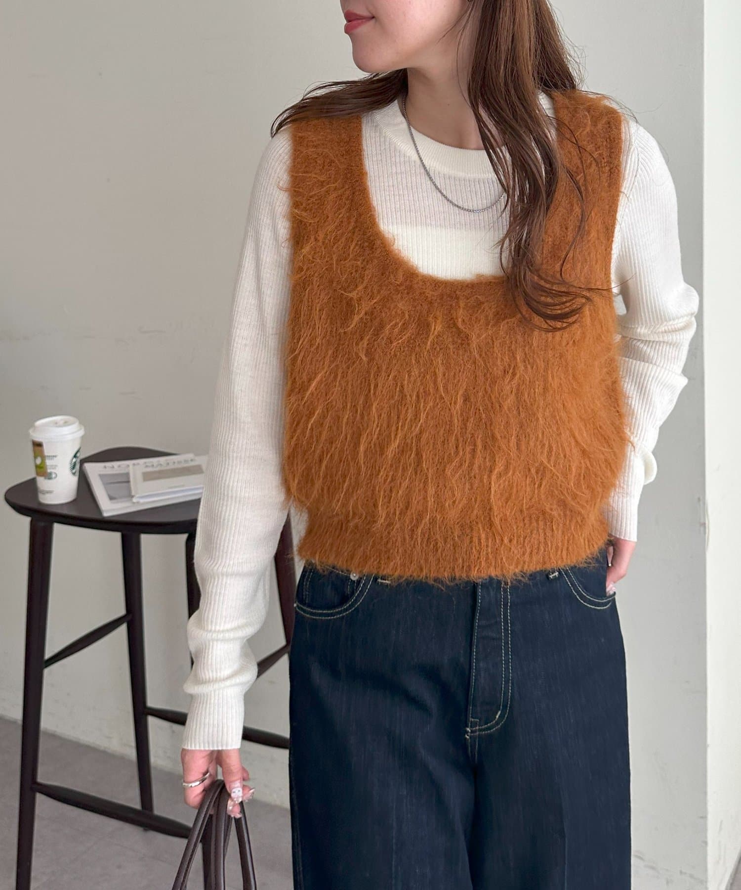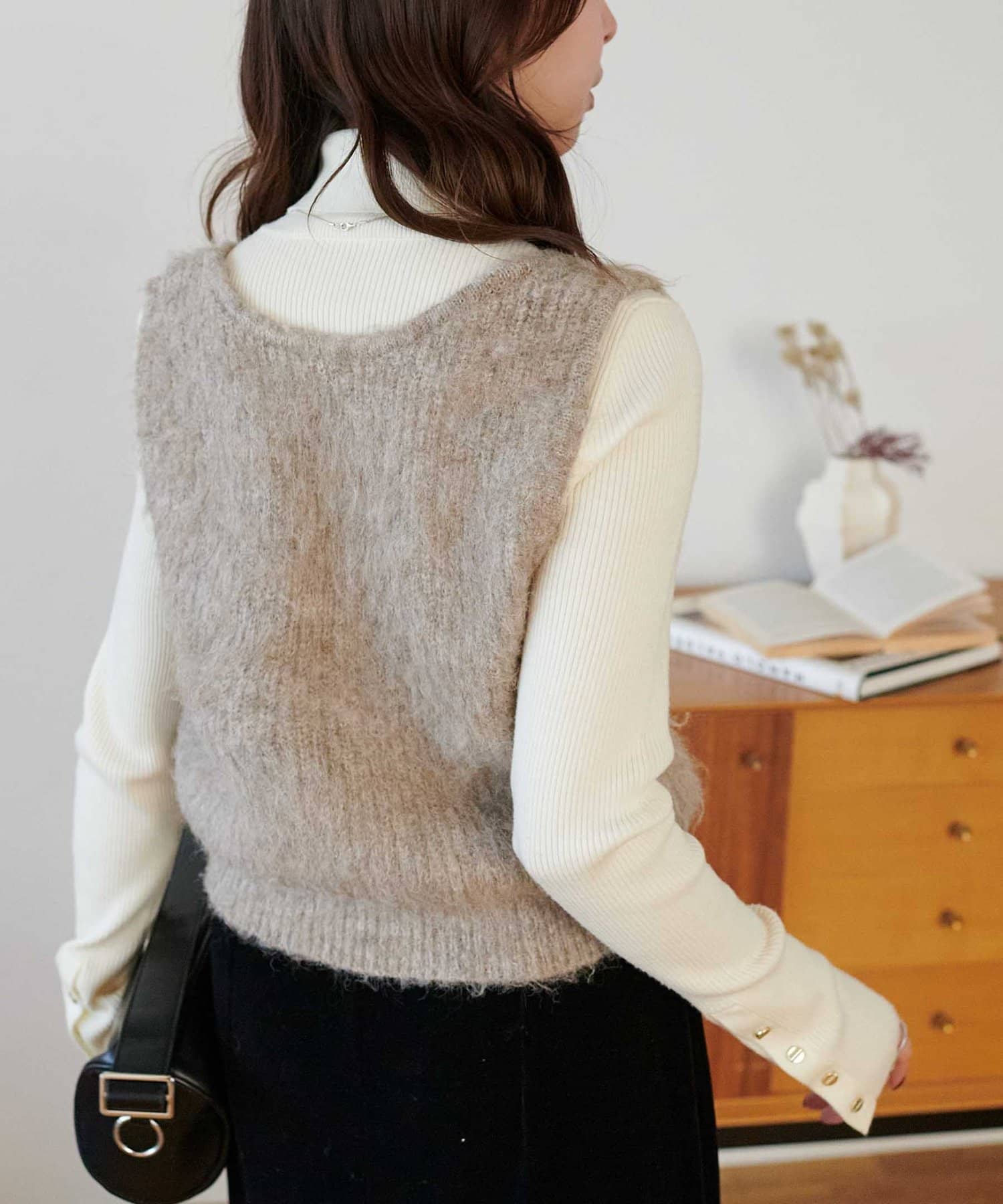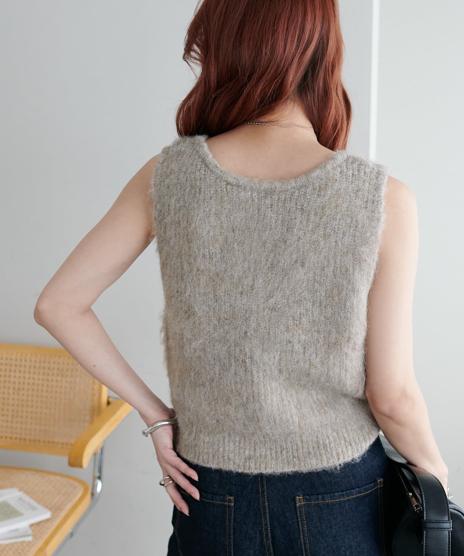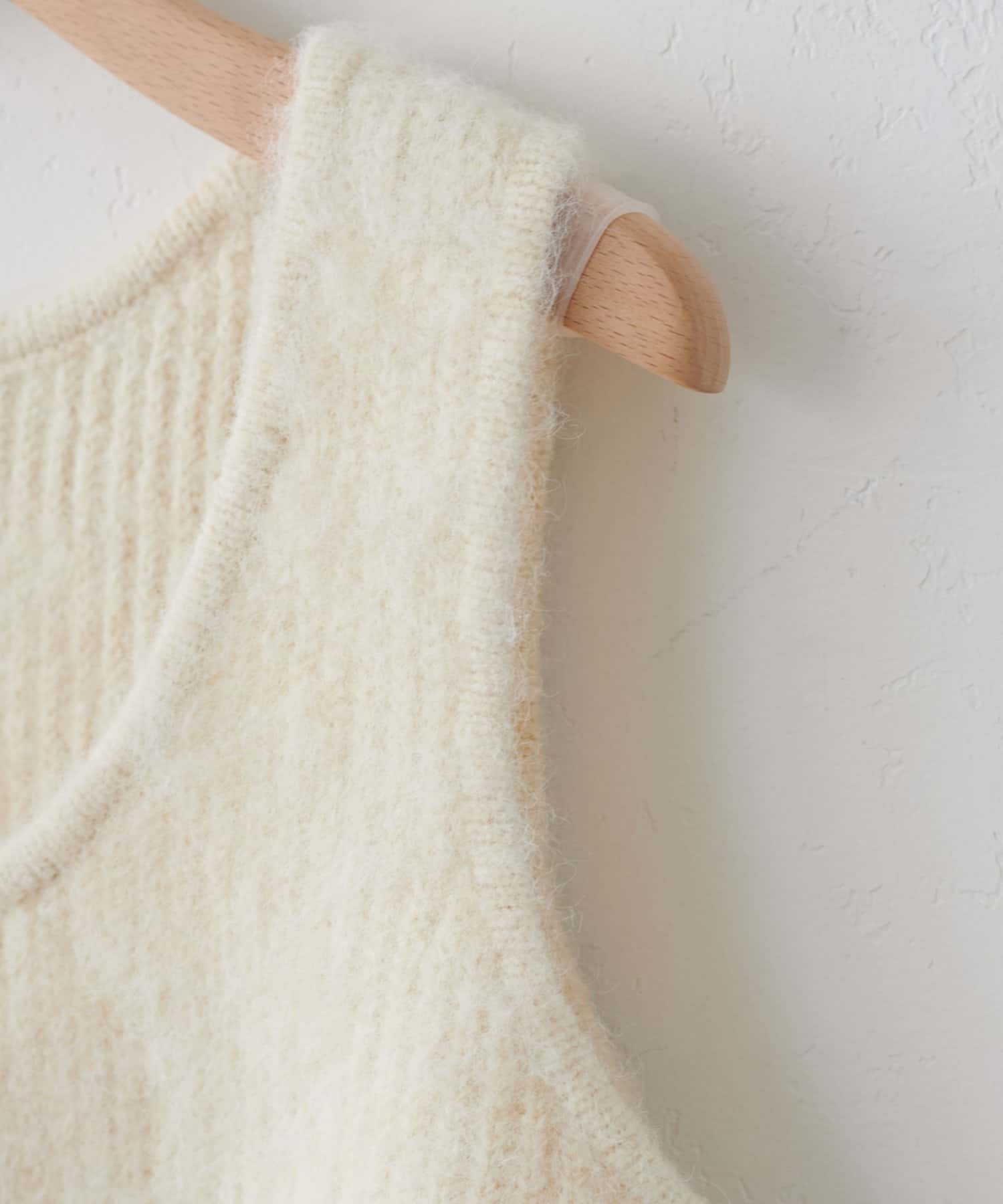 起毛感のあるやわらかな風合いが、暖かみのあるシャギーベスト。
