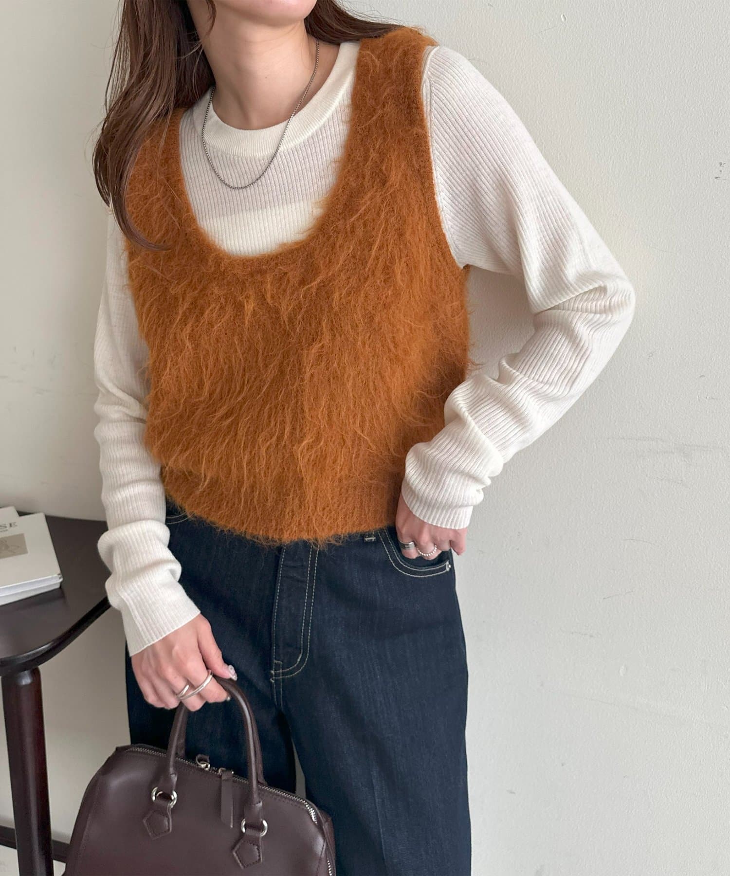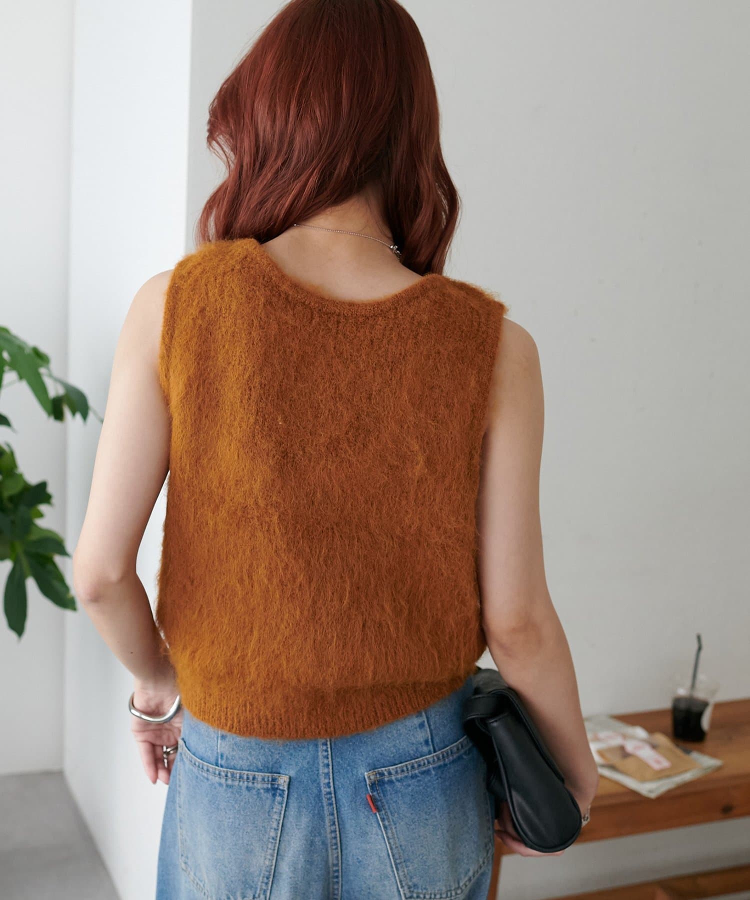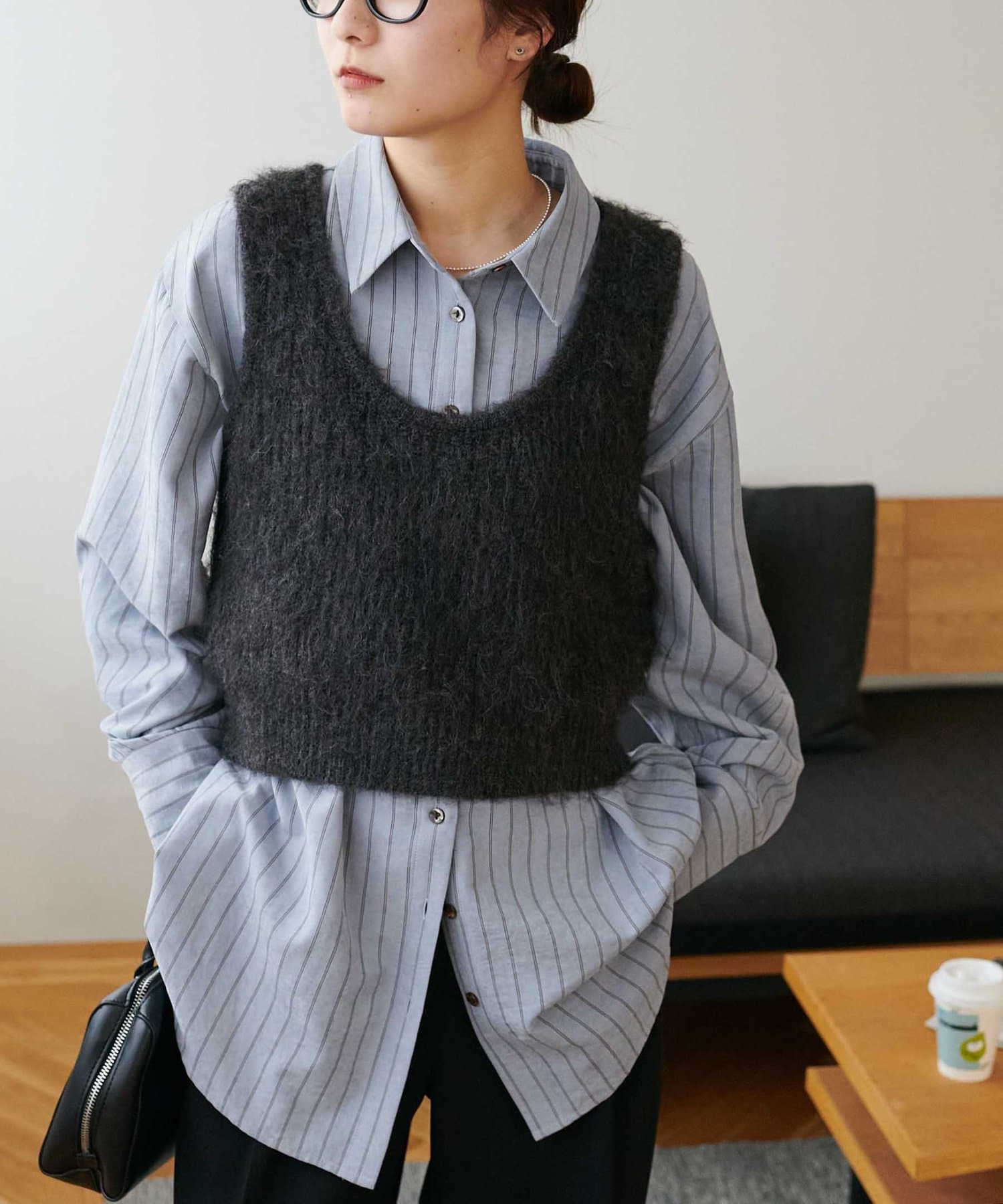 起毛感のあるやわらかな風合いが、暖かみのあるシャギーベスト。