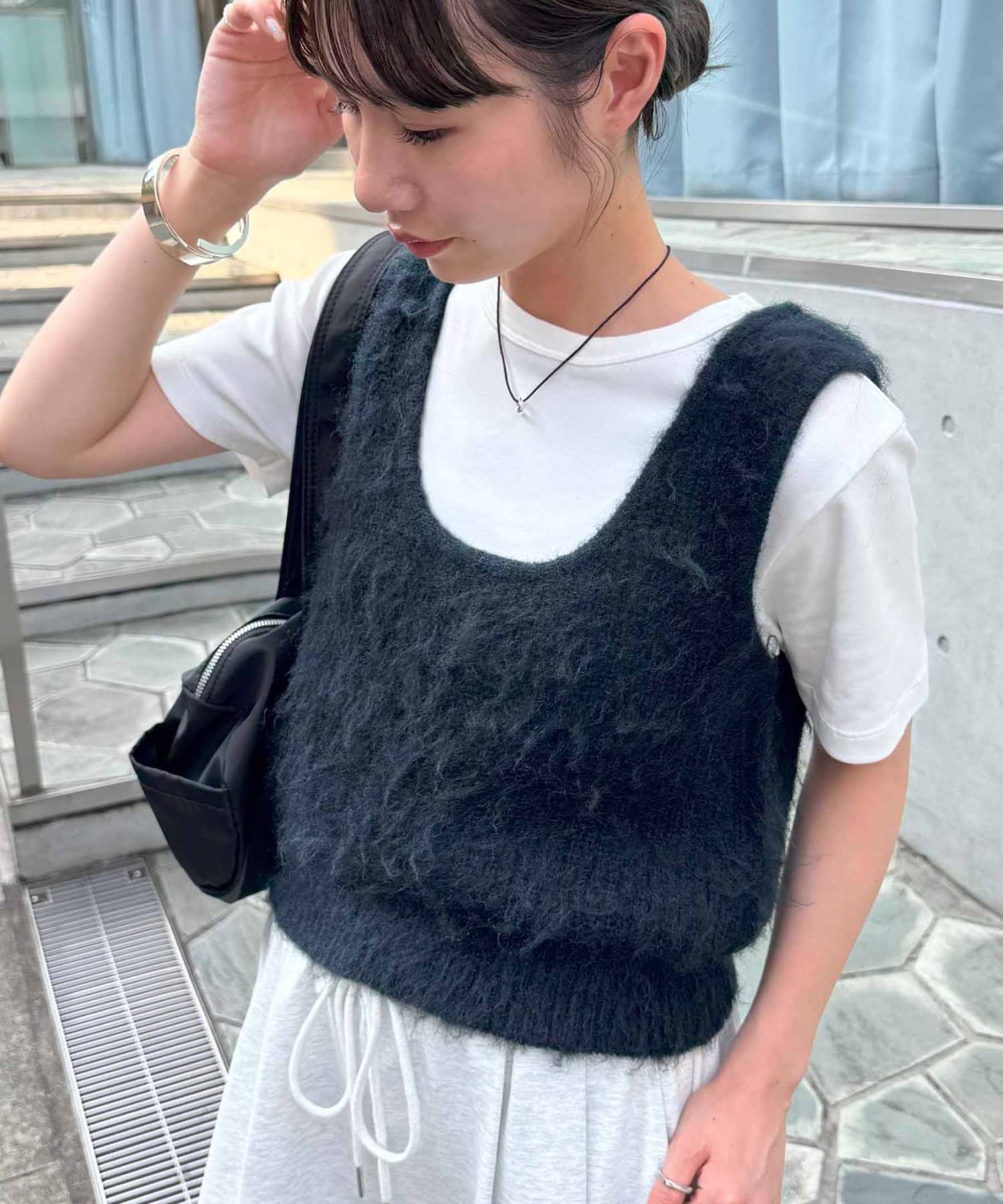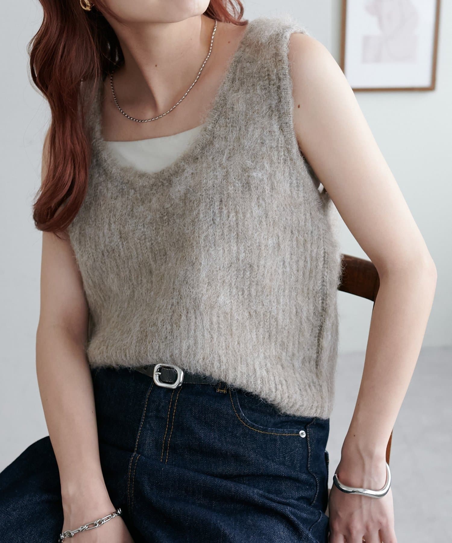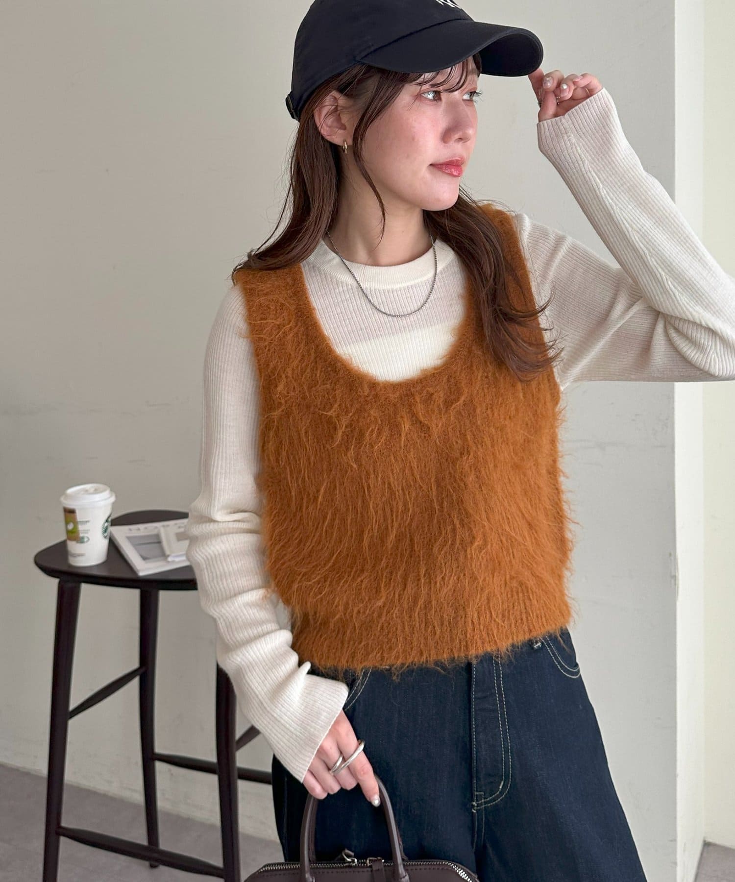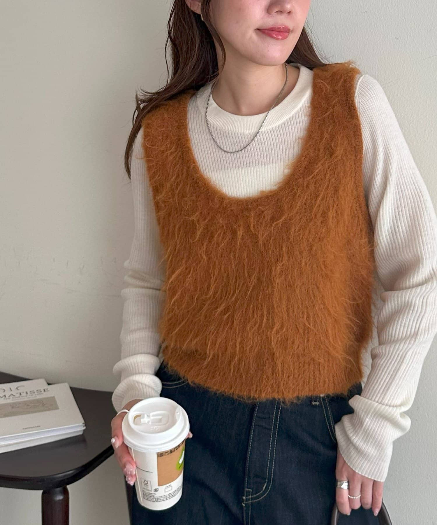 起毛感のあるやわらかな風合いが、暖かみのあるシャギーベスト。