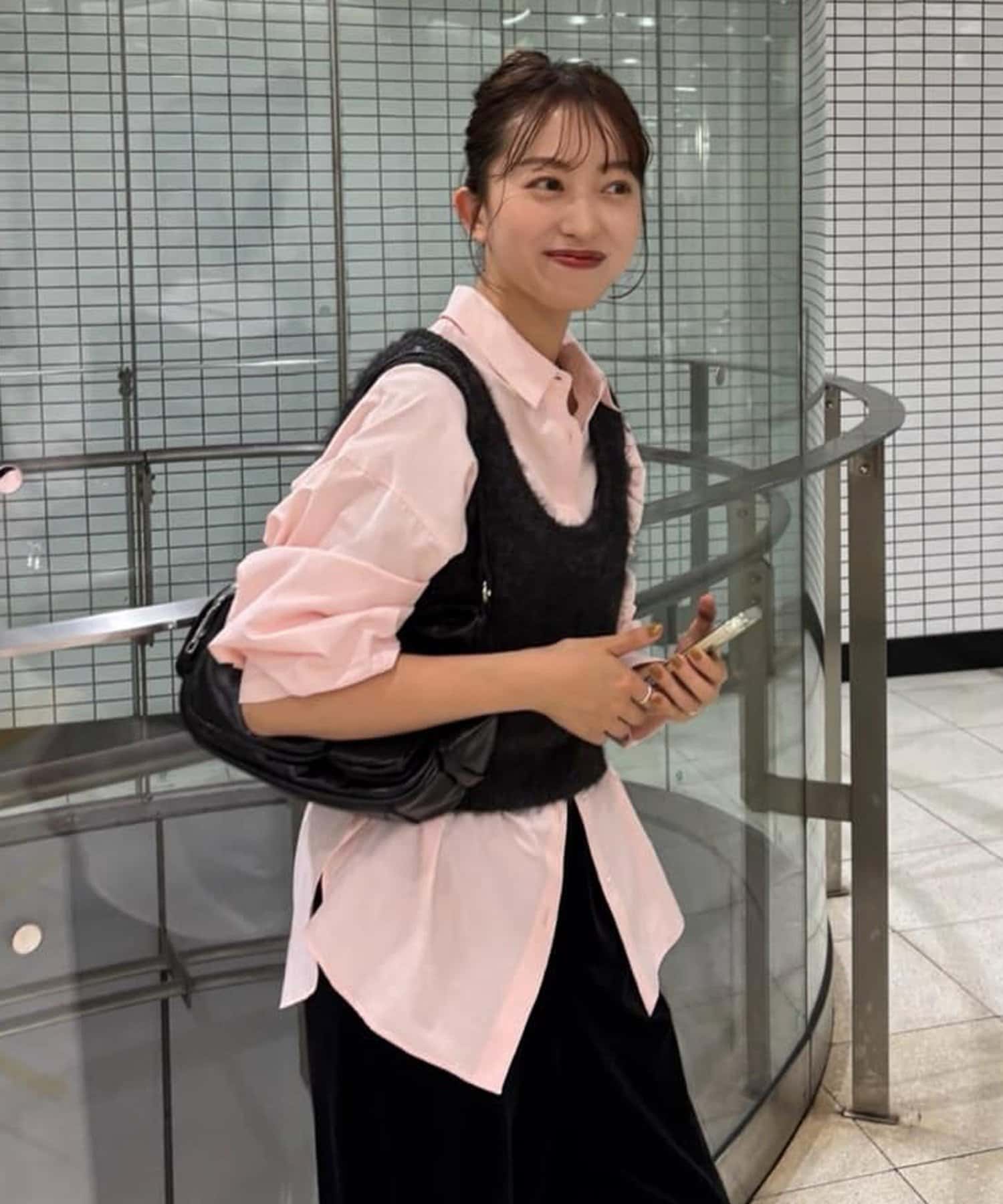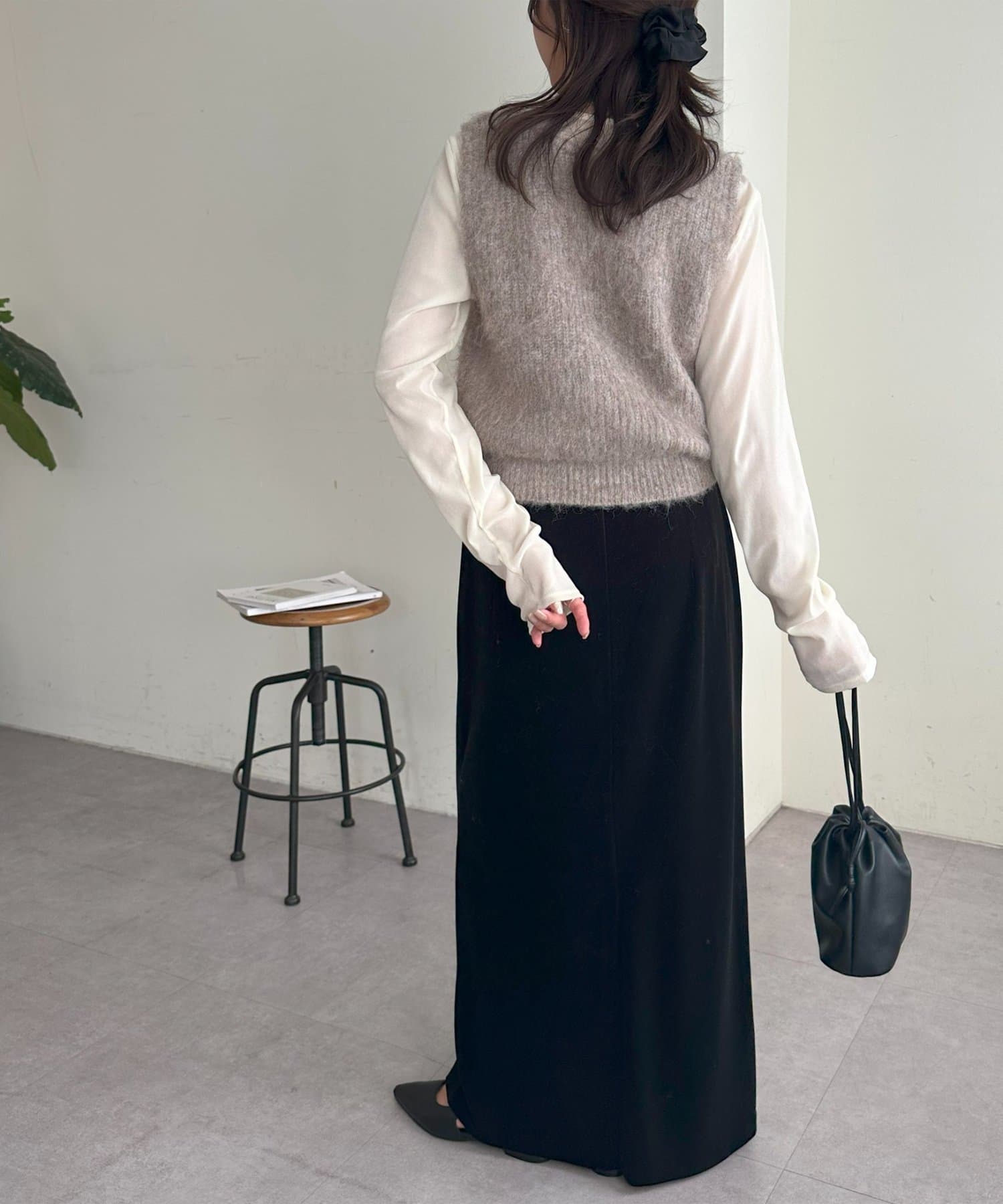 ほどよくボディラインに沿うシルエットなので、ルーズすぎず女性らしい印象に仕上がります。